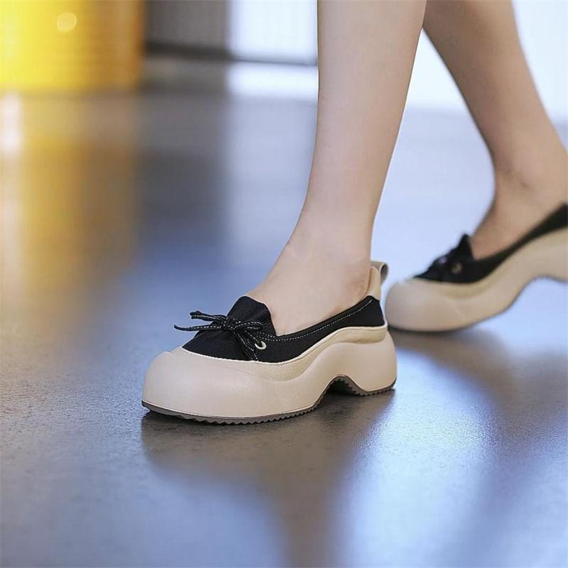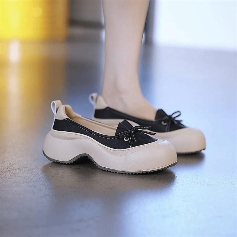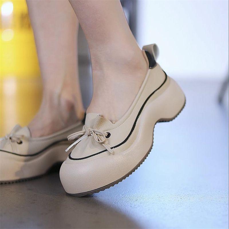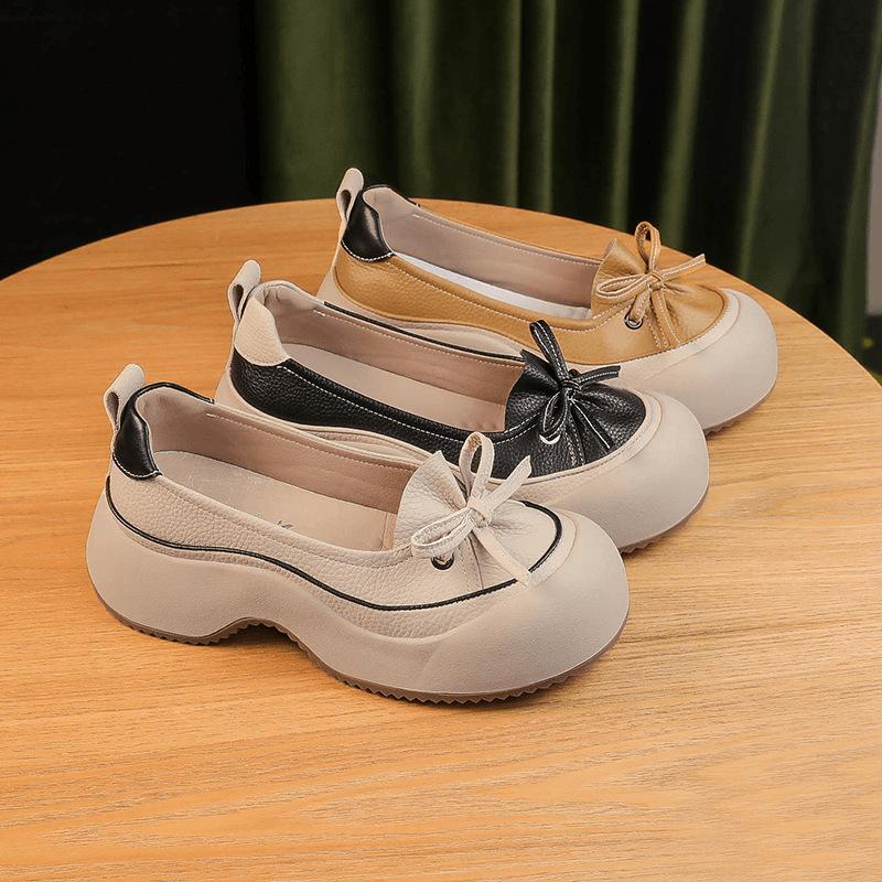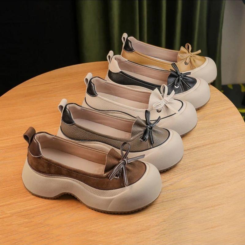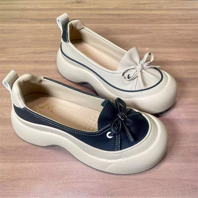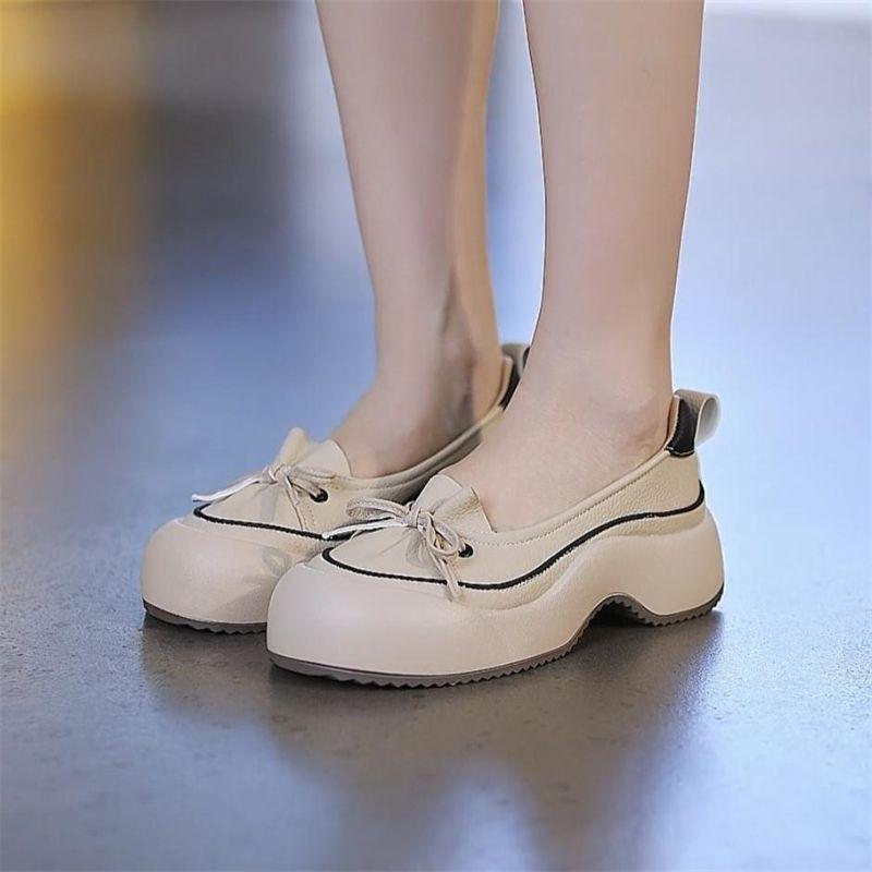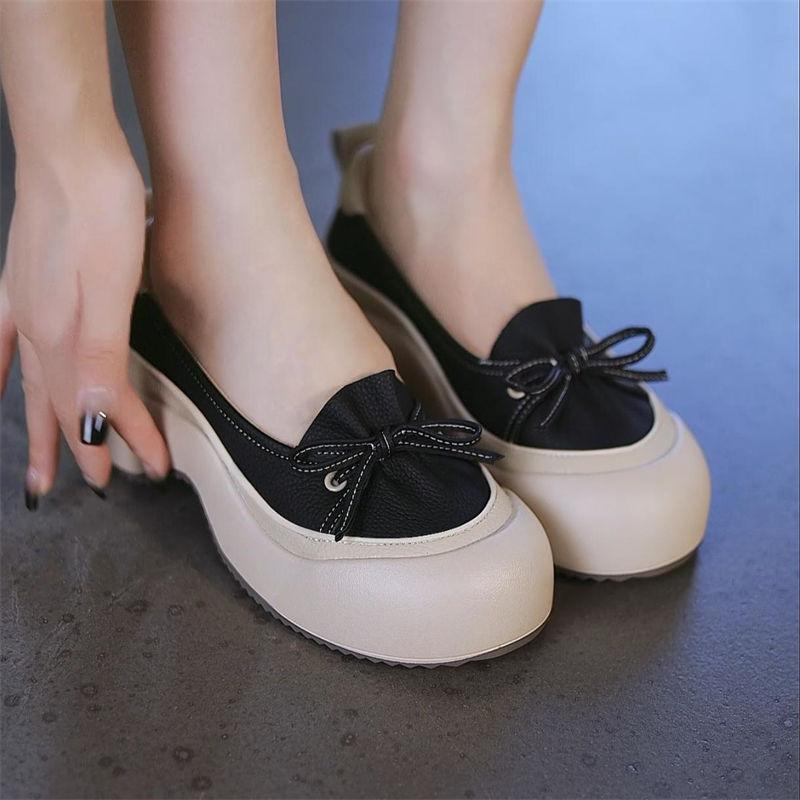 Zapatos de Piel Suave de Suela Gruesa de Una Capa para Mujer 2024 Nuevo Retro Perezoso Slip-on Casual Cómodo Combinable No Cansan Hojas
