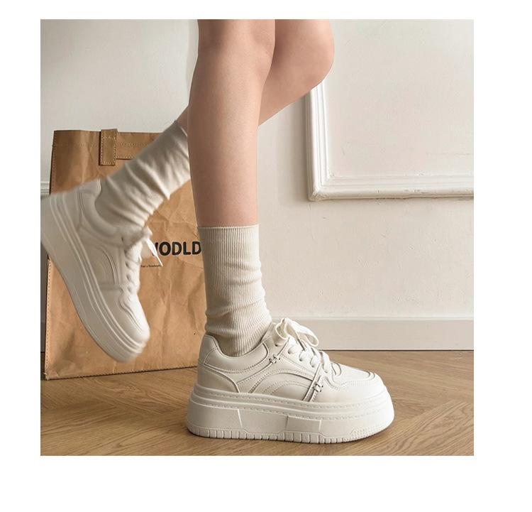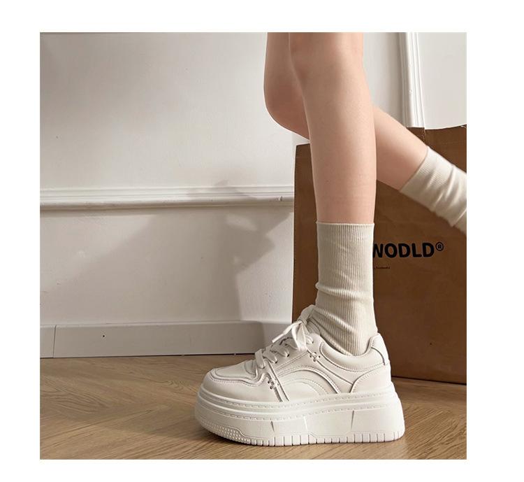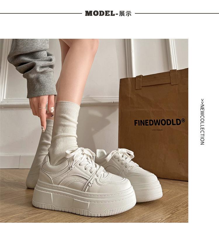 Zapatos Blancos Ligeros Casuales Simples de Suela Gruesa para Estudiante Estilo Japonés Zapatos Blancos para Mujer 2025 Nuevo Estilo de Verano Zapatillas Versátiles que Aumentan la Altura