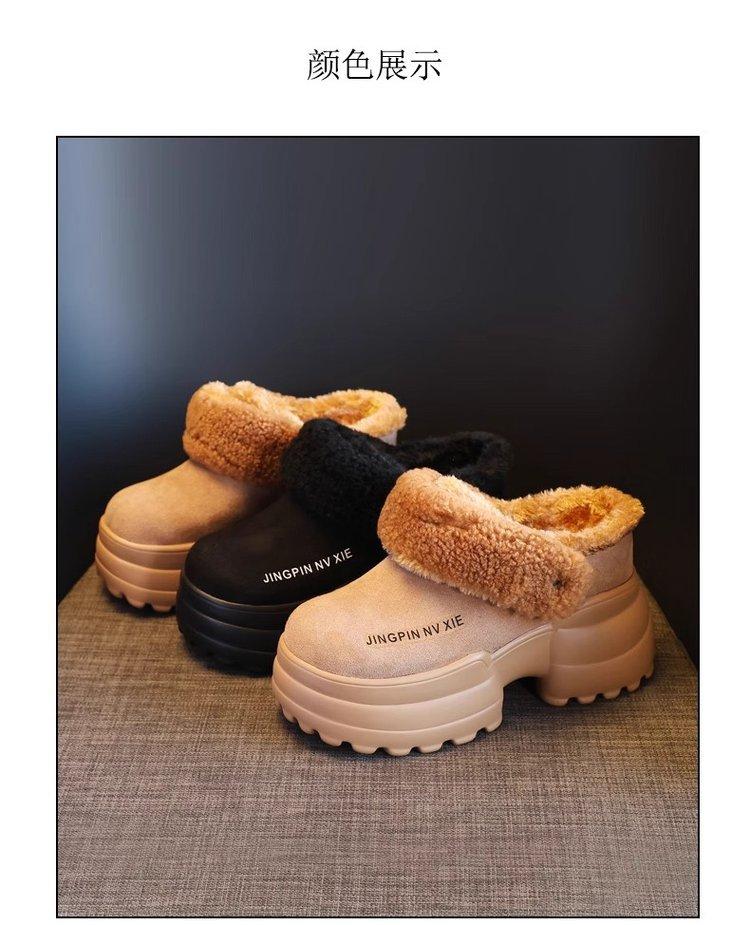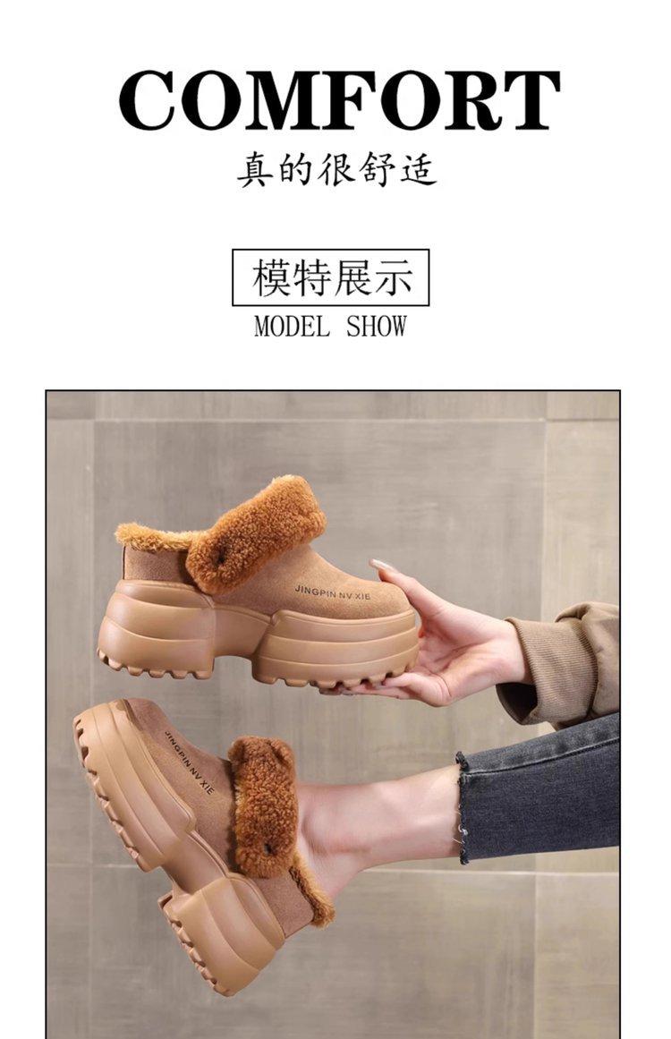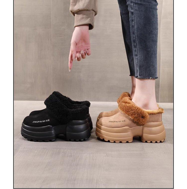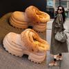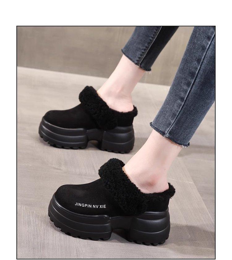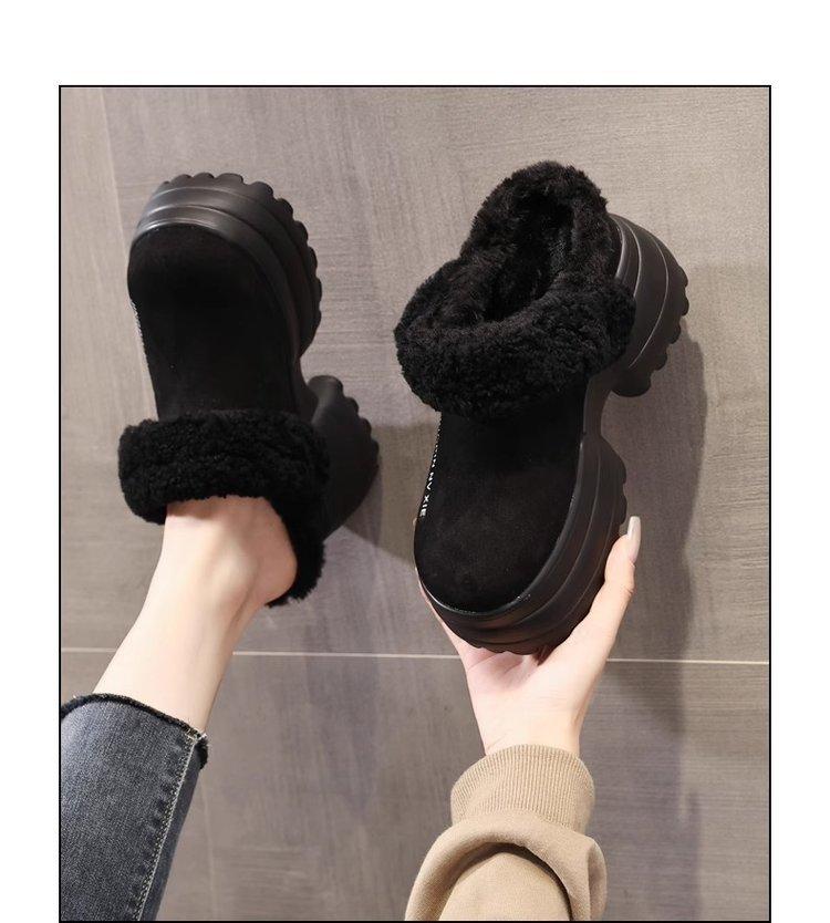 Pantuflas esponjosas de suela gruesa para mujer 2024 invierno nuevo forrado de vellón engrosado baotou medio arrastre para exterior zapatos de algodón cálidos zapatos con agujeros