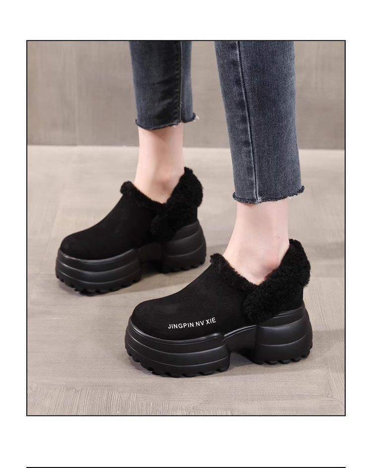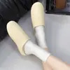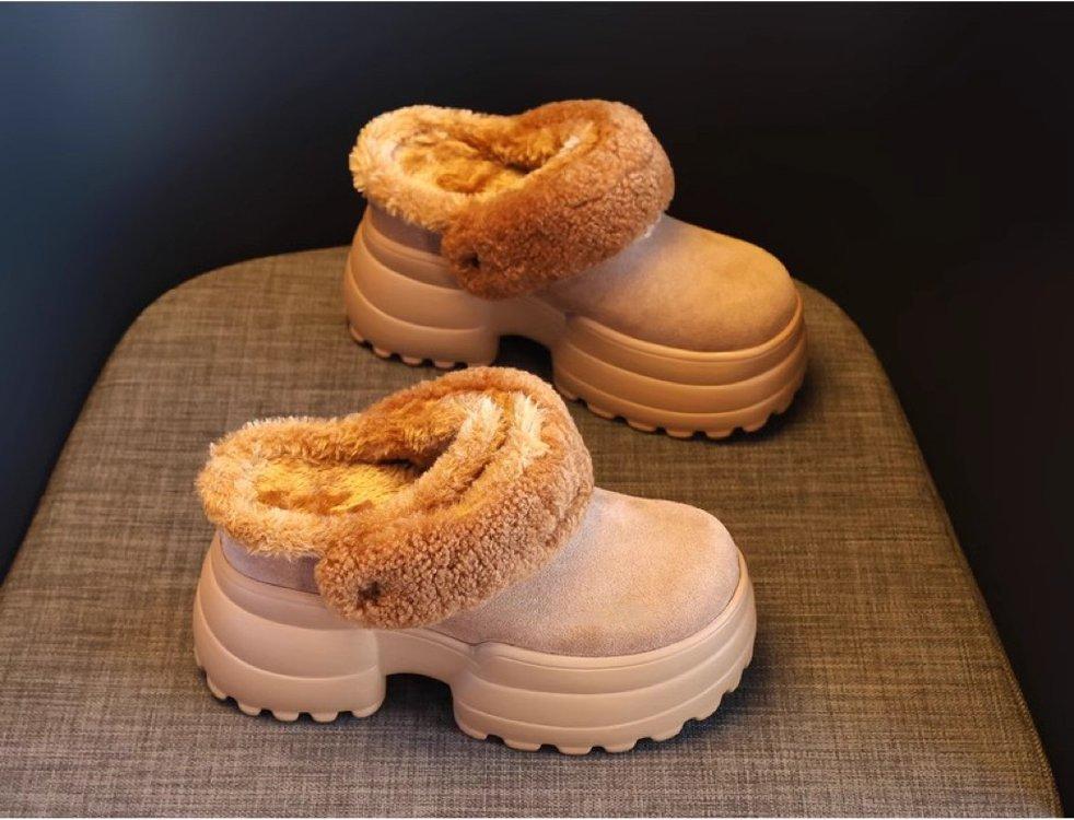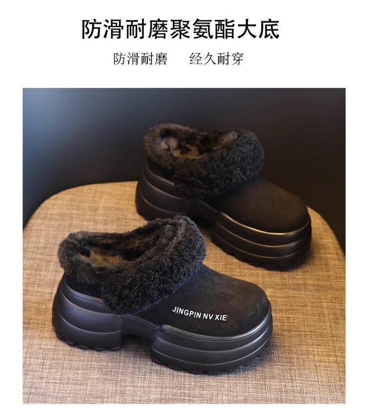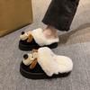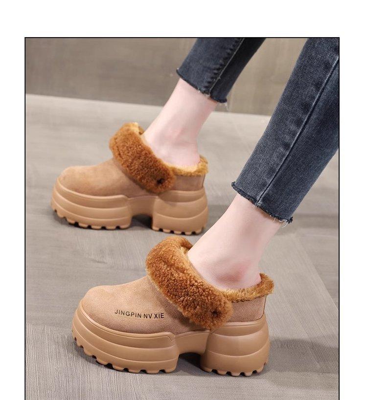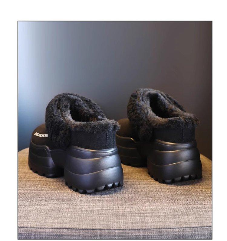 Pantuflas esponjosas de suela gruesa para mujer 2024 invierno nuevo forrado de vellón engrosado baotou medio arrastre para exterior zapatos de algodón cálidos zapatos con agujeros