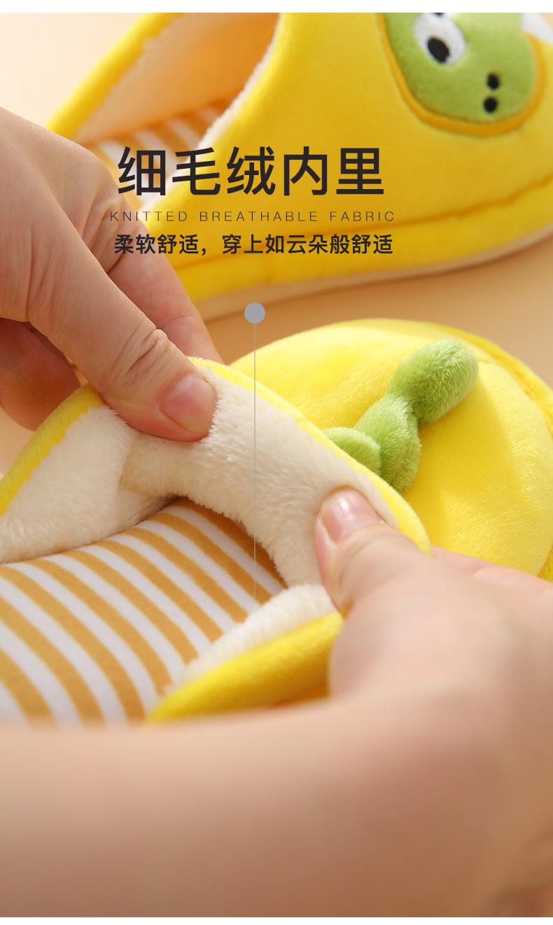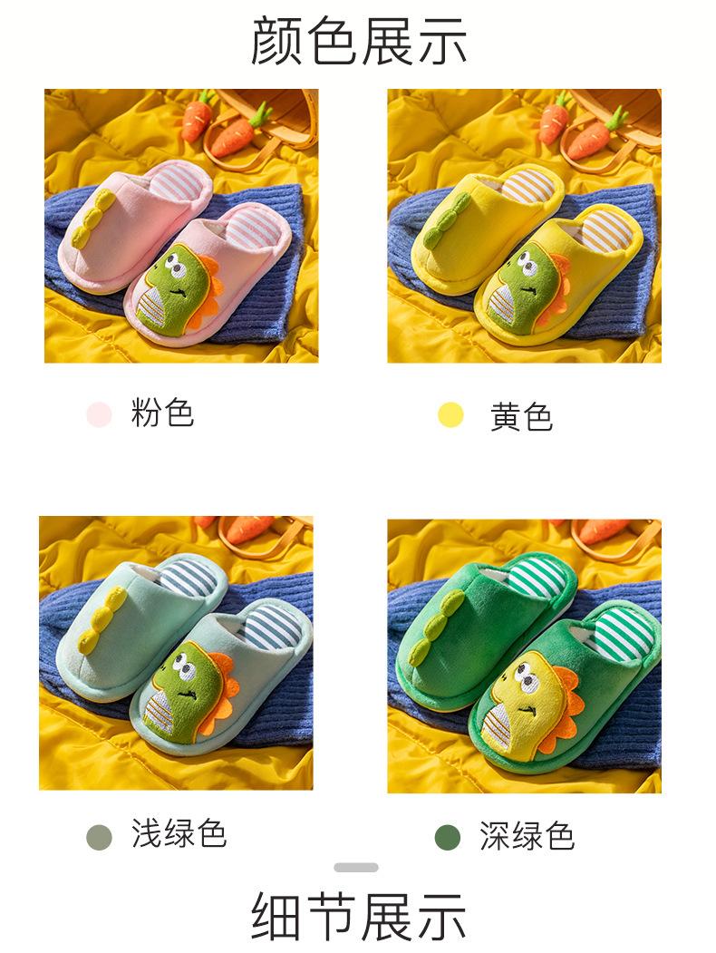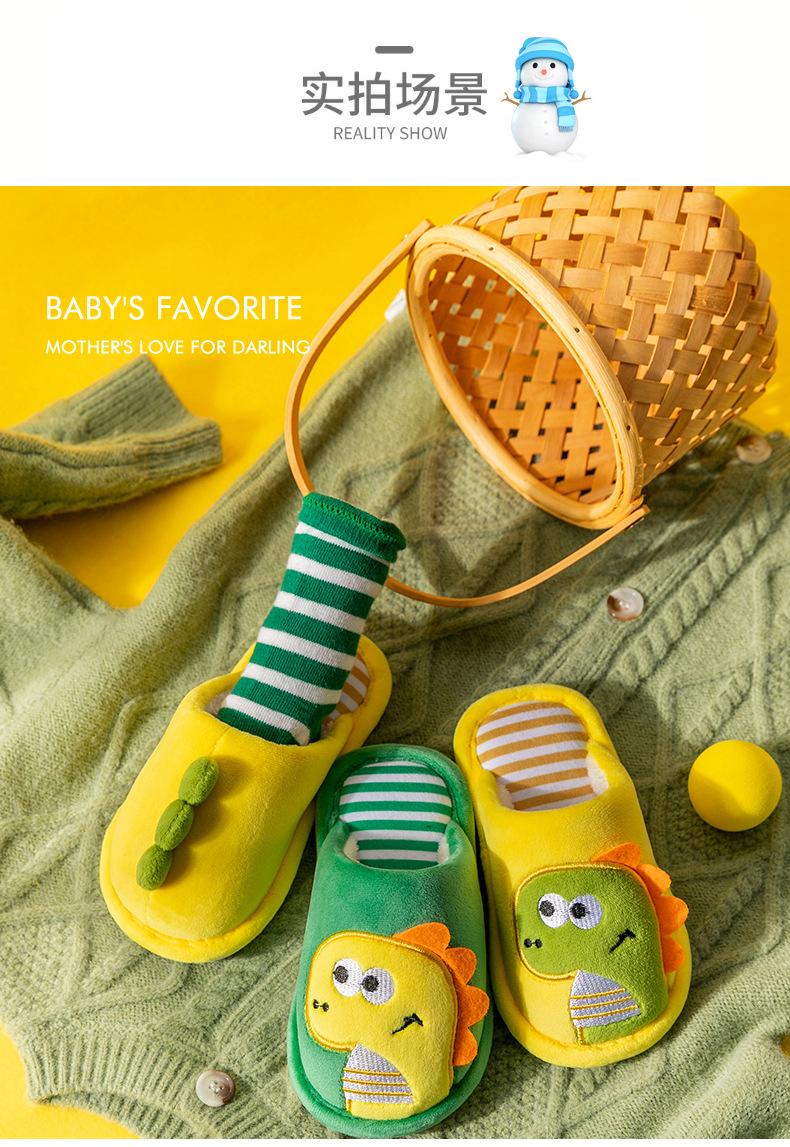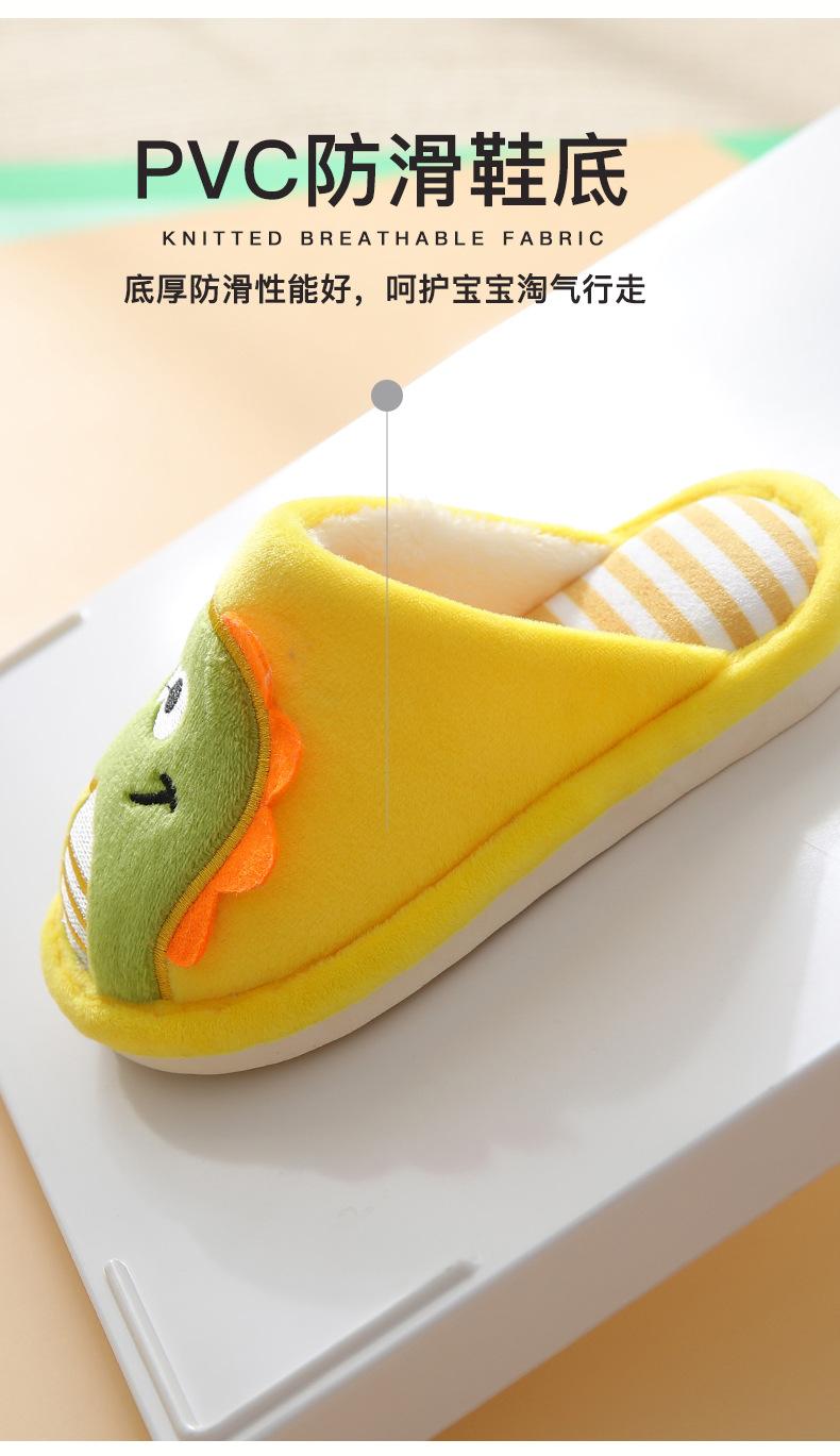 Pantuflas de algodón para niños, para el hogar, interiores, suela suave, para otoño e invierno, de lana, para niñas y niños, de algodón, con diseño de dinosaurio pequeño.