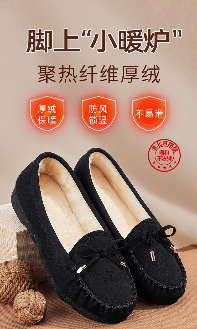 Zapatos de Tela de Pekín Antiguos para Mujer Invierno Forrados de Vellón 2025 Nuevo Otoño Auténtico Tienda Oficial Insignia Negro Trabajo Gorro Zapatos de Algodón