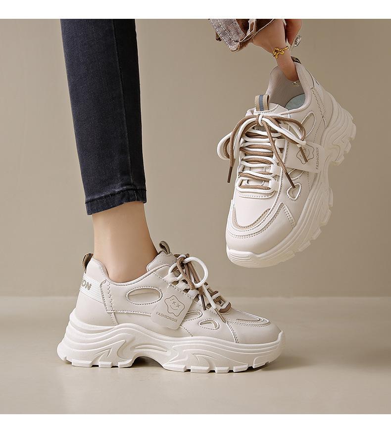 Zapatos de otoño para mujer, nuevos zapatos blancos transpirables, zapatillas de suela gruesa de estilo coreano para mujer, zapatos casuales para correr, zapatos de moda para papá