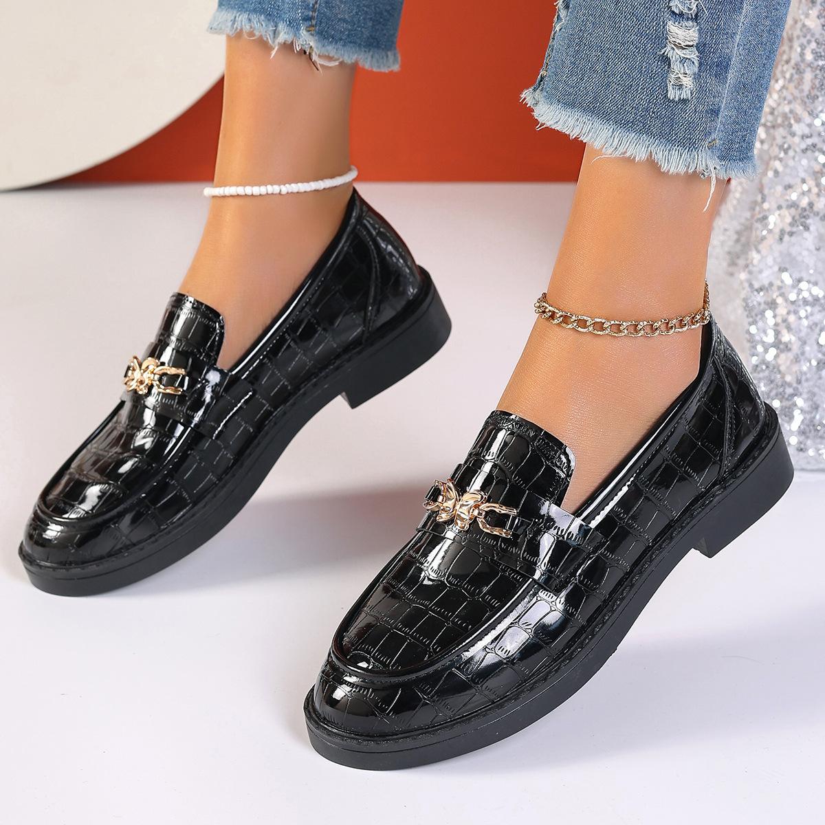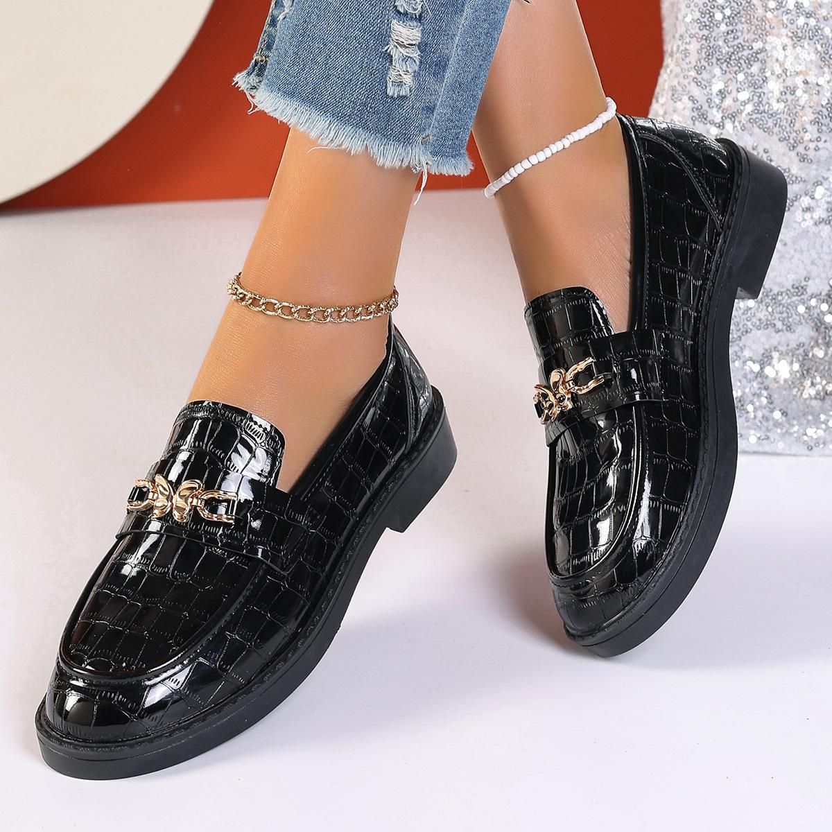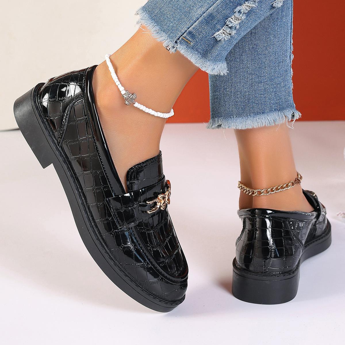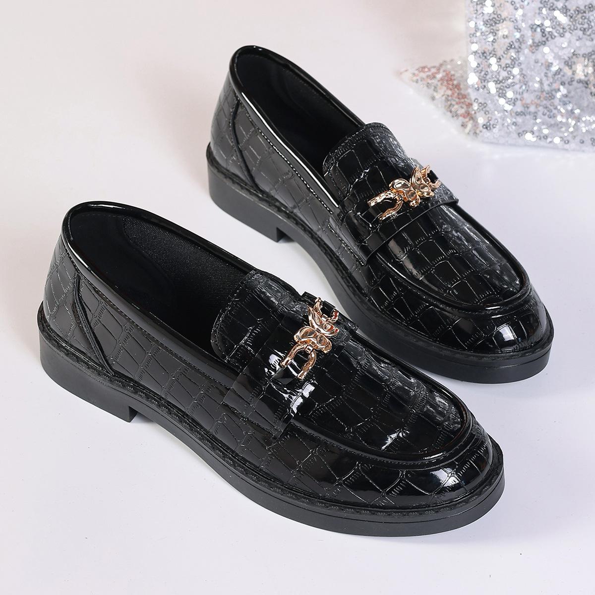 Mocasines de Cuero Suave Estilo Británico Primavera Nuevo Zapatos de Cuero Pequeños Negros para Mujer Zapatos de Fondo Suave para Señora Zapatos Planos Individuales