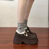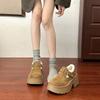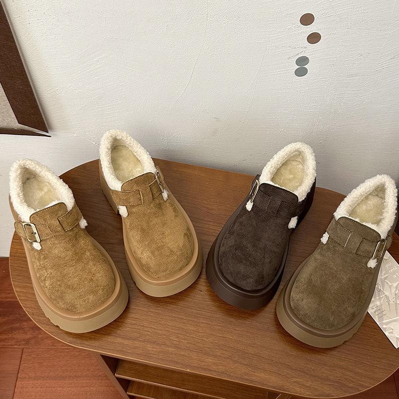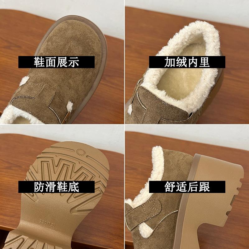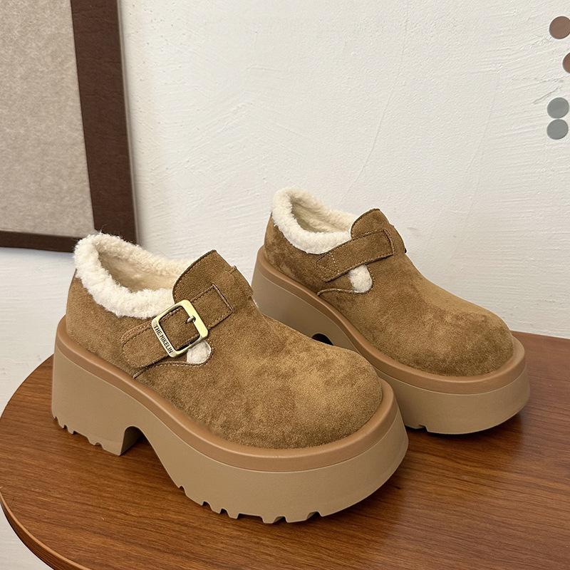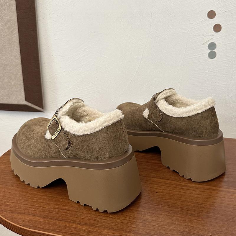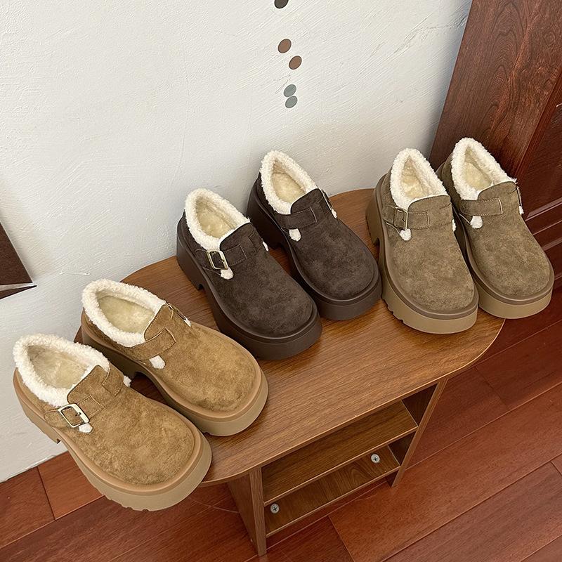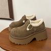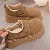 Zapatos de plataforma de suela gruesa acolchados de algodón invierno 2024 estilo británico forrados de vellón cálidos mocasines de ante de tacón medio nuevos para mujer boca Mao Mao