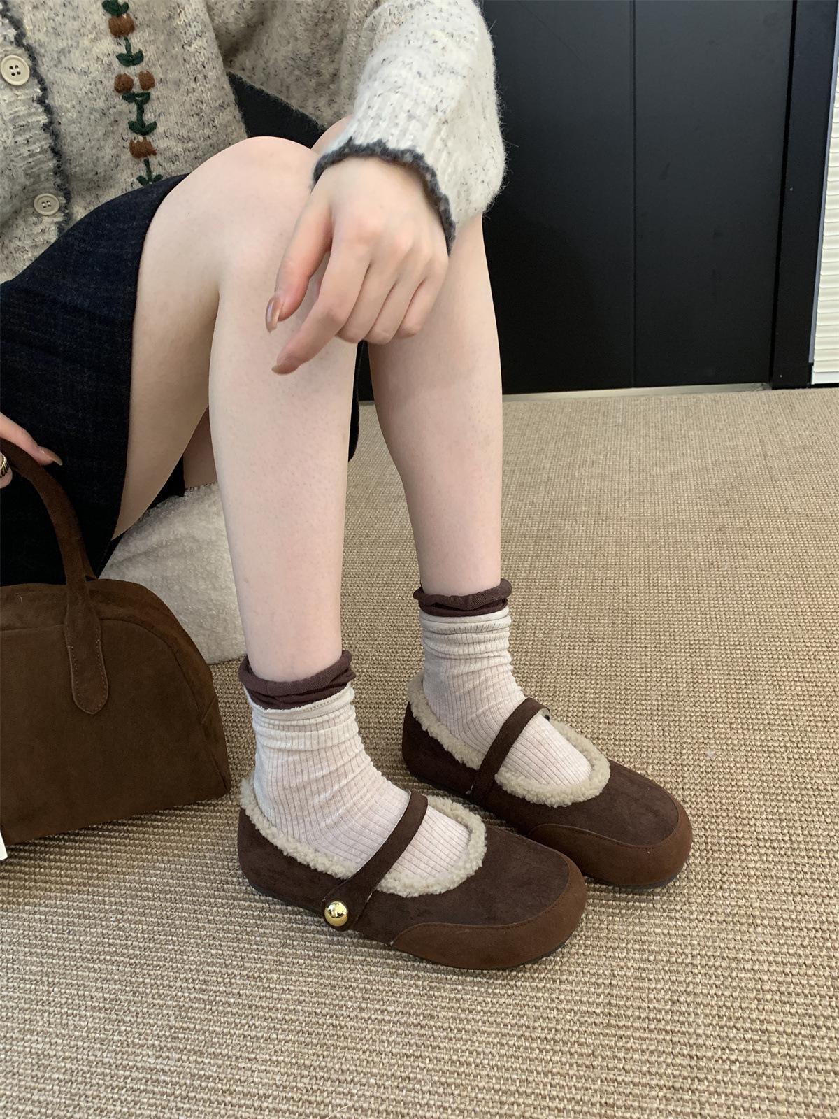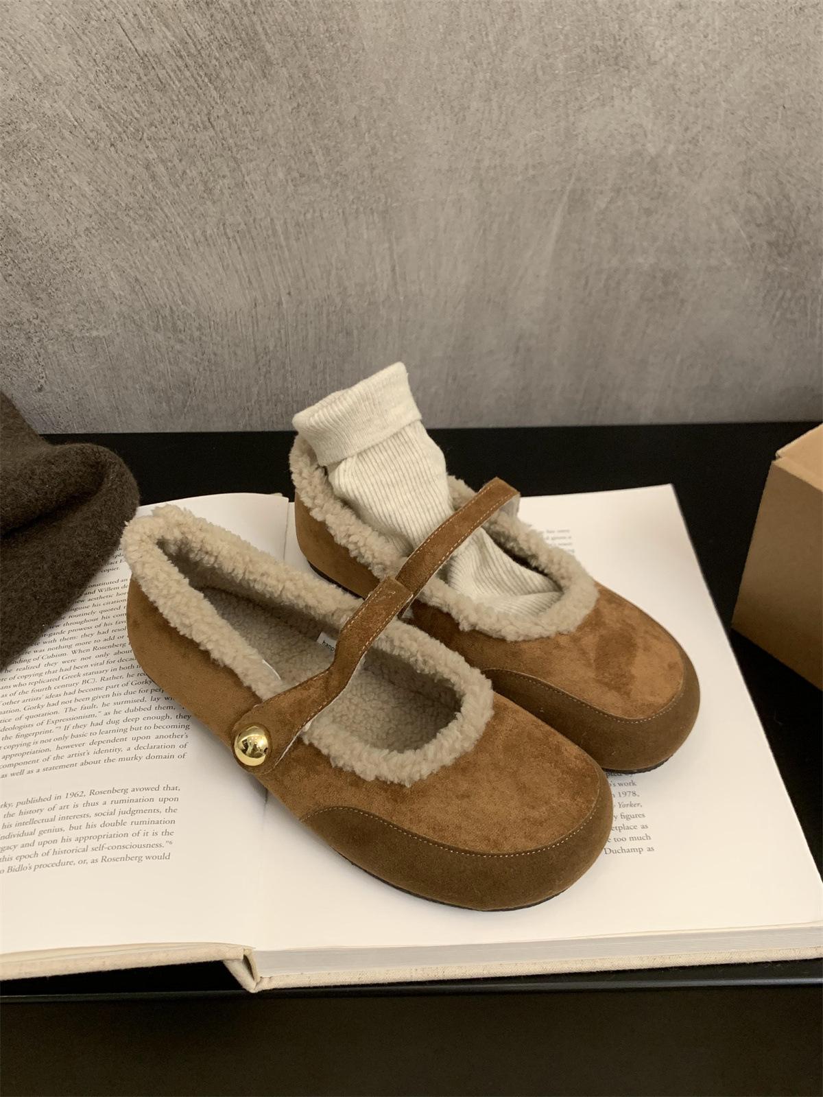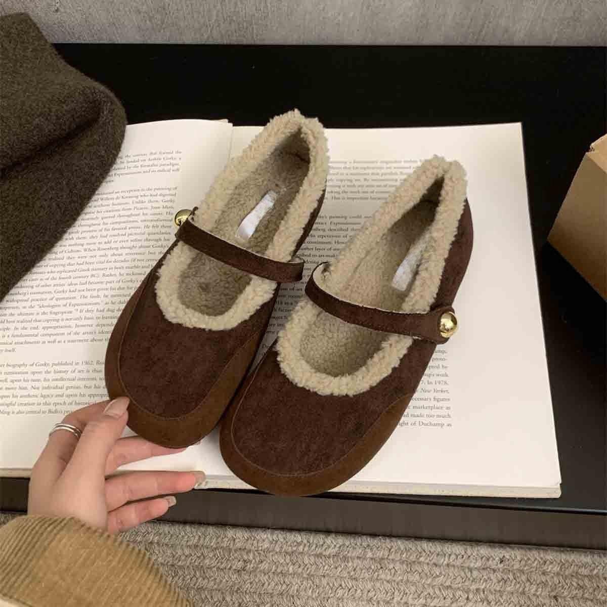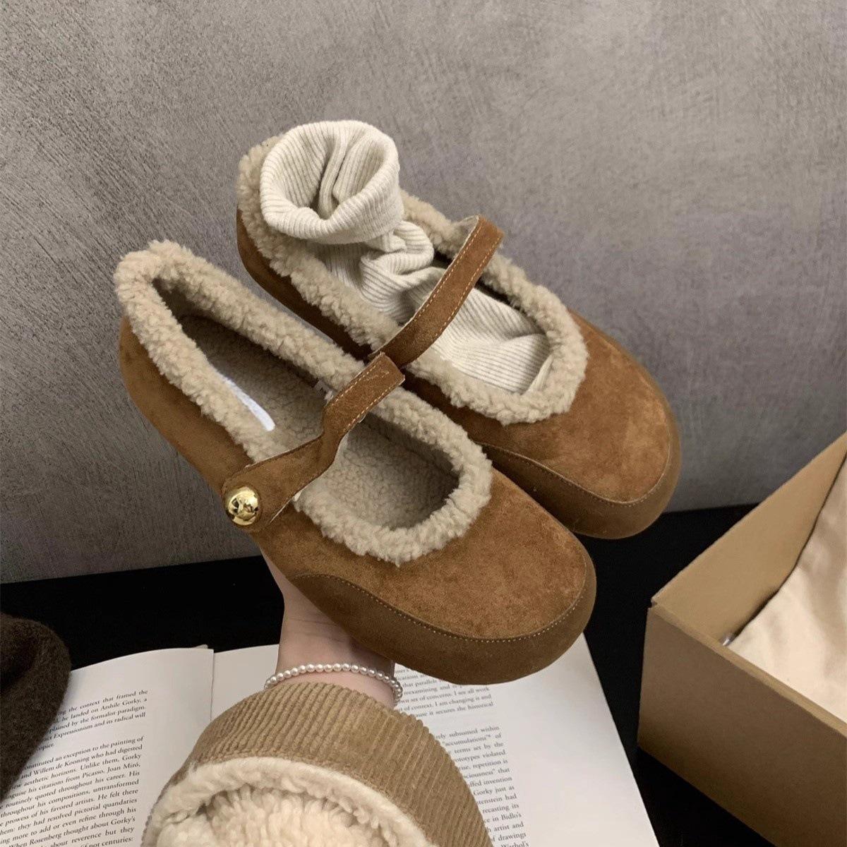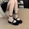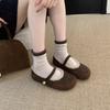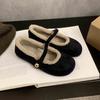 Zapatos Mary Jane vintage Mori con forro polar para mujer, 2024, punta redonda, ante de cordero y algodón.