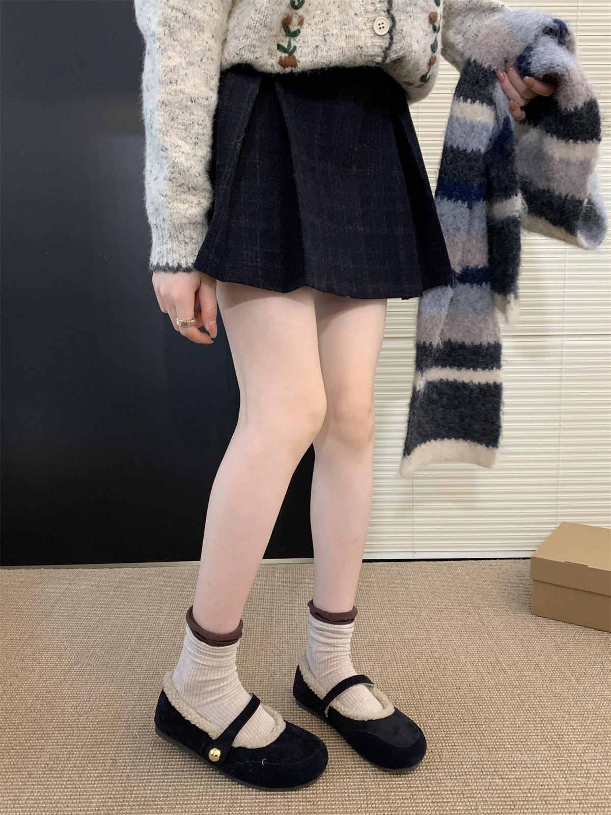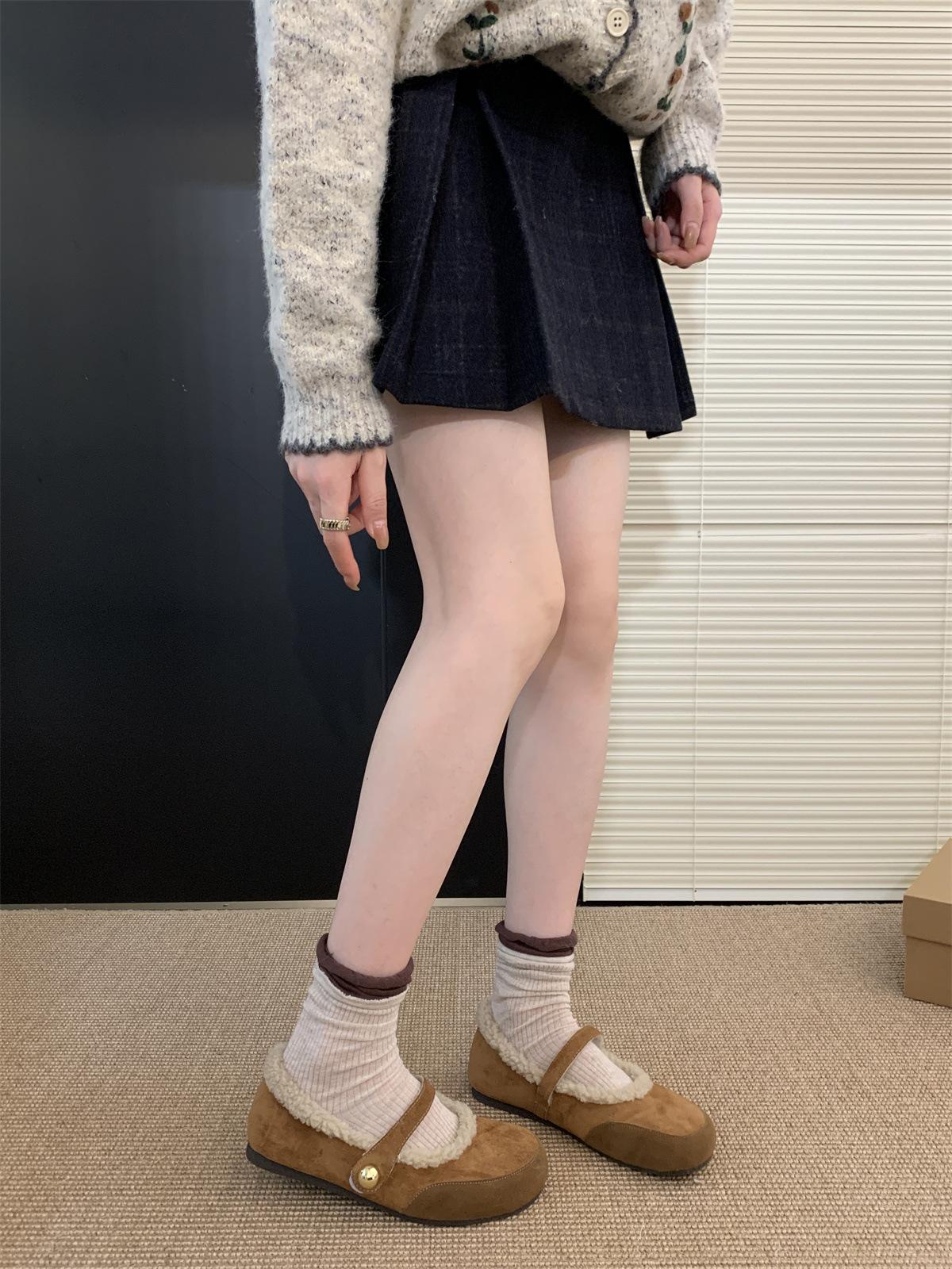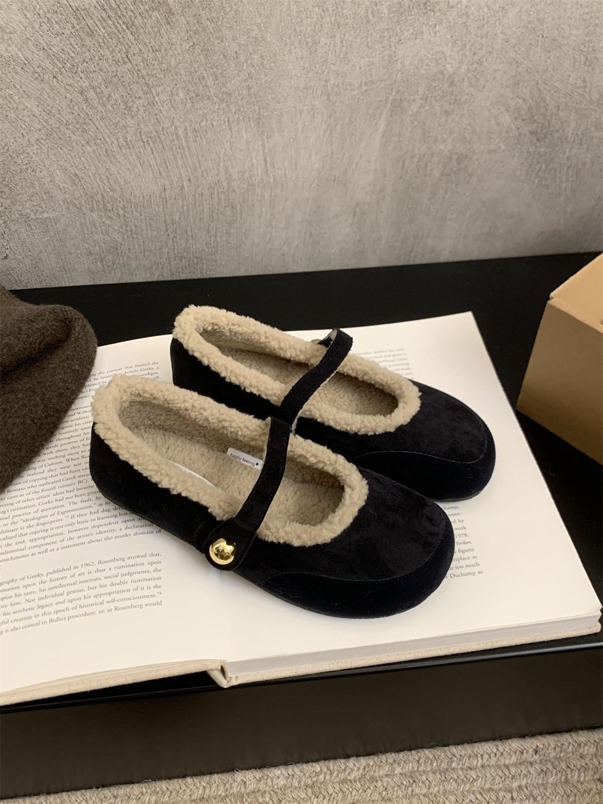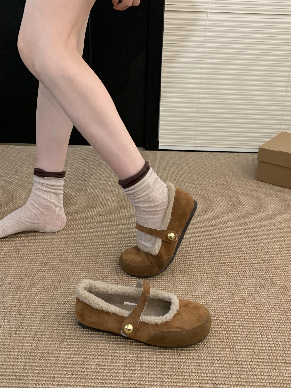 Zapatos Mary Jane vintage Mori con forro polar para mujer, 2024, punta redonda, ante de cordero y algodón.