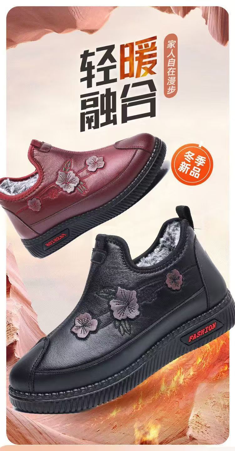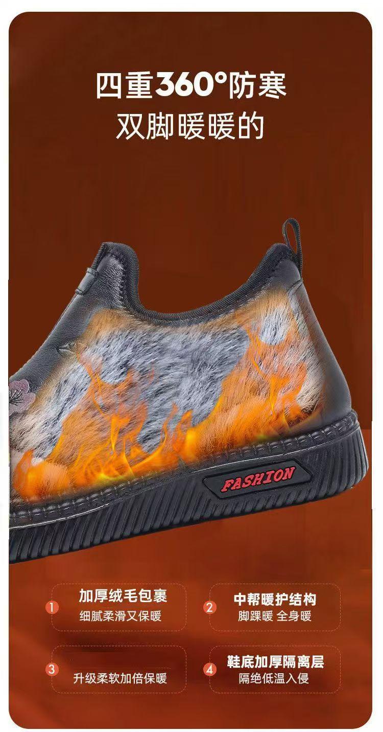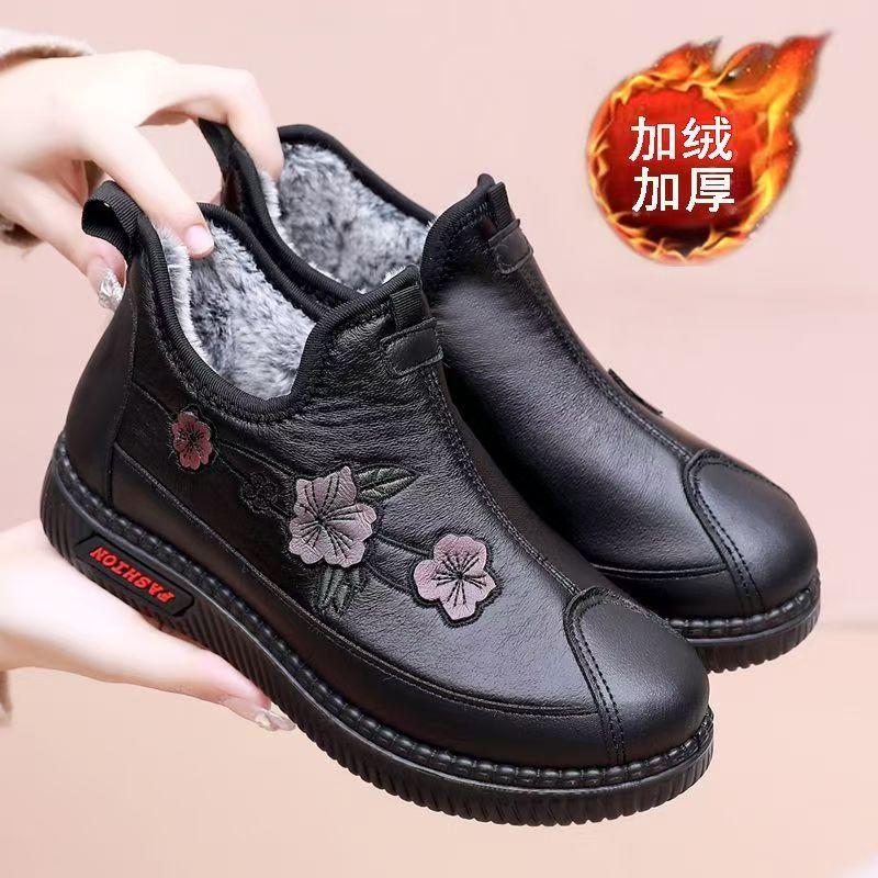 Nuevo estilo de zapatos para madres, zapatos de tela de Beijing antiguos con forro polar de invierno, zapatos de algodón para mujeres mayores, zapatos antideslizantes cálidos para señoras mayores, zapatos de leche para personas mayores.