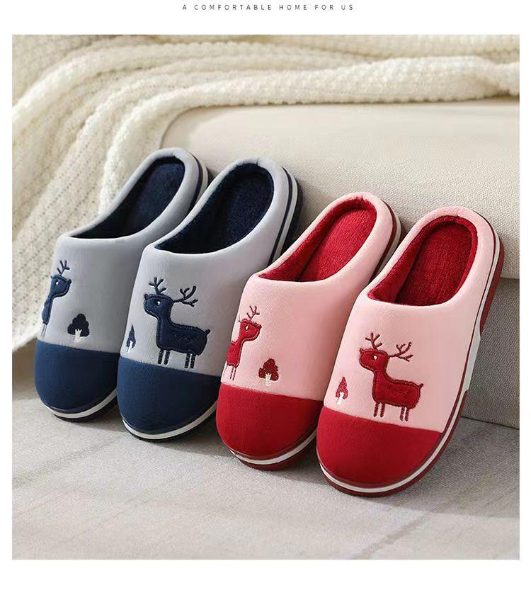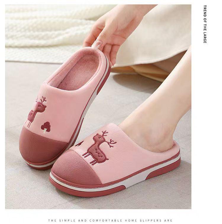 Pantuflas de algodón con dibujos animados para hombre, para interiores, hogar, suela gruesa, otoño e invierno, antideslizantes, cálidas, de lana, para mujer, invierno