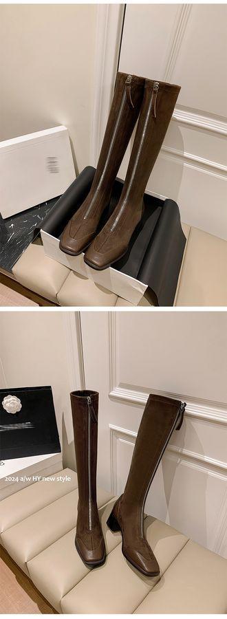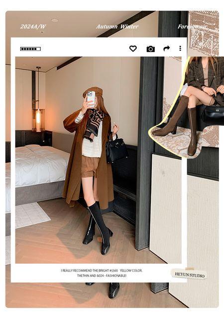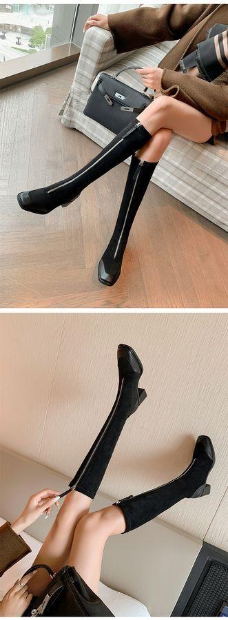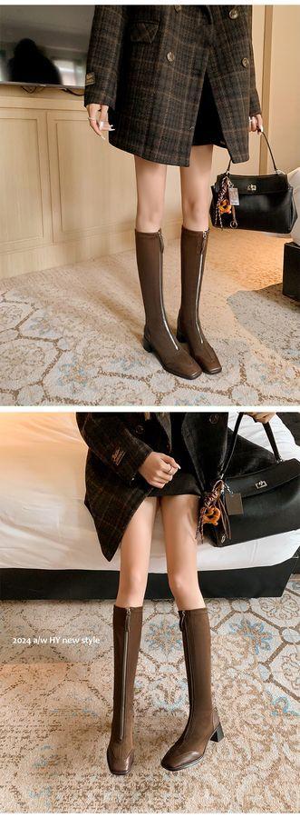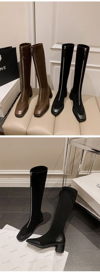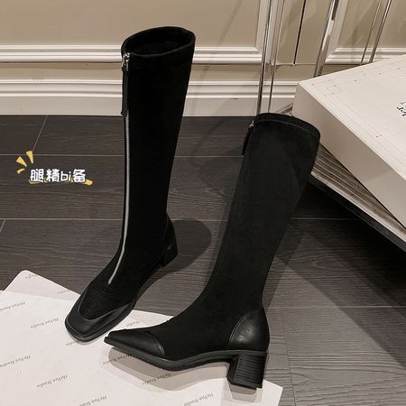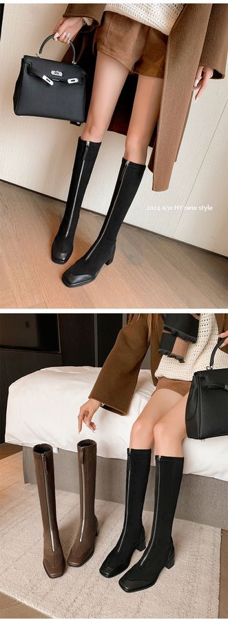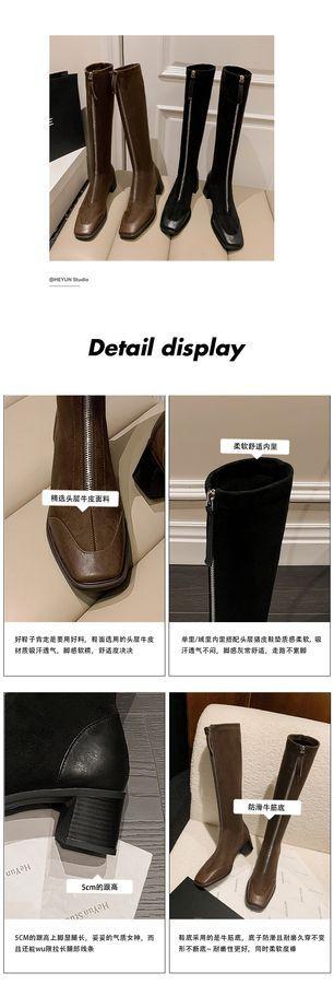 Controla Perfectamente la Punta Cuadrada Tacón Grueso para Mostrar Aspecto Adelgazante Piernas Largas, Botas Altas con Cremallera Delantera, Invierno 2025 Botas de Caballero Versátiles Personalizadas