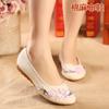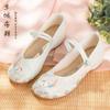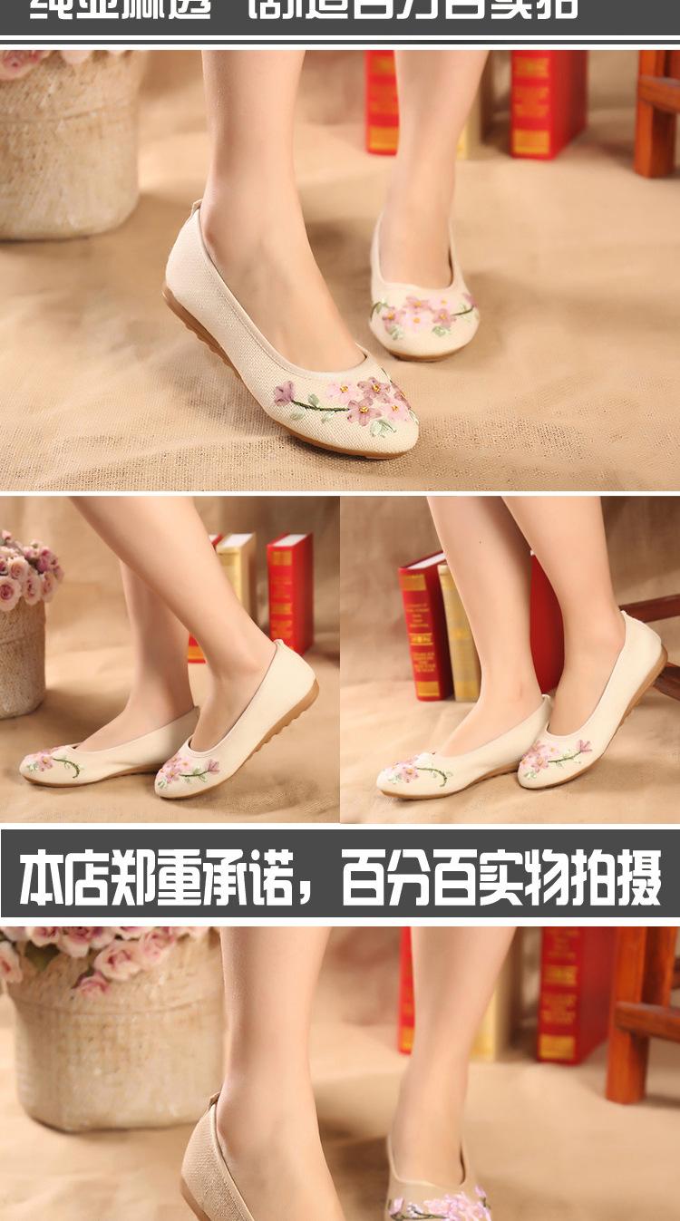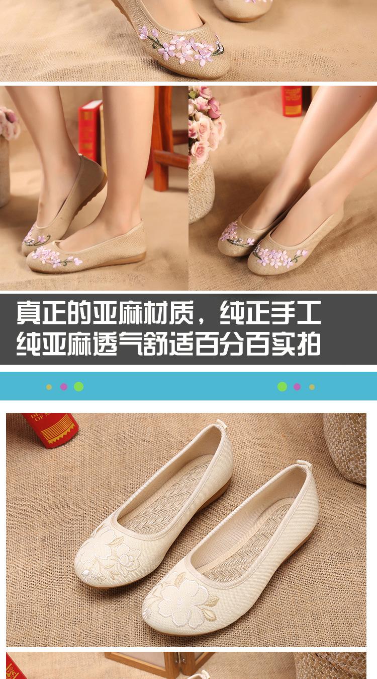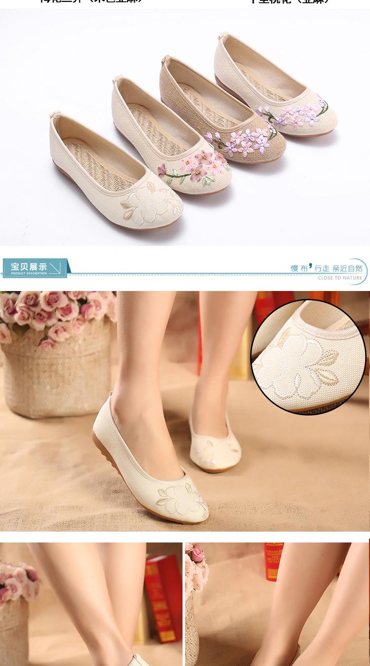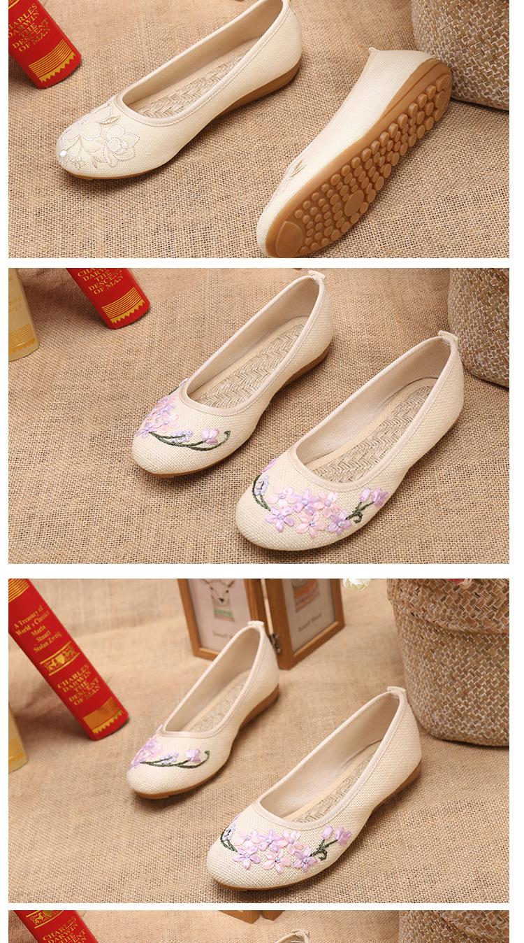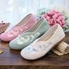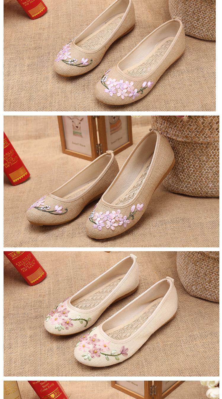Zapatos de tela antiguos de Beijing para primavera y verano, zapatos de mujer vintage con bordado de espinas, zapatos planos antideslizantes de estilo étnico para danza Hanfu.