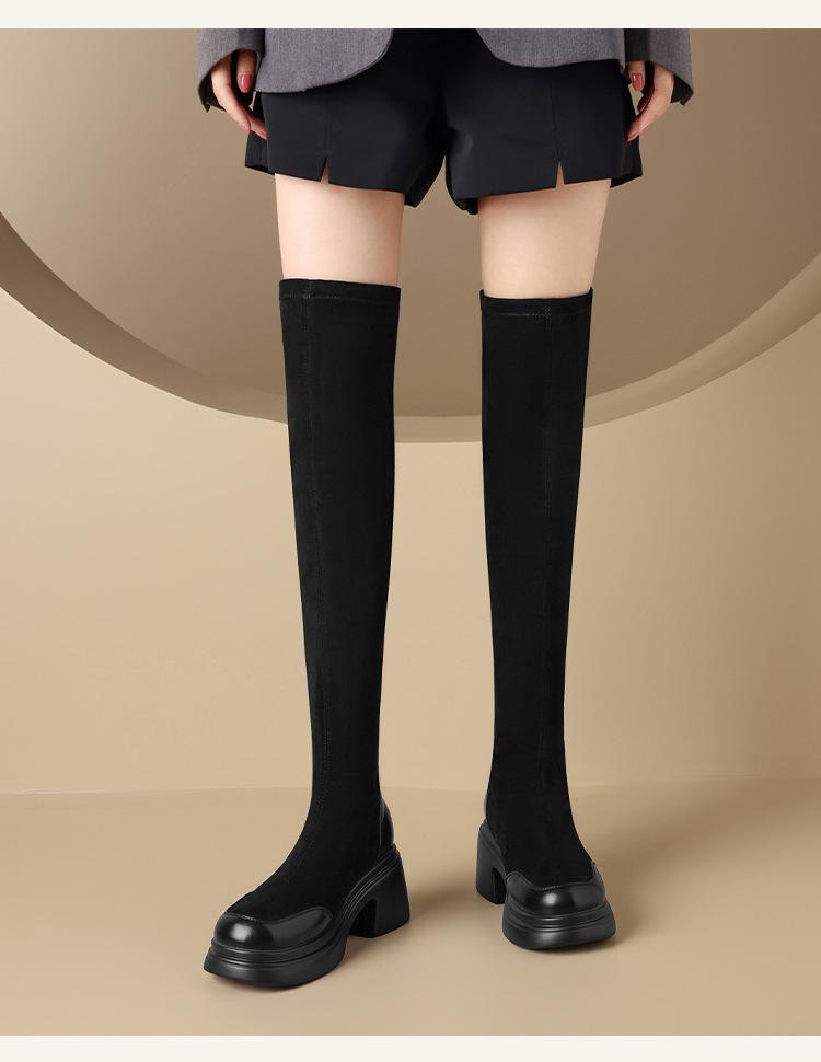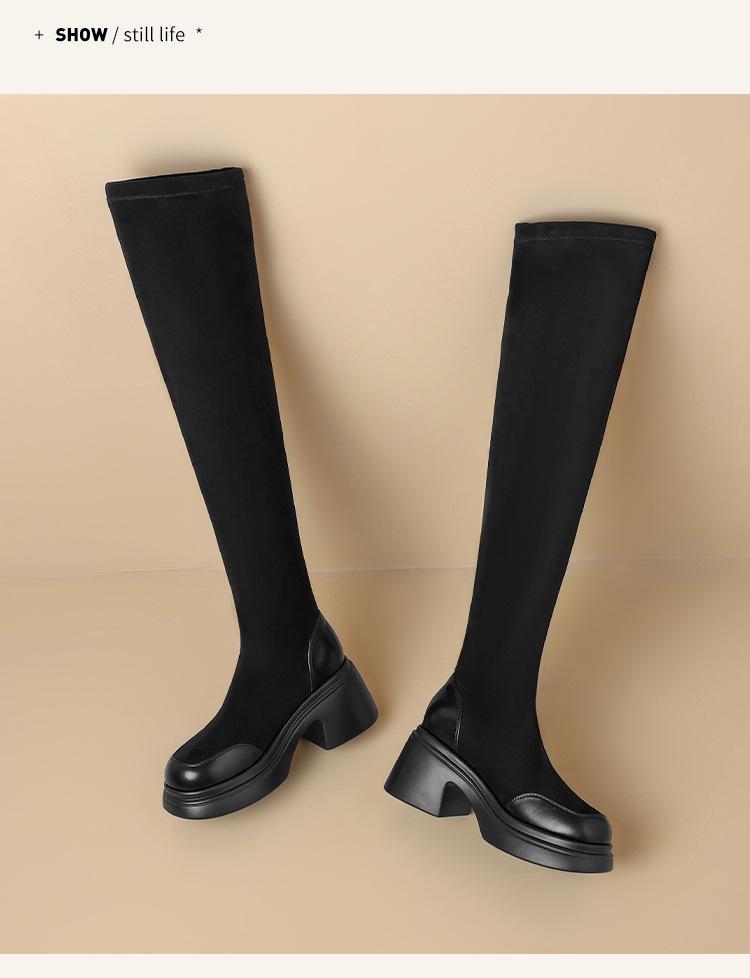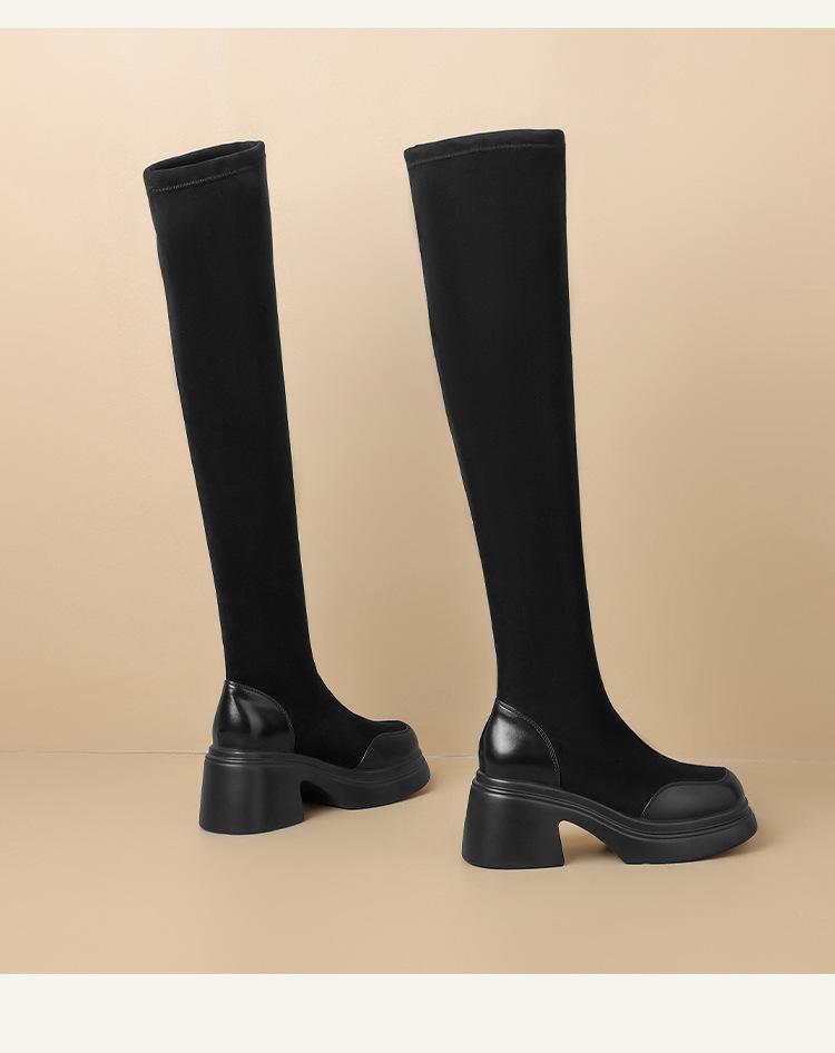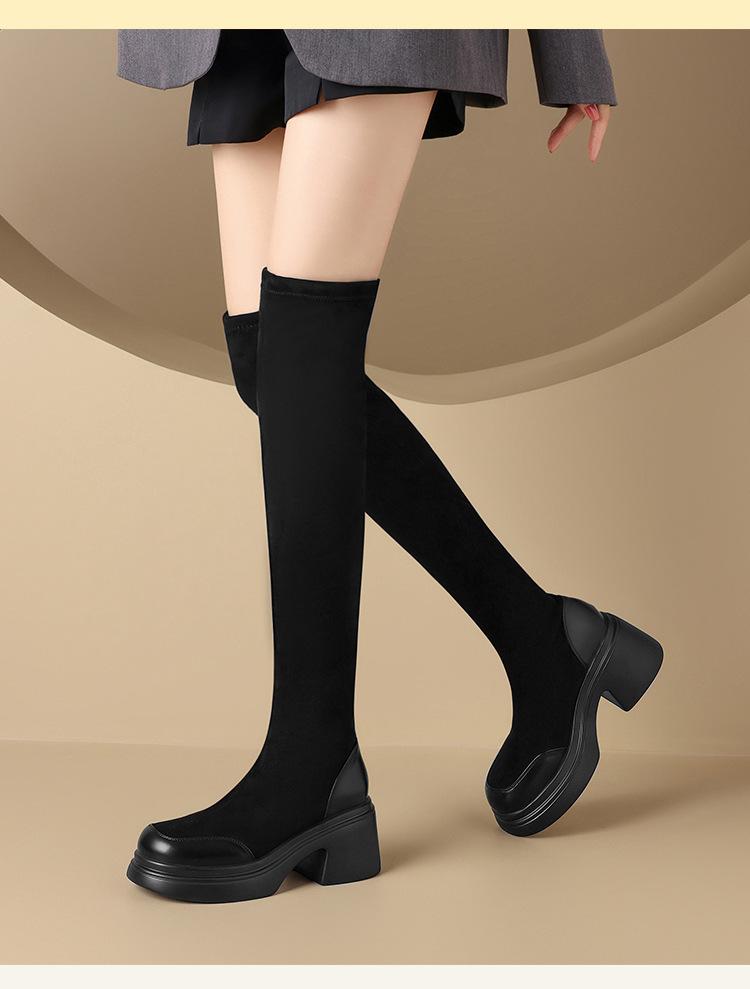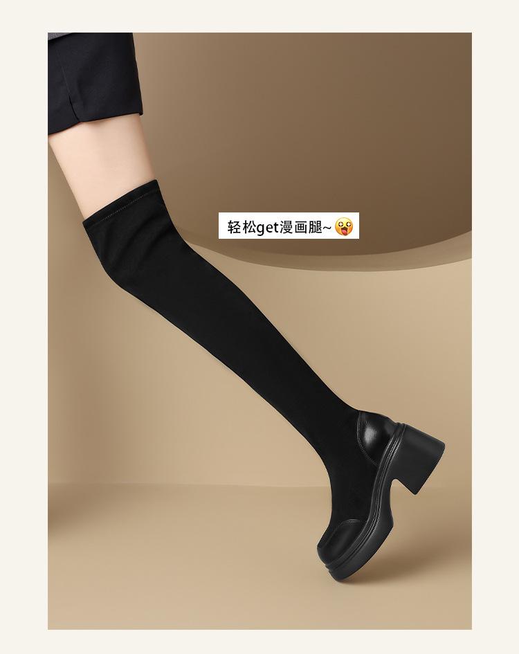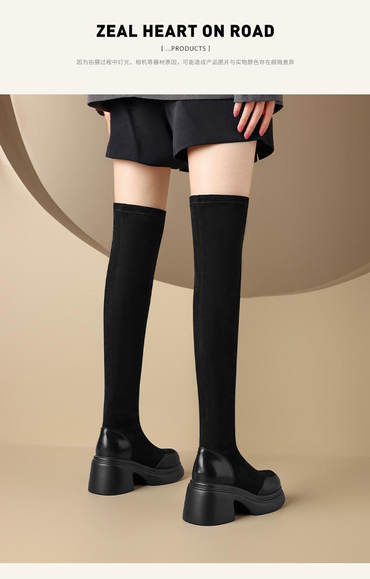 ZHR es un estilo extranjero Joker botas hasta la rodilla 2024 nuevas botas elásticas tacón grueso forro polar cálidas botas de caballero para mujer