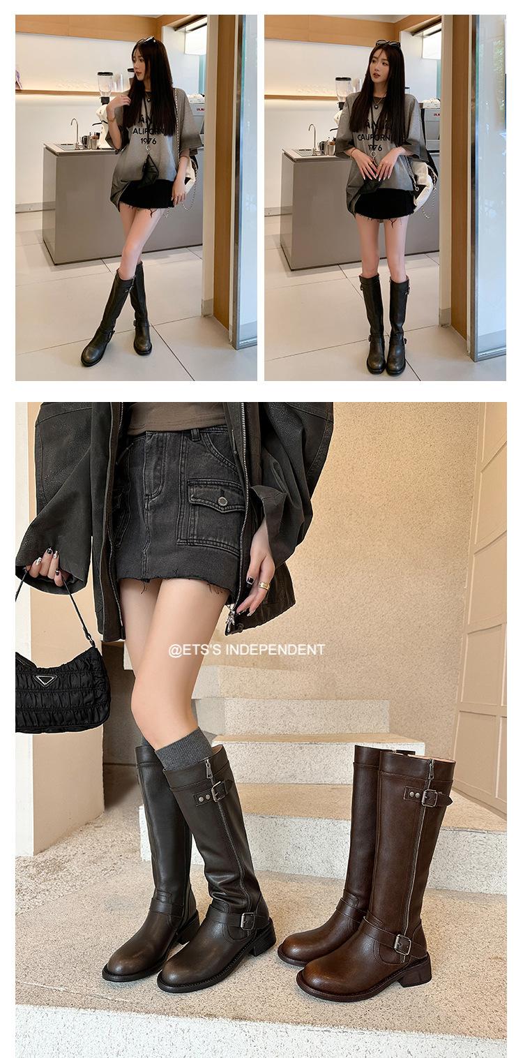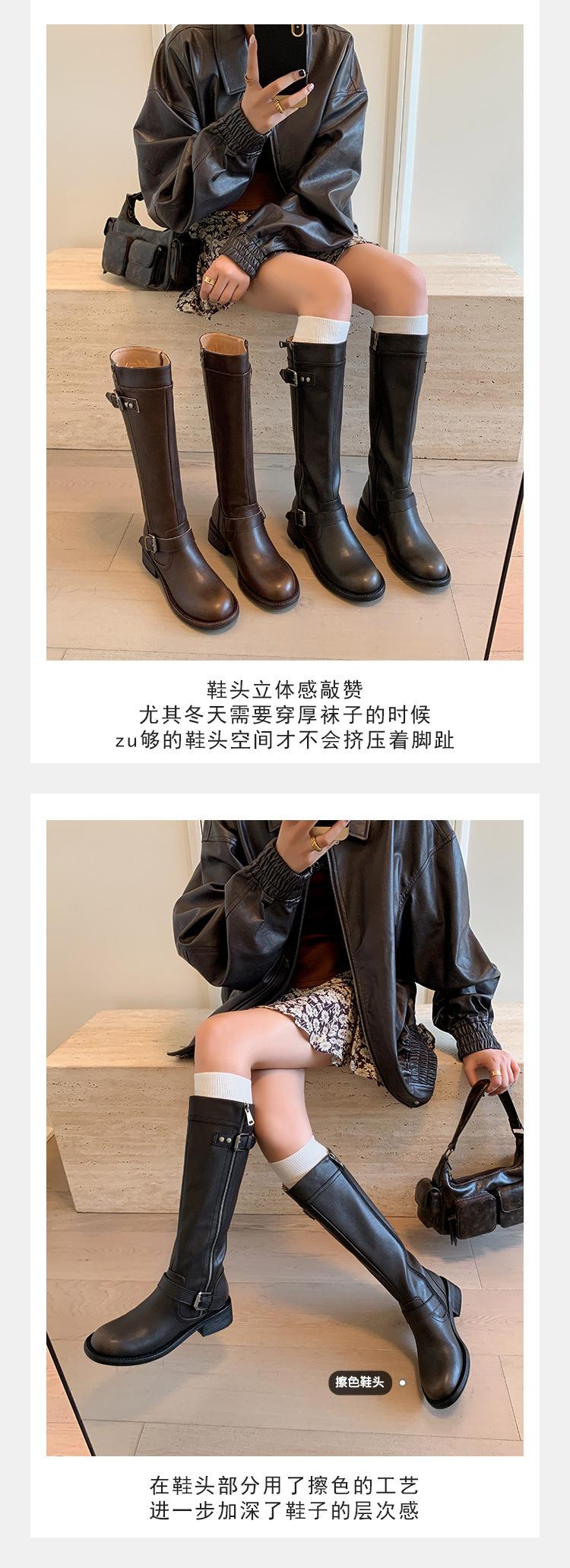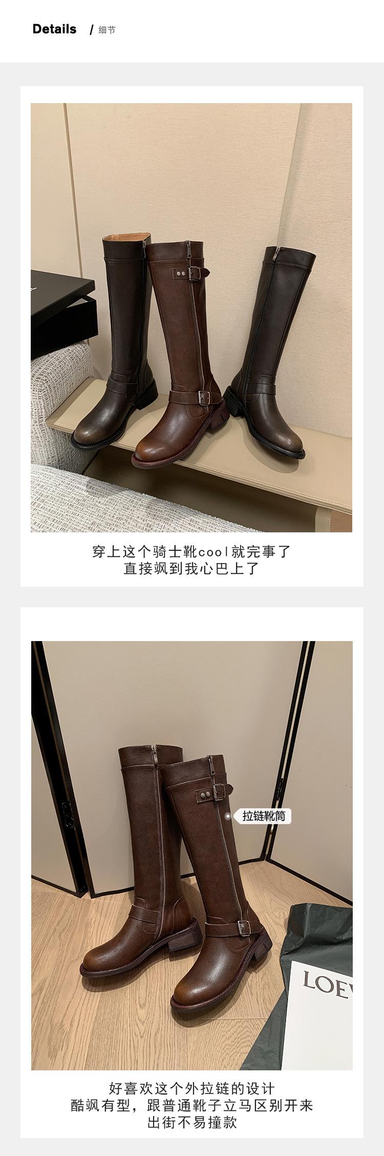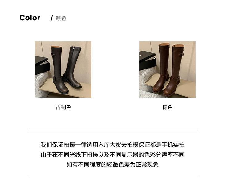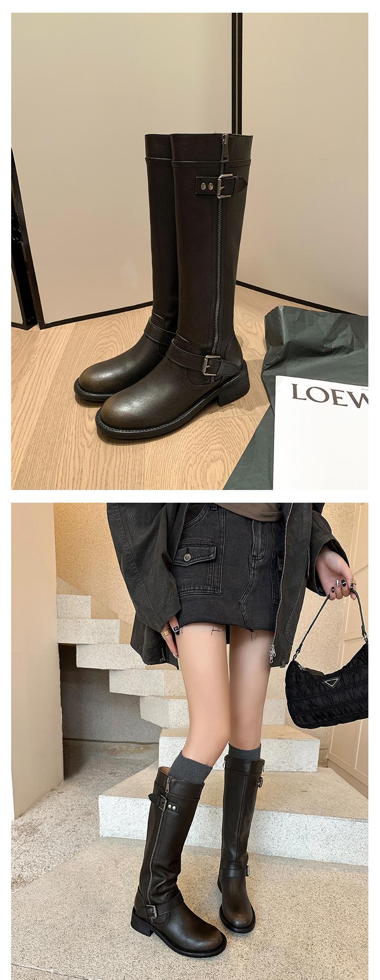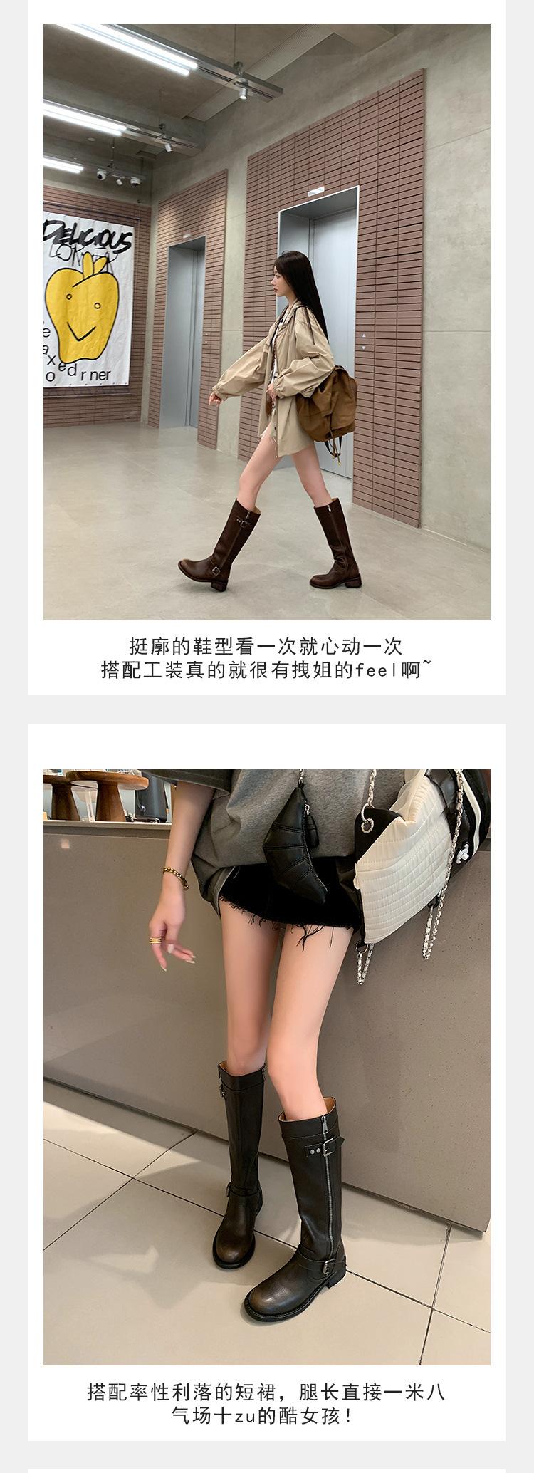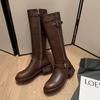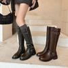 Mostrar largo de pierna ~ Hebilla de cinturón retro Maillard pero botas hasta la rodilla 2024 invierno moda tacón grueso botas de caballero occidentales