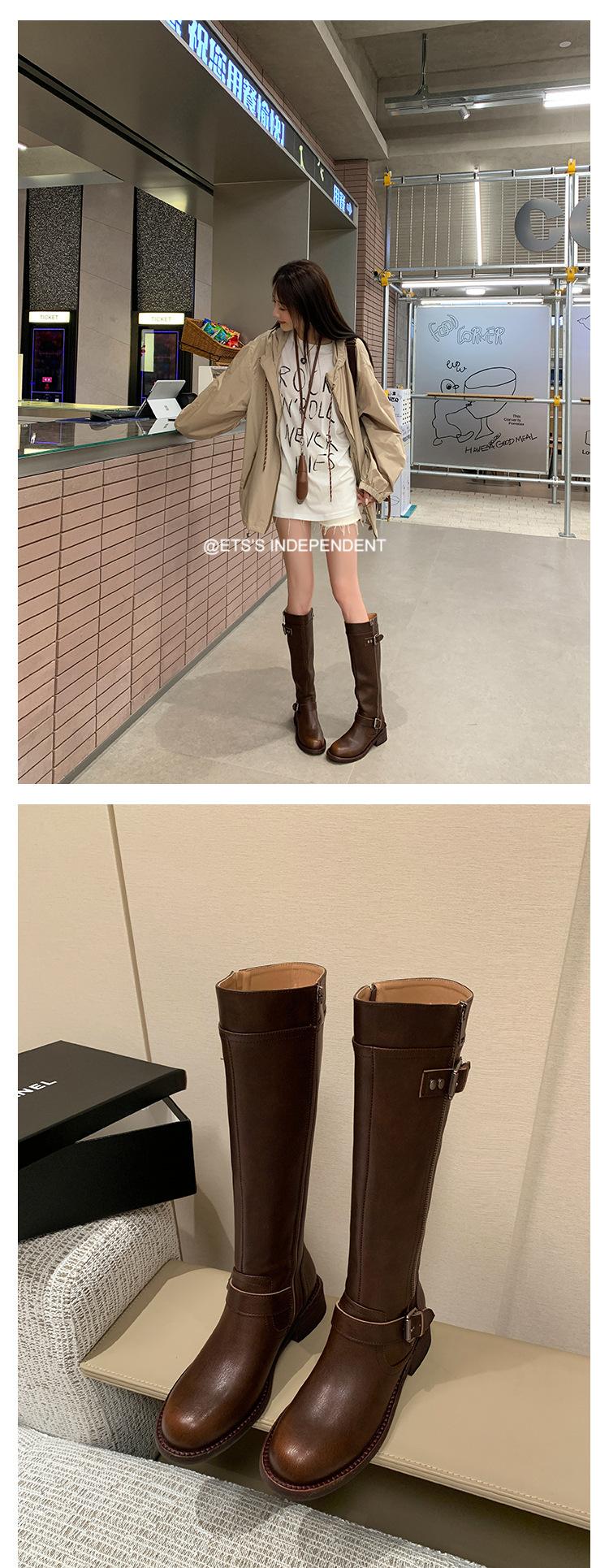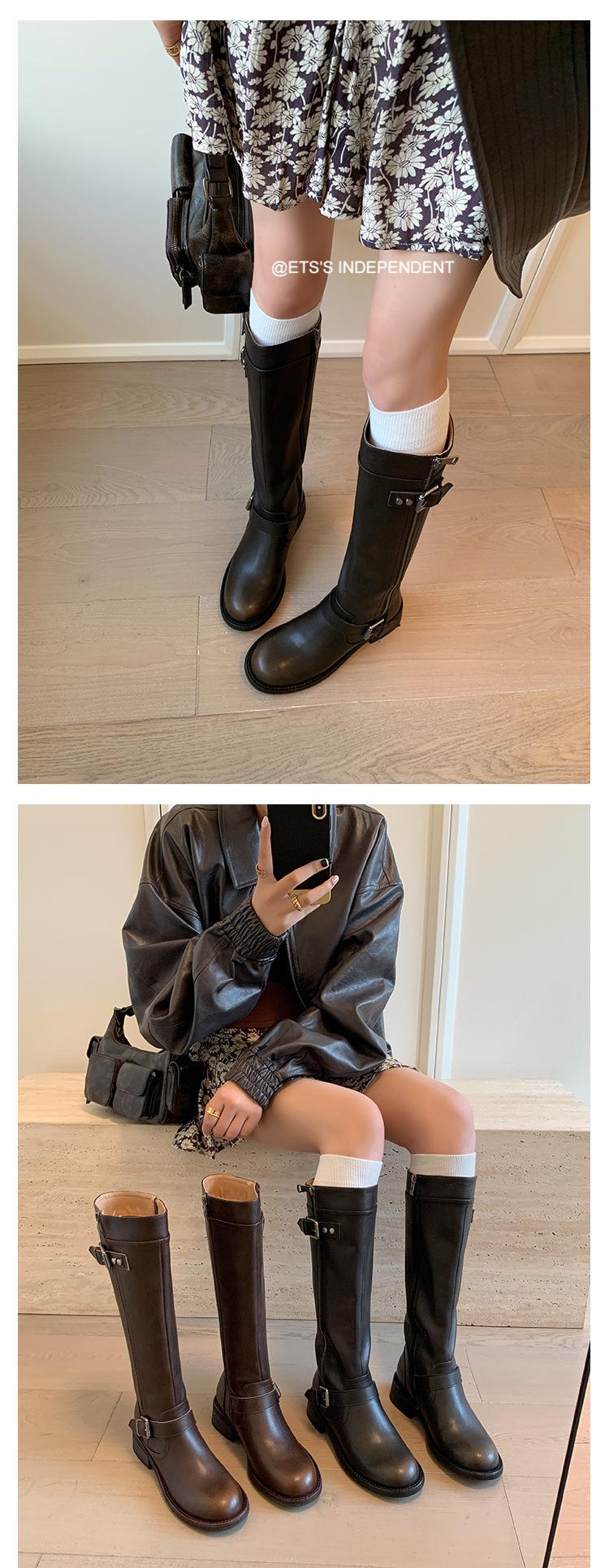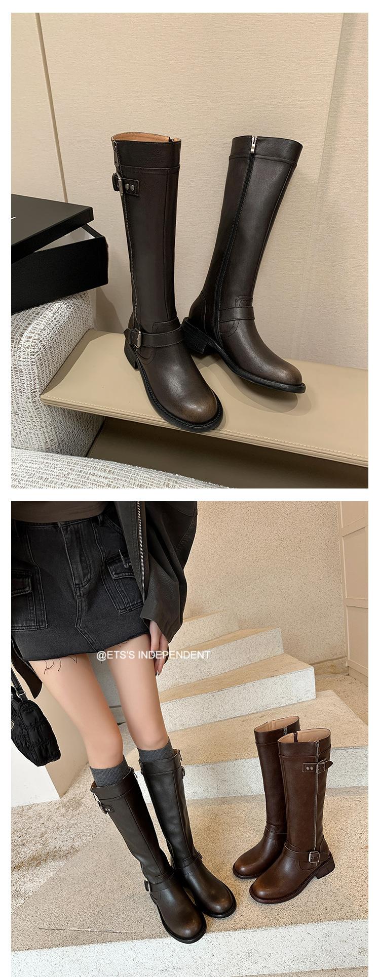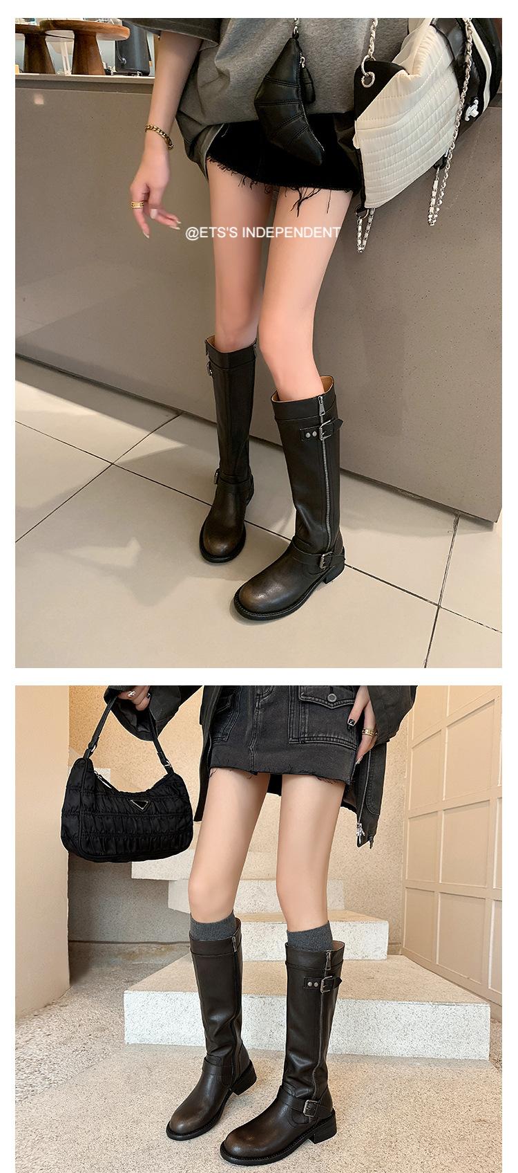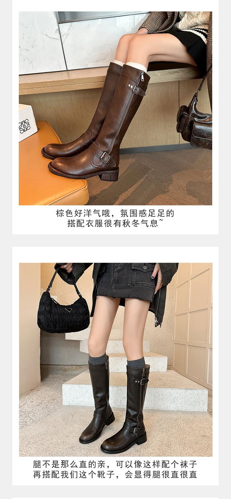 Mostrar largo de pierna ~ Hebilla de cinturón retro Maillard pero botas hasta la rodilla 2024 invierno moda tacón grueso botas de caballero occidentales