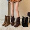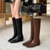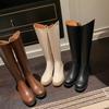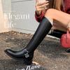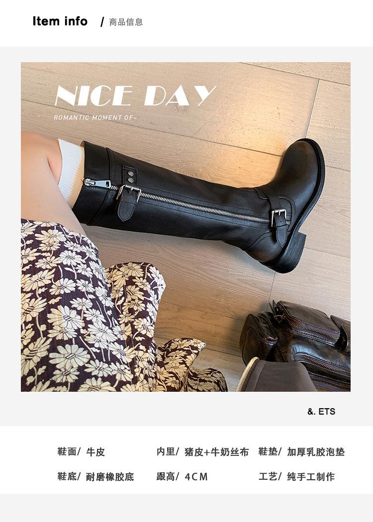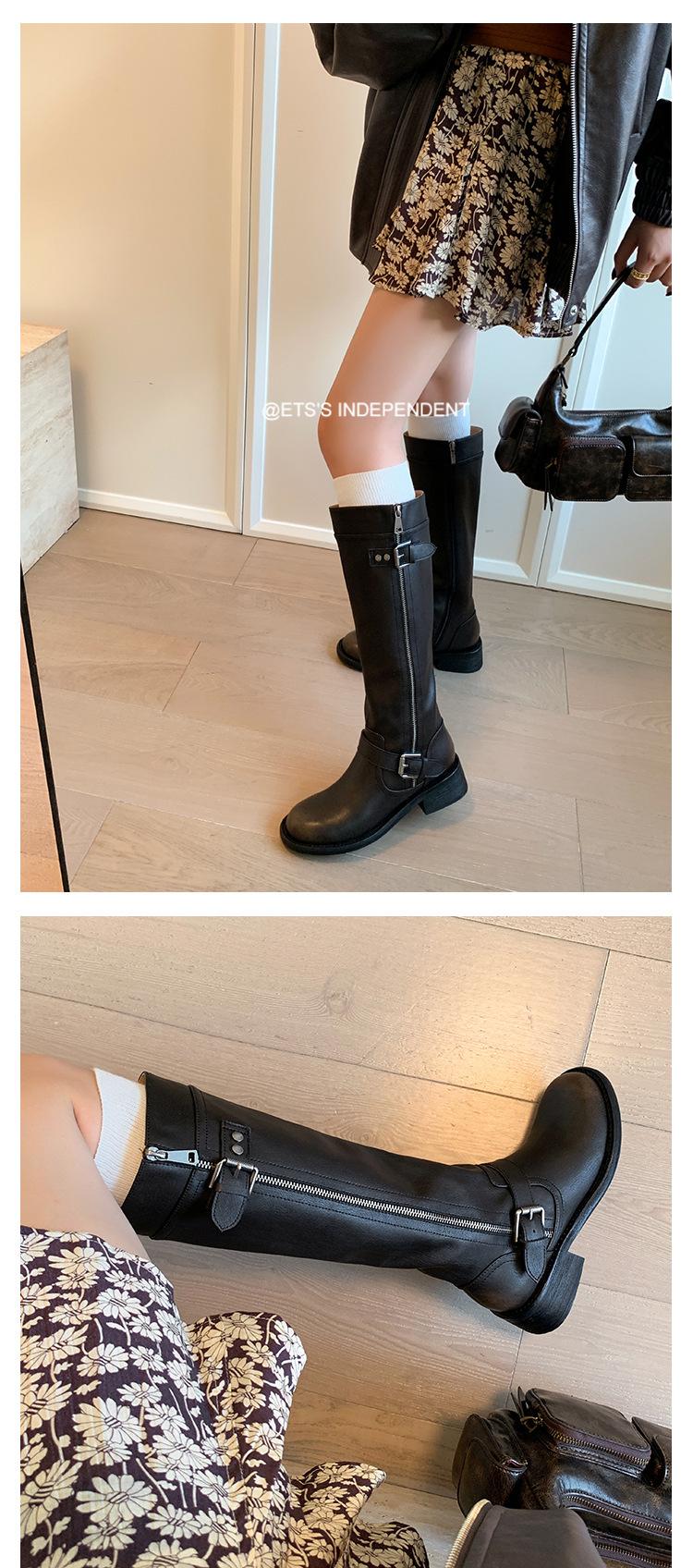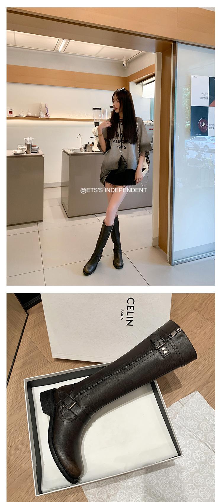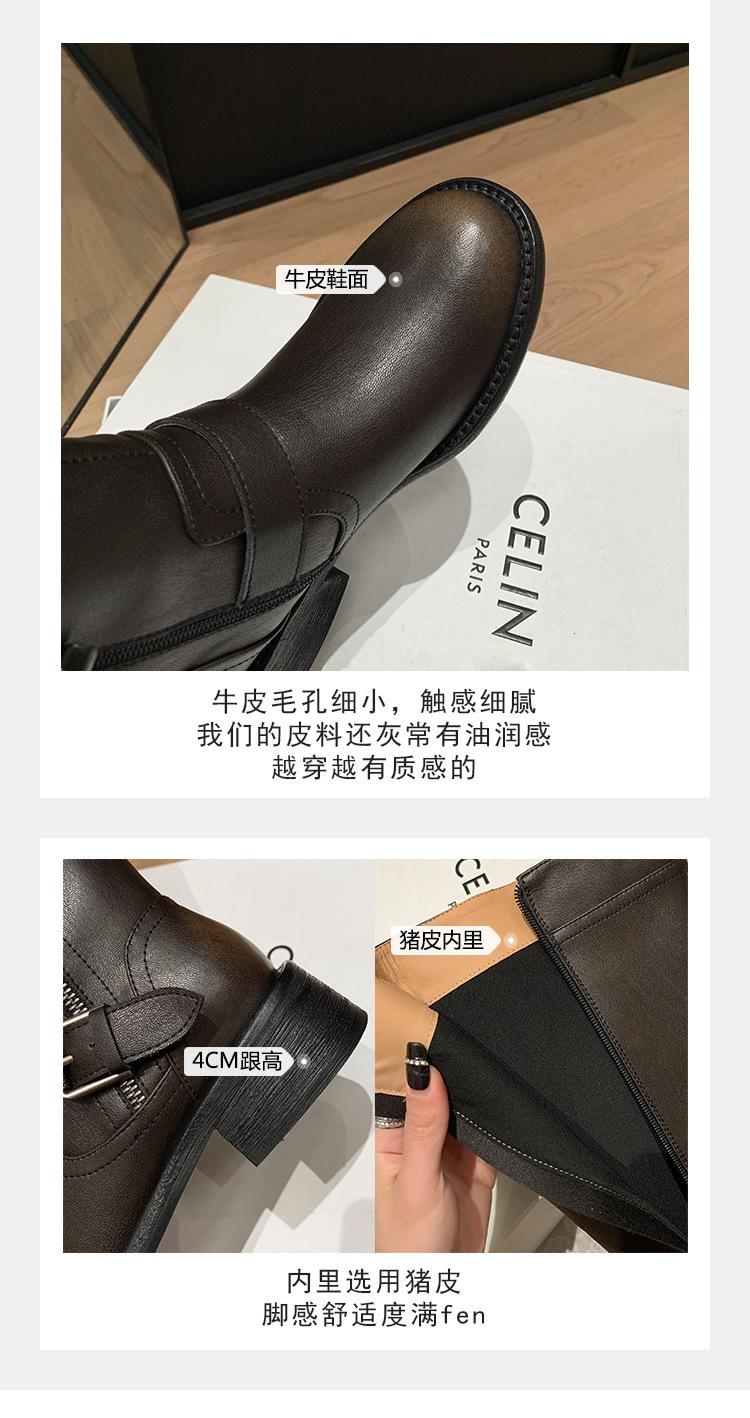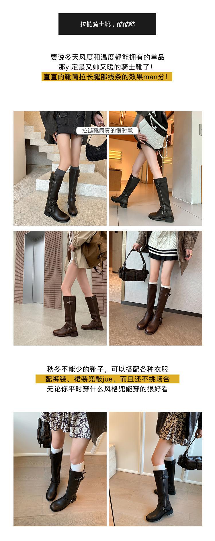 Mostrar largo de pierna ~ Hebilla de cinturón retro Maillard pero botas hasta la rodilla 2024 invierno moda tacón grueso botas de caballero occidentales