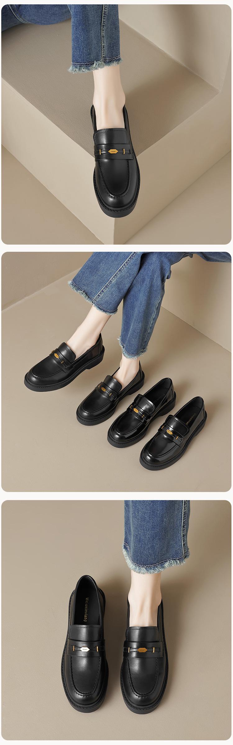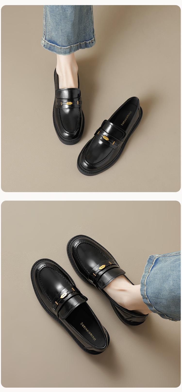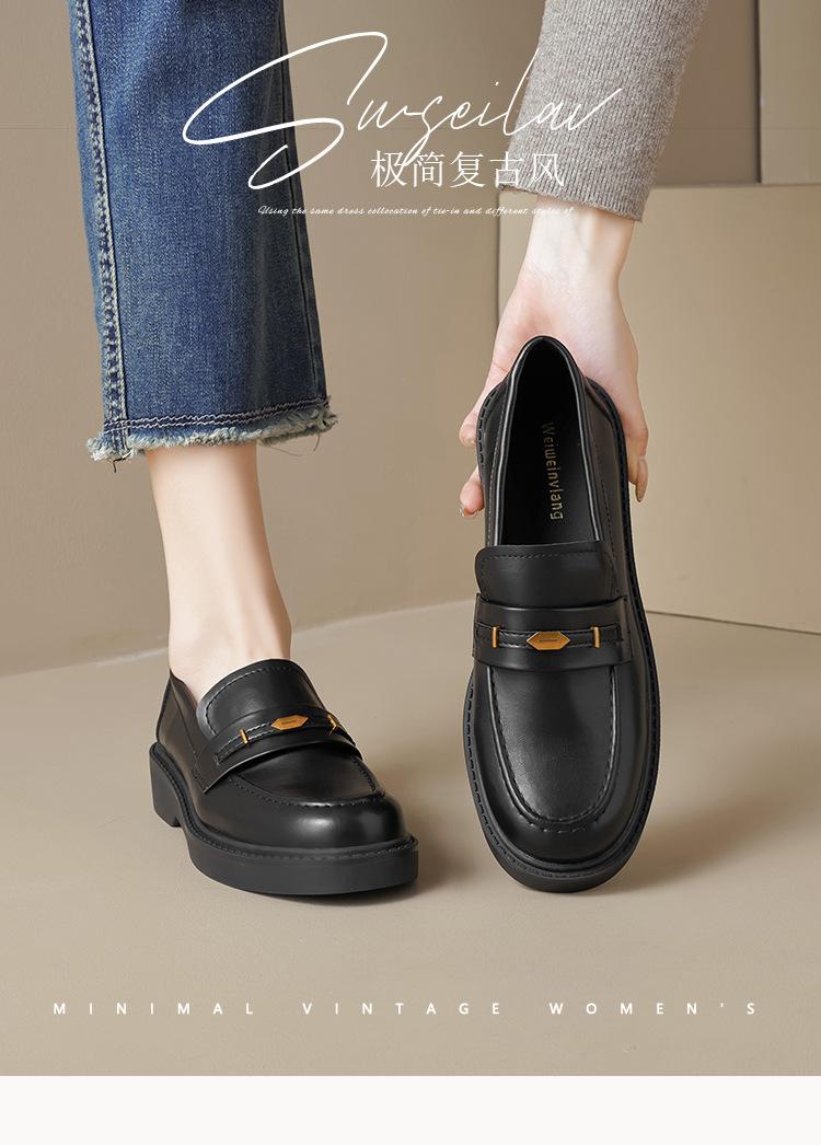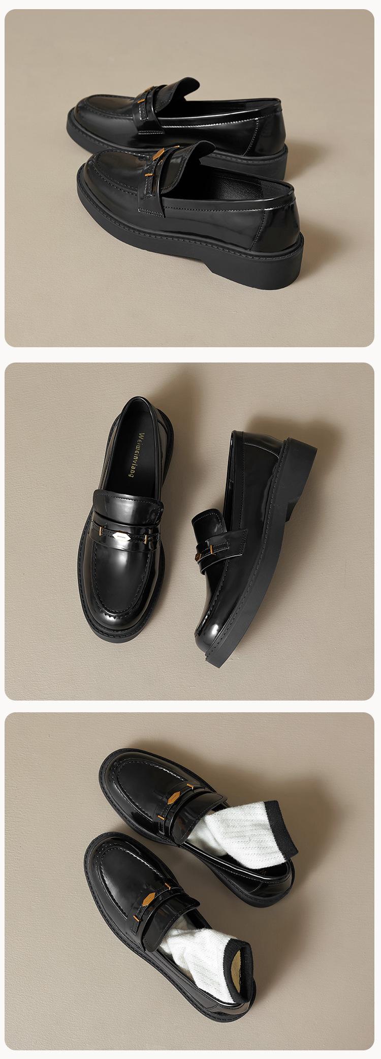 Weiwei Girl 1083-2 Zapatos de Cuero Negros Pequeños para Mujer Estilo Retro Universitario Mocasines de Suela Gruesa Zapatos de Un Pedal para Mujer