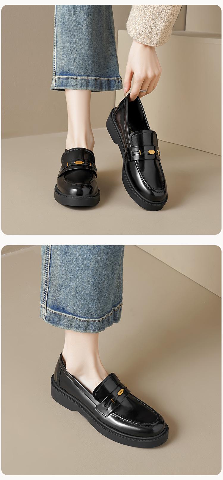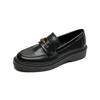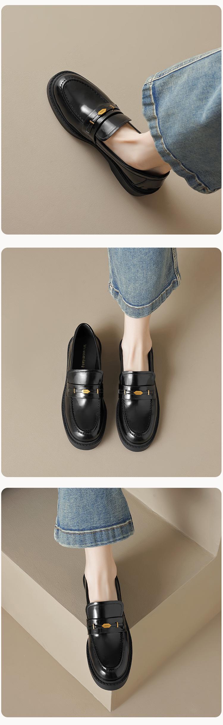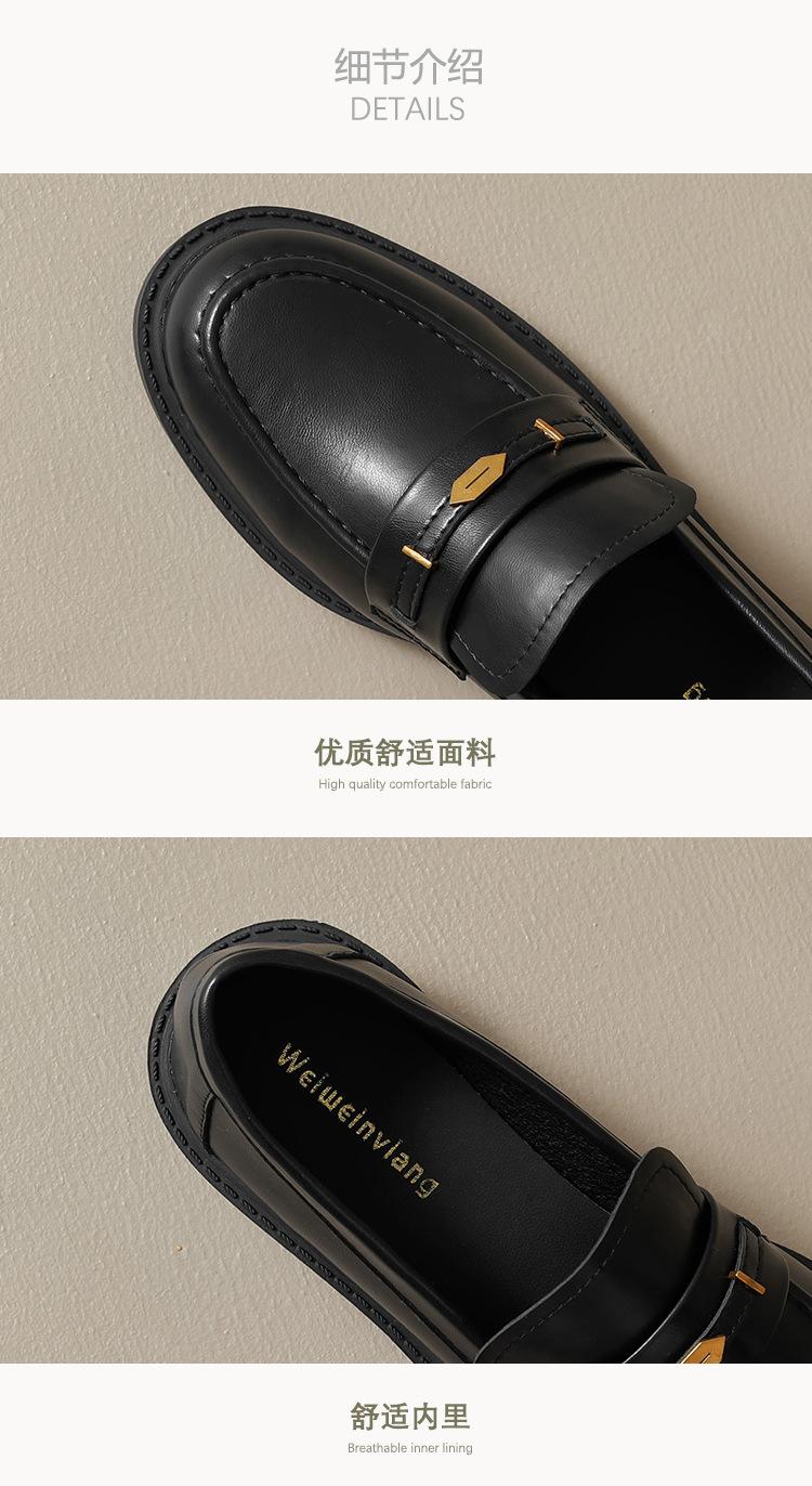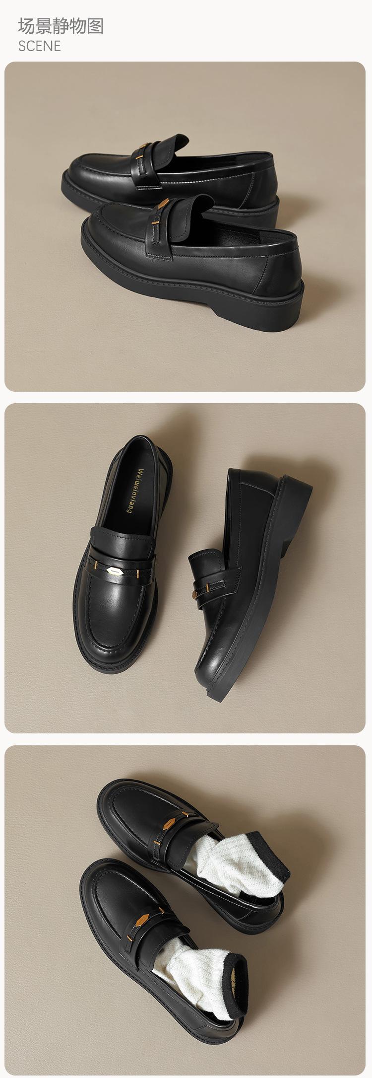 Weiwei Girl 1083-2 Zapatos de Cuero Negros Pequeños para Mujer Estilo Retro Universitario Mocasines de Suela Gruesa Zapatos de Un Pedal para Mujer
