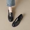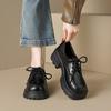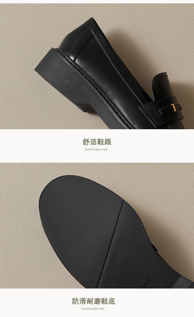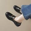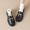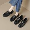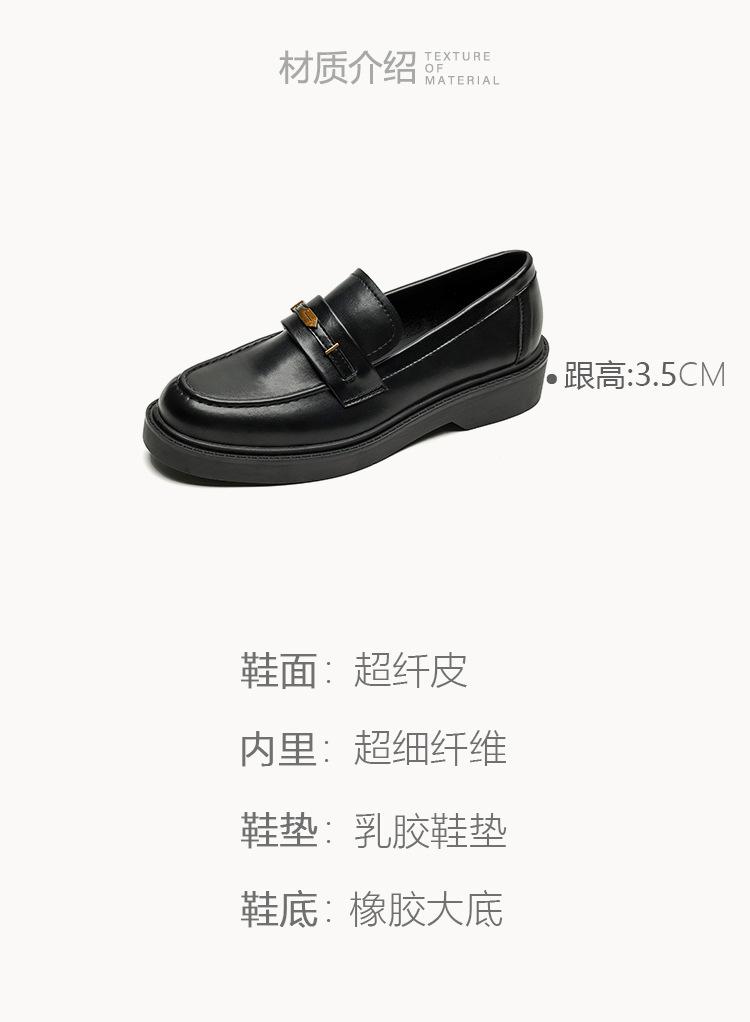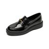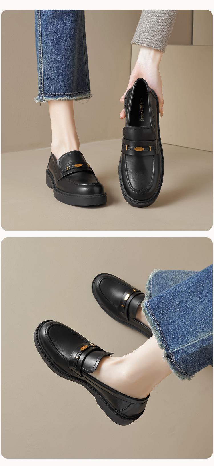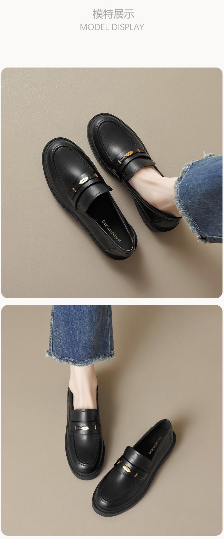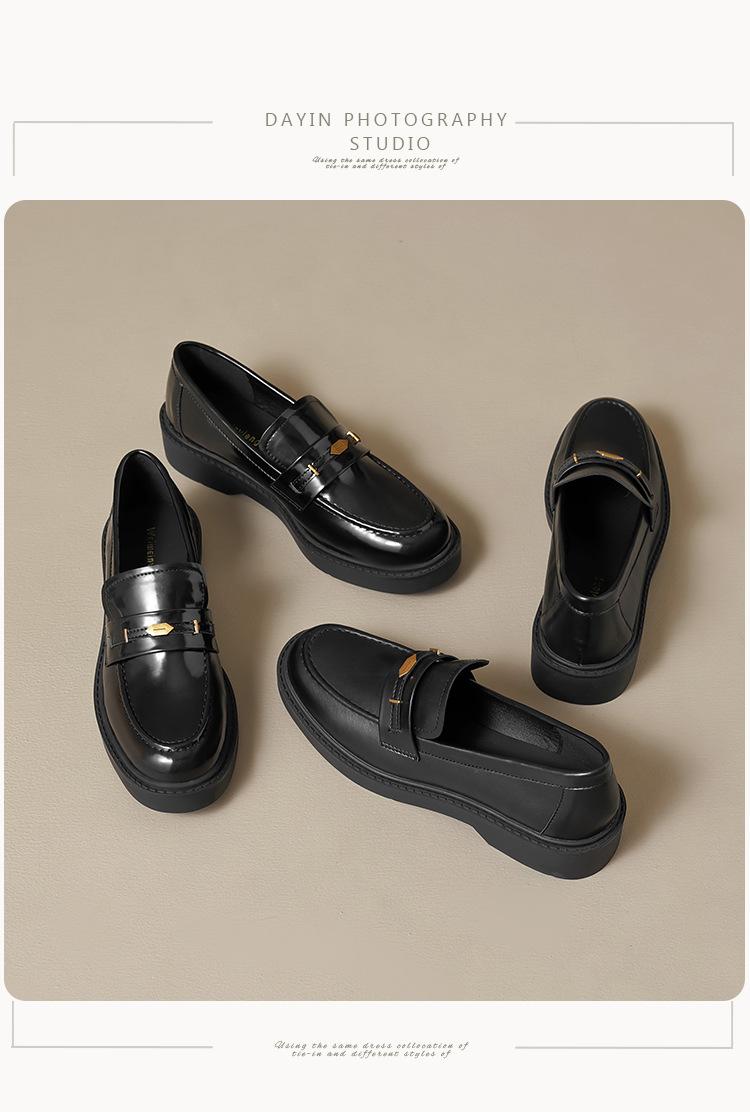 Weiwei Girl 1083-2 Zapatos de Cuero Negros Pequeños para Mujer Estilo Retro Universitario Mocasines de Suela Gruesa Zapatos de Un Pedal para Mujer