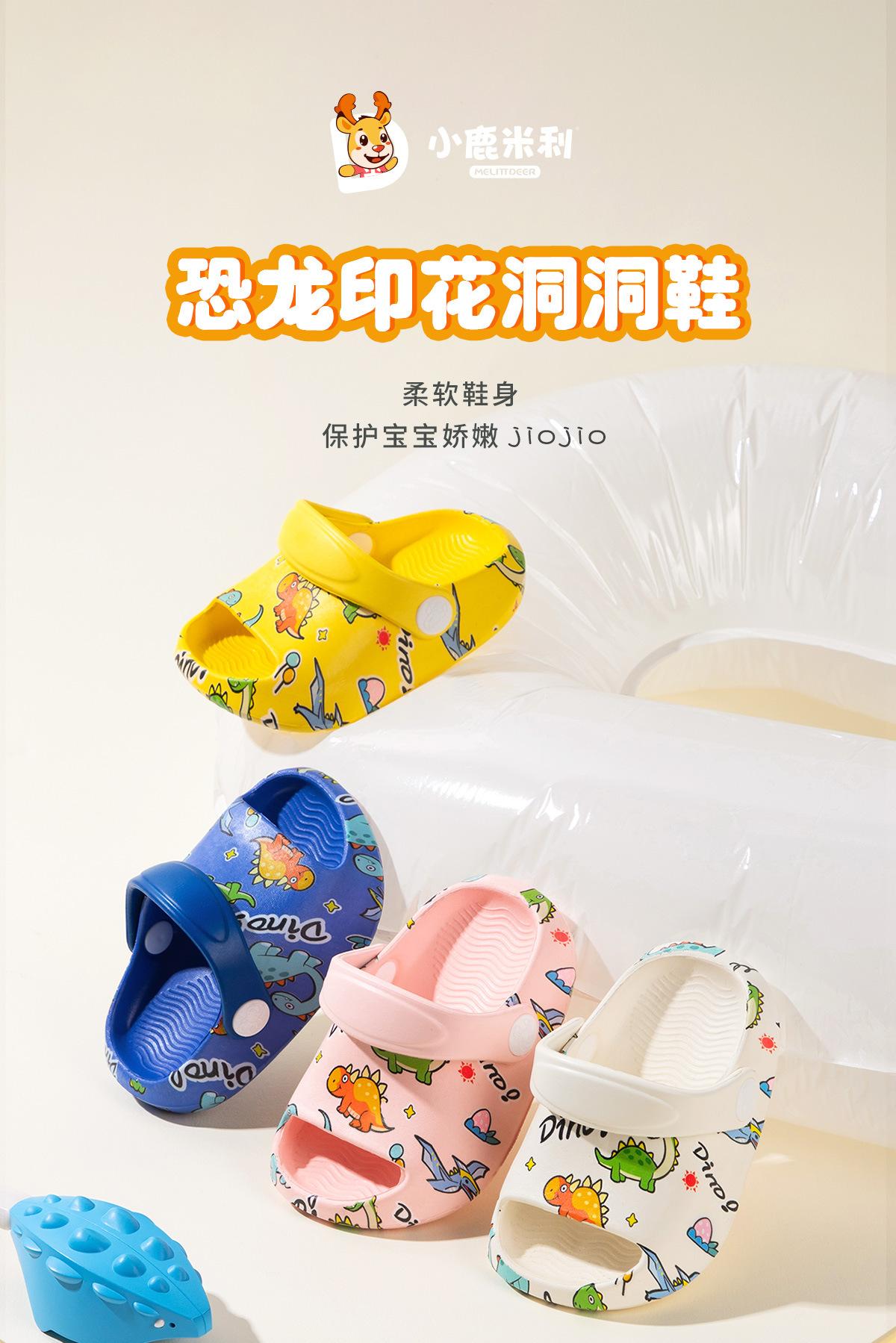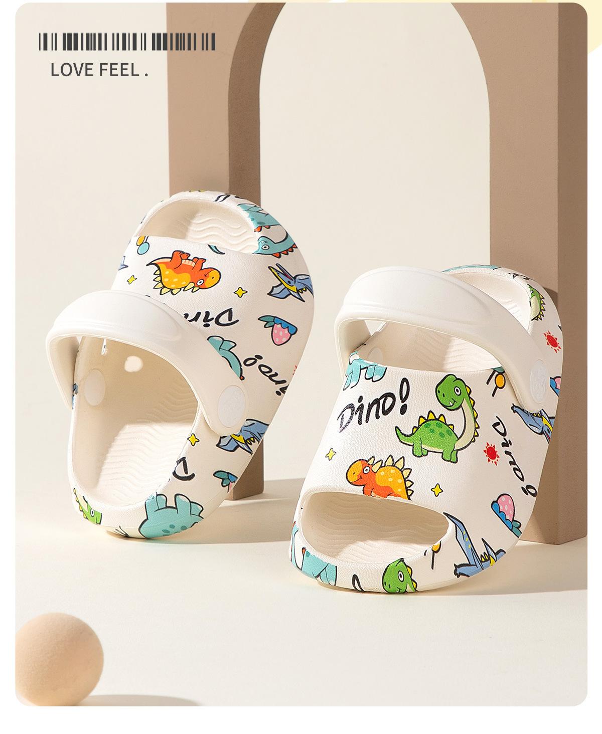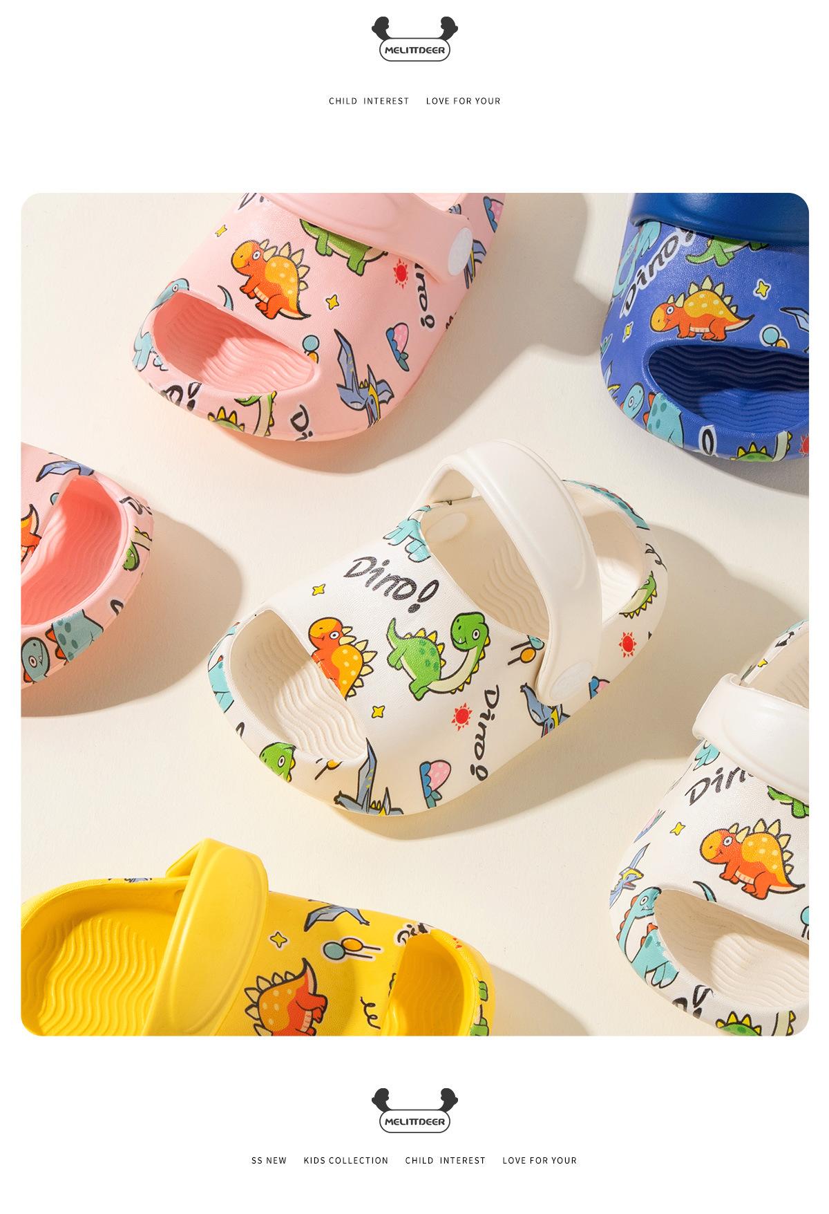 Sandalias para niños al por mayor, sandalias antideslizantes resistentes al desgaste con estampado de dinosaurios de dibujos animados para niños y niñas, zapatos con agujeros, zapatillas de verano