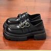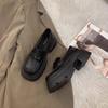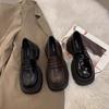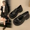 Zapatos de Cuero Pequeños de Estilo Universitario con Tacón Grueso y Suela Gruesa para Mujer 2025 Nuevos Otoño e Invierno Zapatos Slip-On para Mujer Mocasines Negros