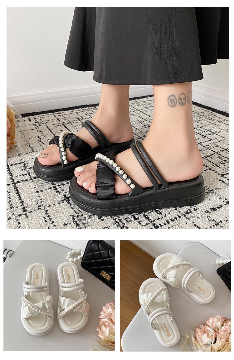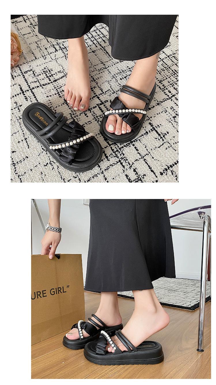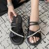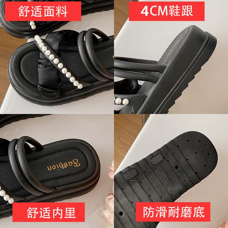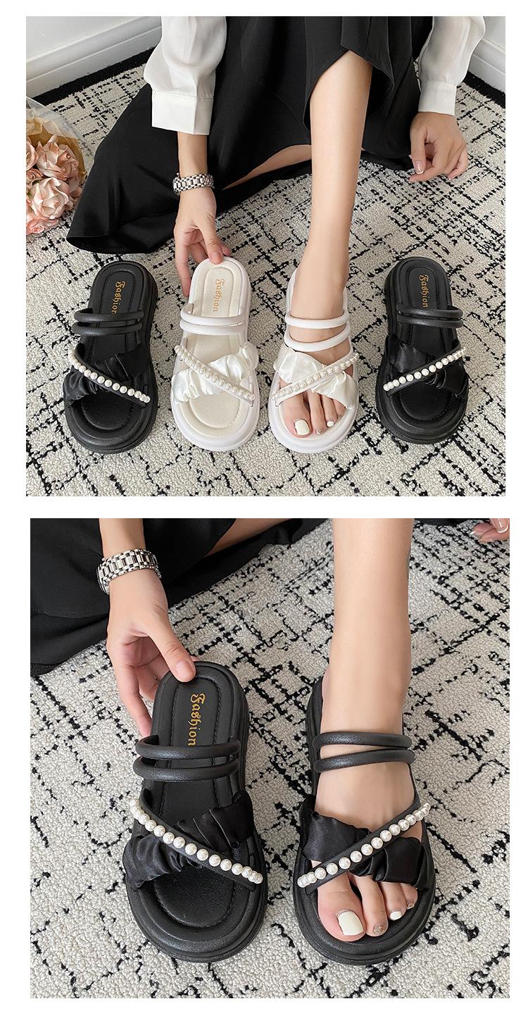 Sandalias de dos vías estilo hada para mujer 2024 nuevo verano exterior en línea rojo perla plataforma romanas zapatos de playa