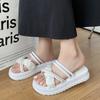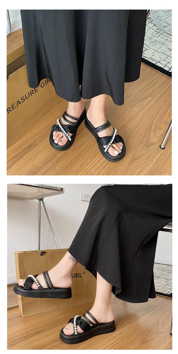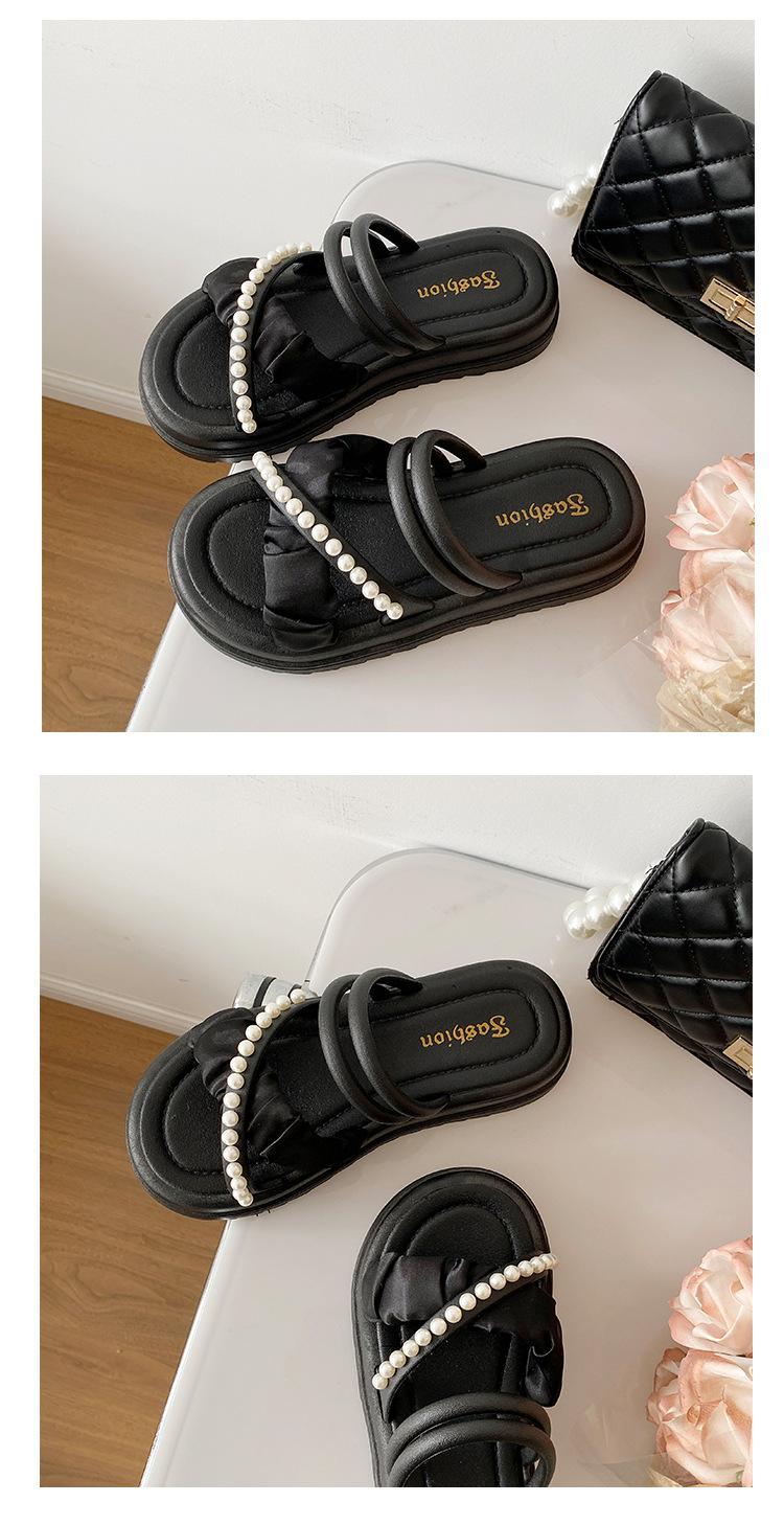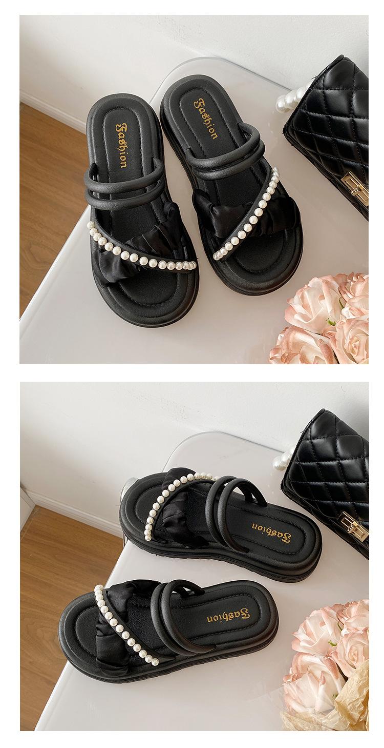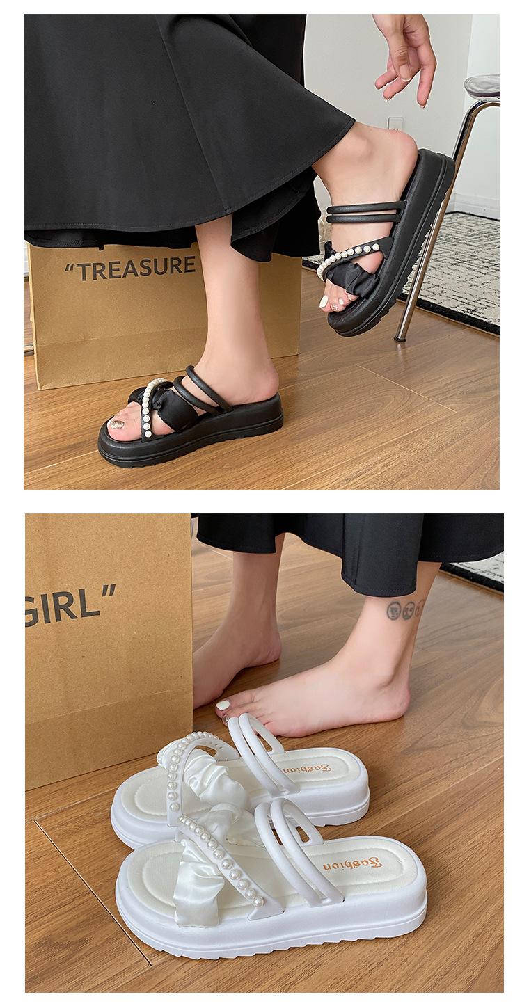 Sandalias de dos vías estilo hada para mujer 2024 nuevo verano exterior en línea rojo perla plataforma romanas zapatos de playa