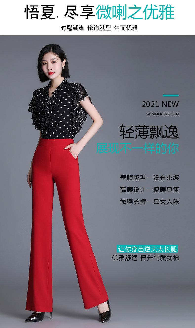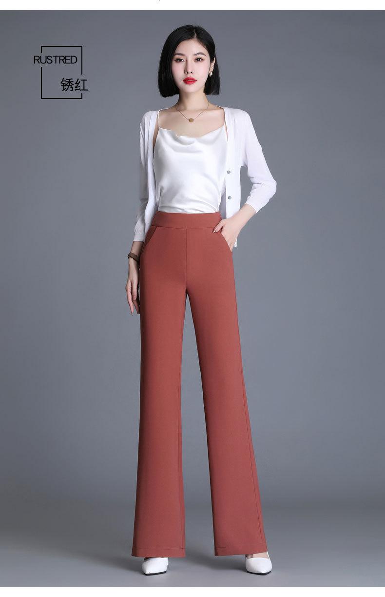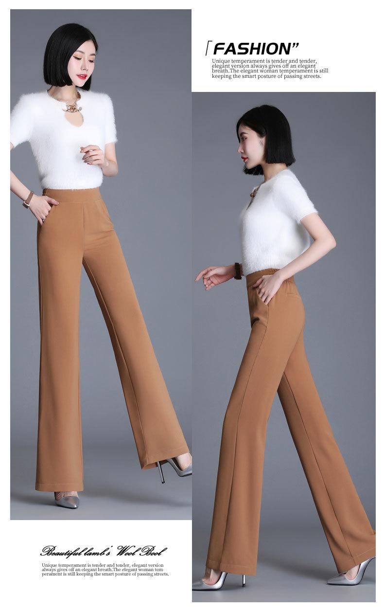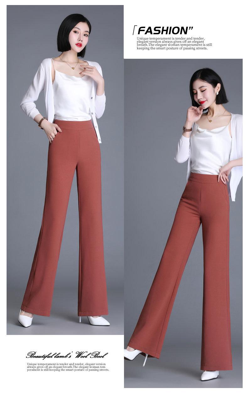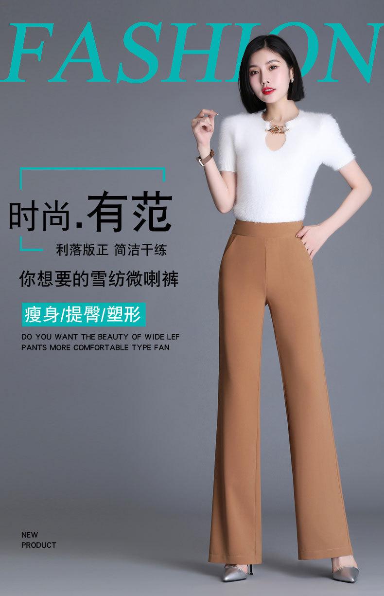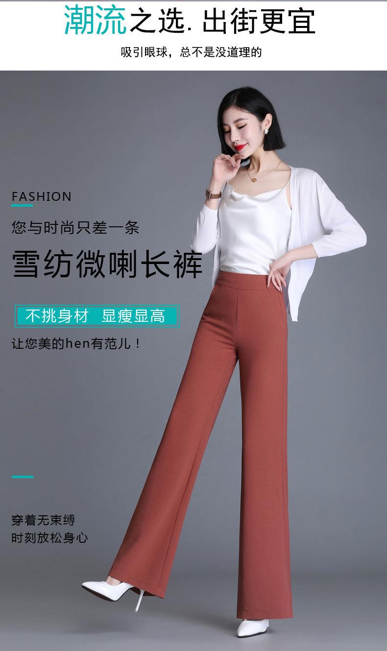 Pantalones acampanados de primavera para mujer, nuevos pantalones largos de gasa de cintura alta que combinan con todo, pantalones ajustados con cintura elástica de cinco colores para mujer.