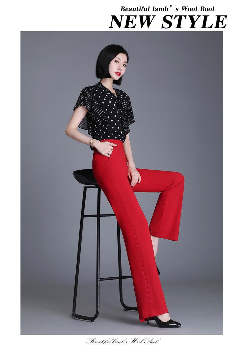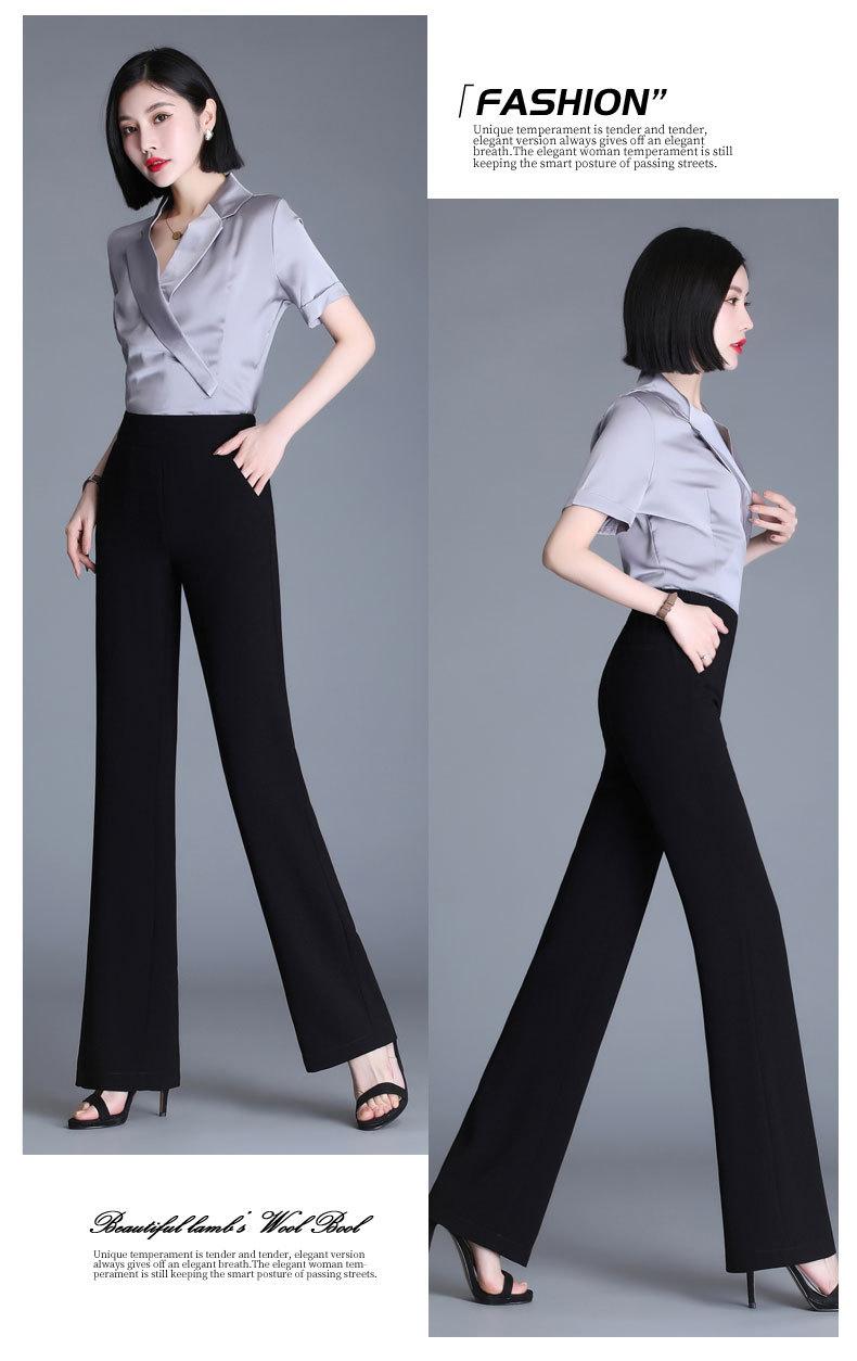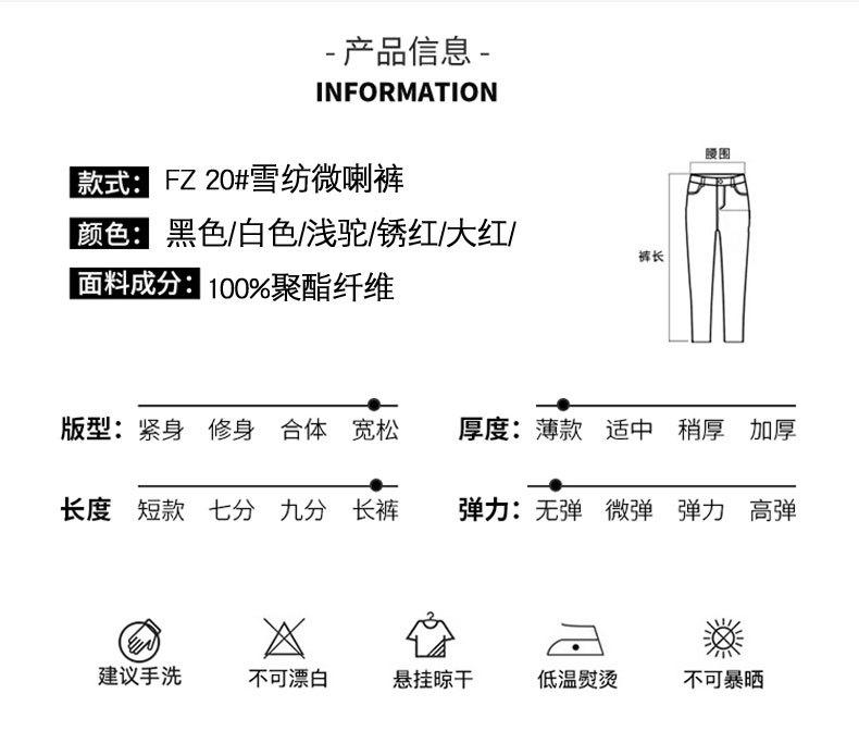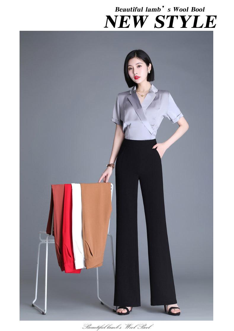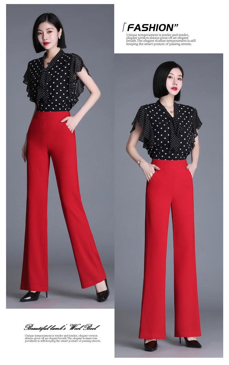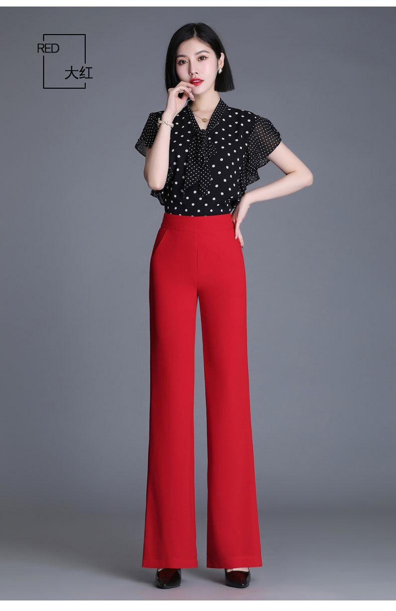 Pantalones acampanados de primavera para mujer, nuevos pantalones largos de gasa de cintura alta que combinan con todo, pantalones ajustados con cintura elástica de cinco colores para mujer.