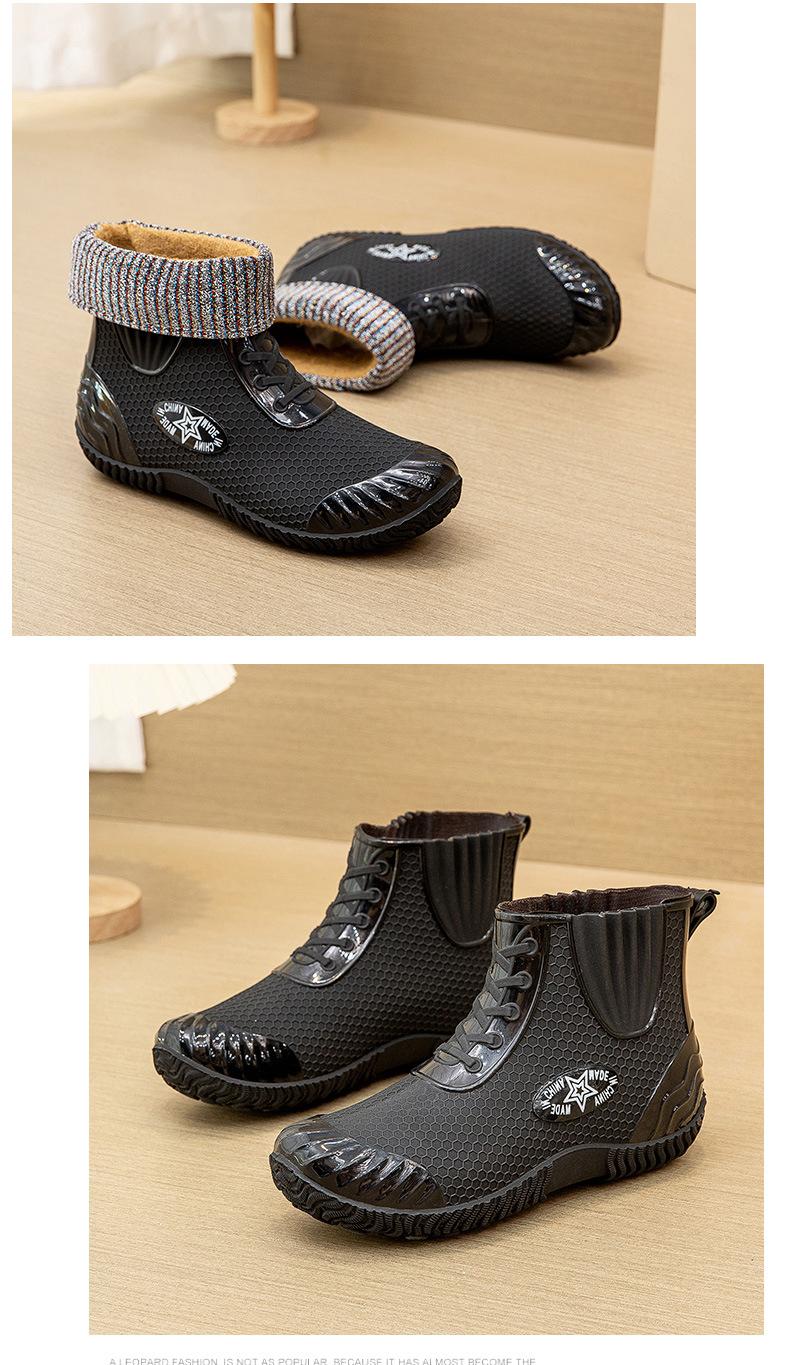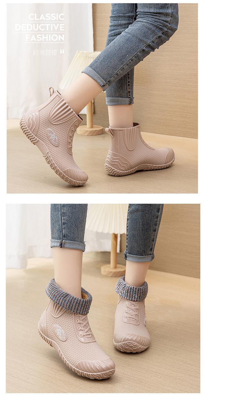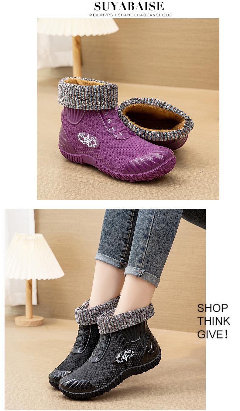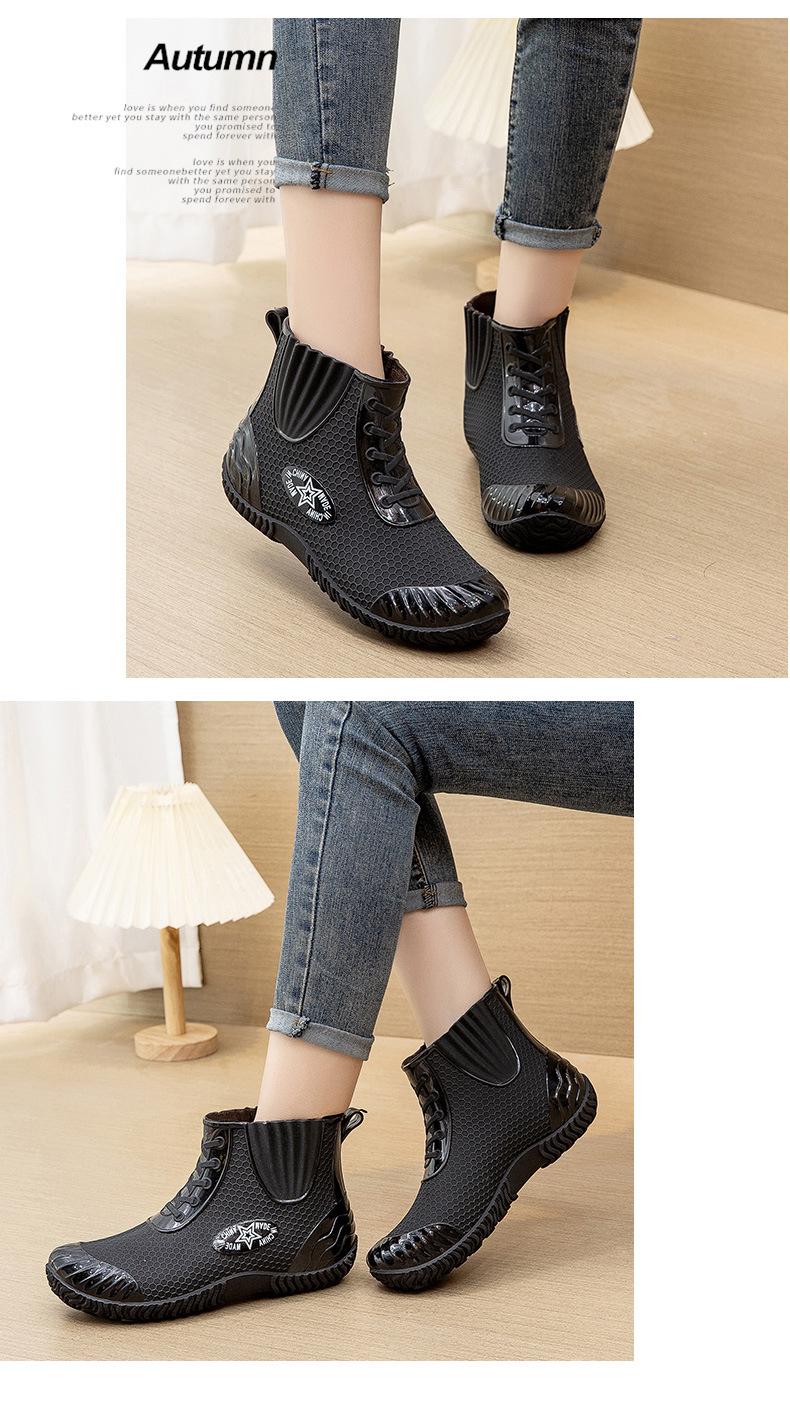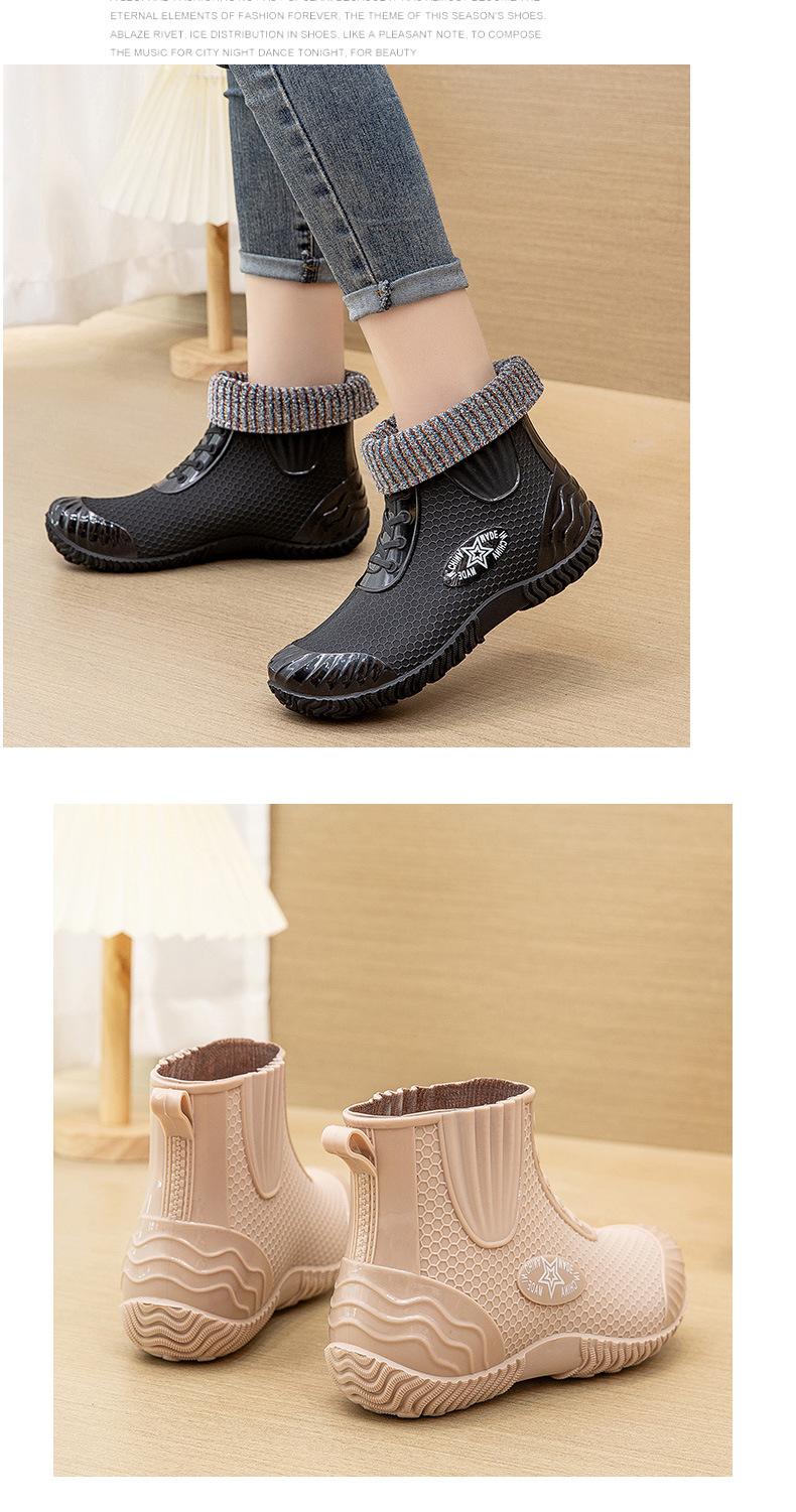 Botas de lluvia impermeables de tubo corto para primavera y verano, botas de lluvia para mujer, botas de agua cálidas con forro polar suave para lavado de autos, botas de lluvia ligeras de trabajo para mujer