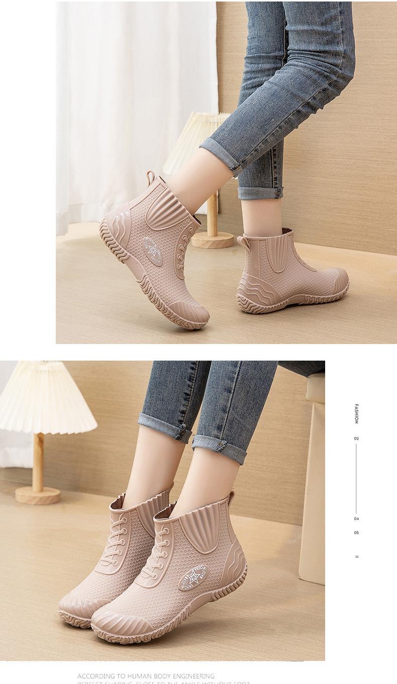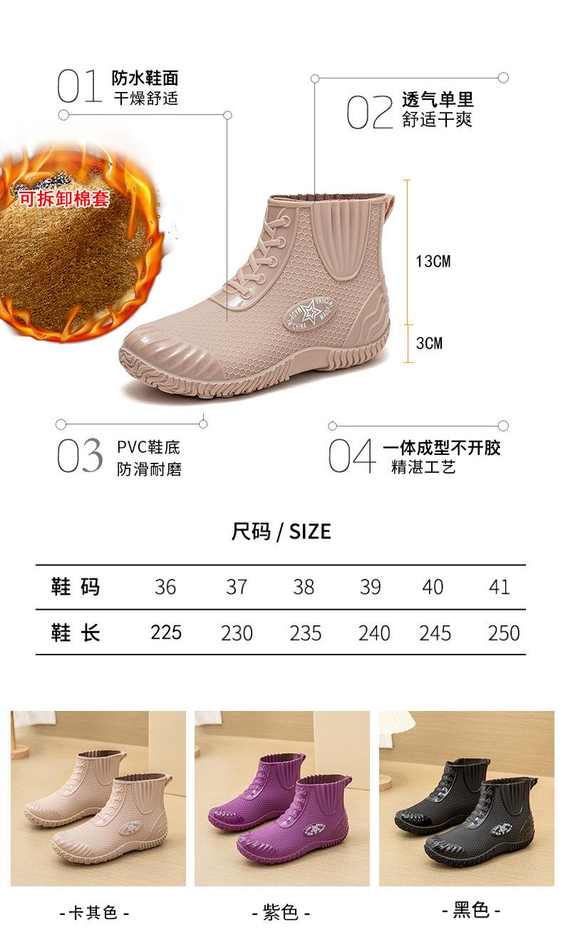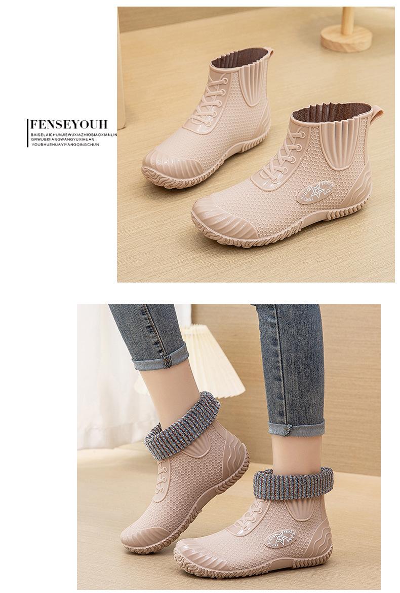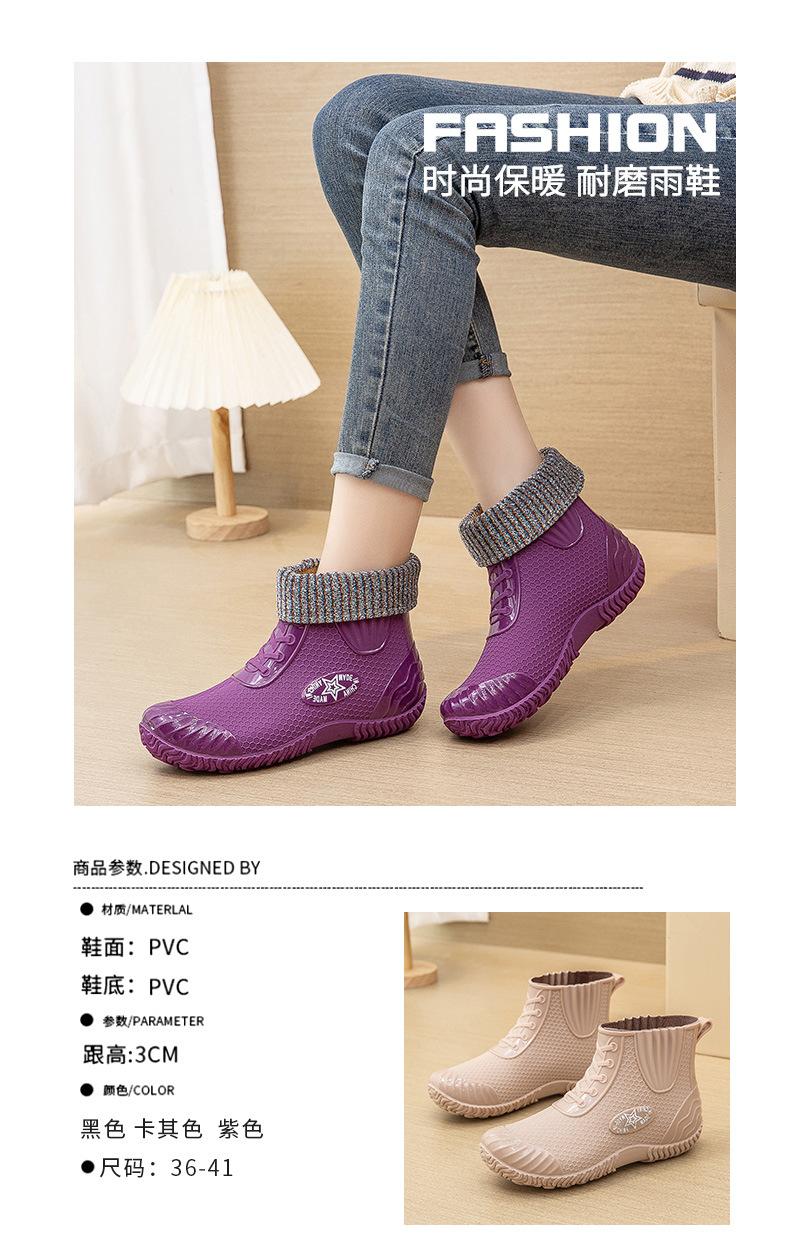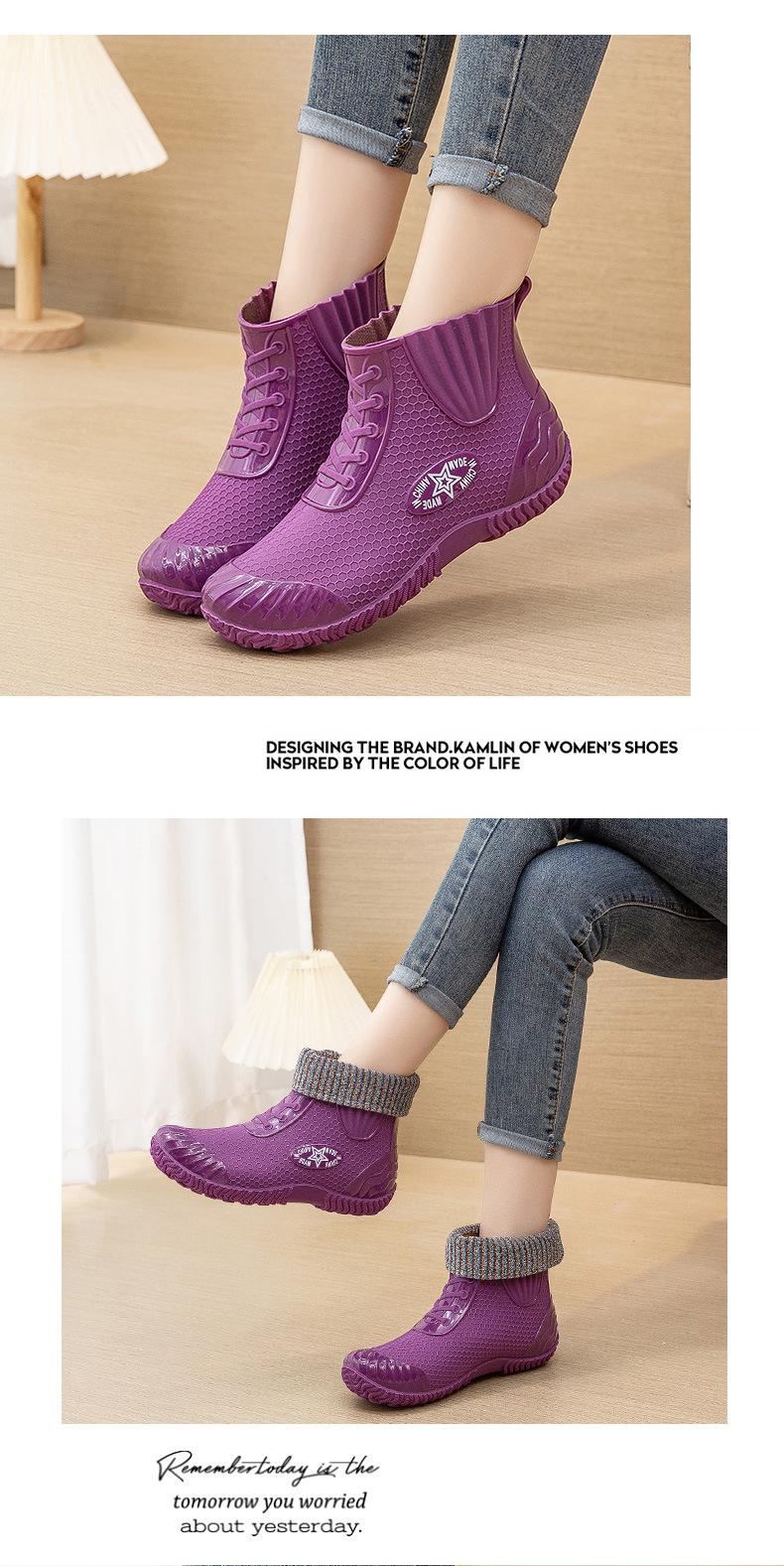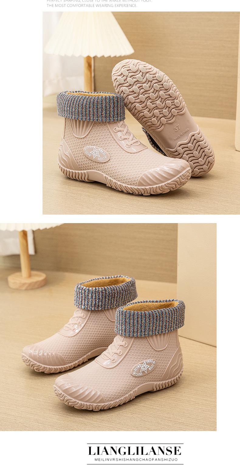 Botas de lluvia impermeables de tubo corto para primavera y verano, botas de lluvia para mujer, botas de agua cálidas con forro polar suave para lavado de autos, botas de lluvia ligeras de trabajo para mujer
