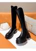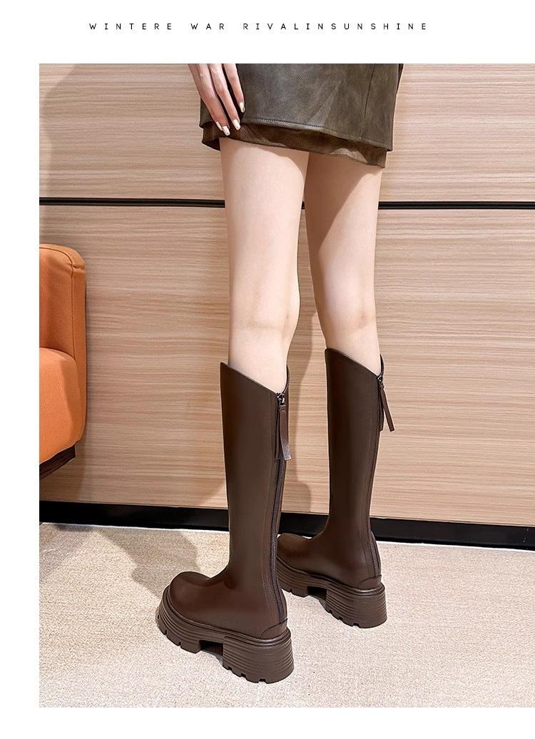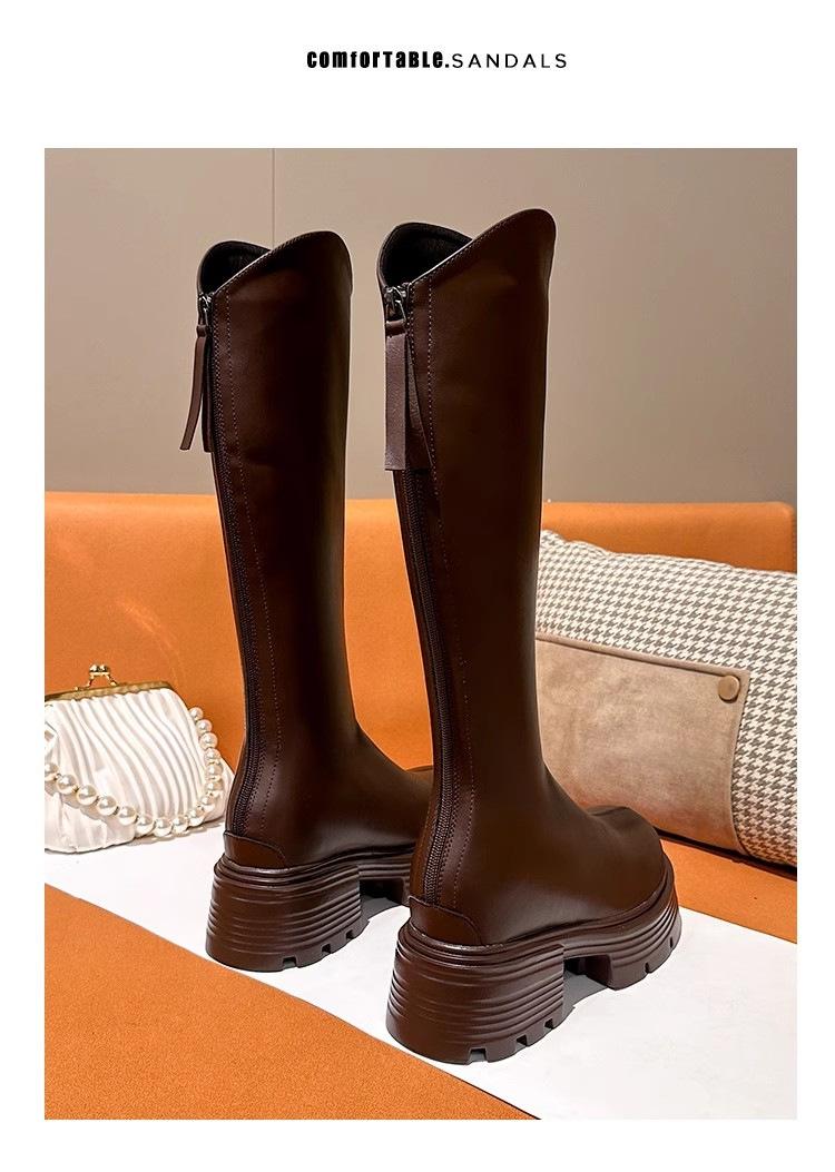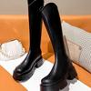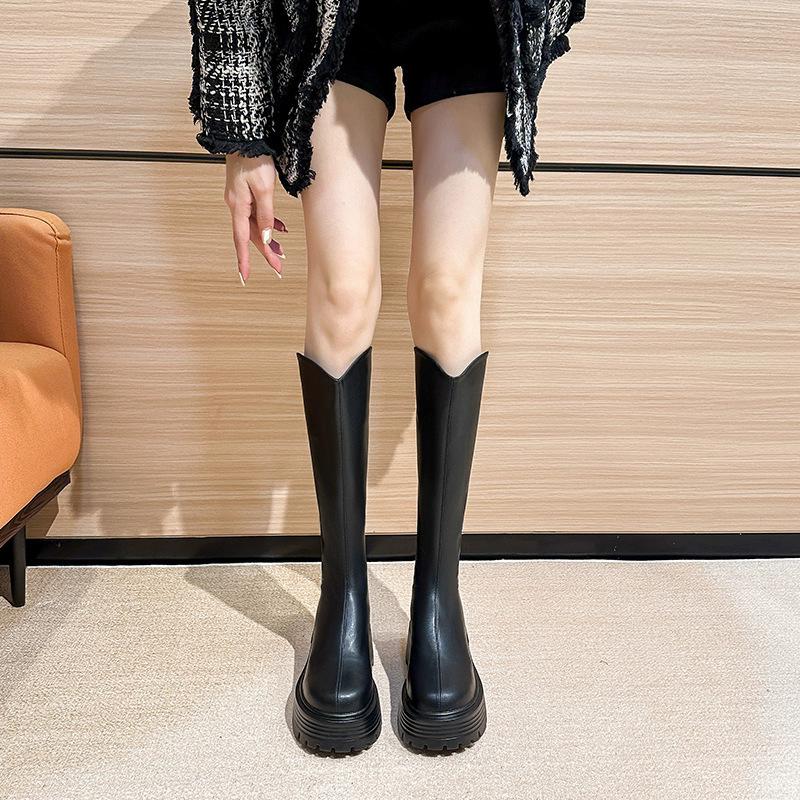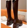 Botas de tacón grueso y pequeño con boca en V para mujer, otoño e invierno 2024, nuevas, pero hasta la rodilla, botas de caballero, botas de tacón grueso para mujer