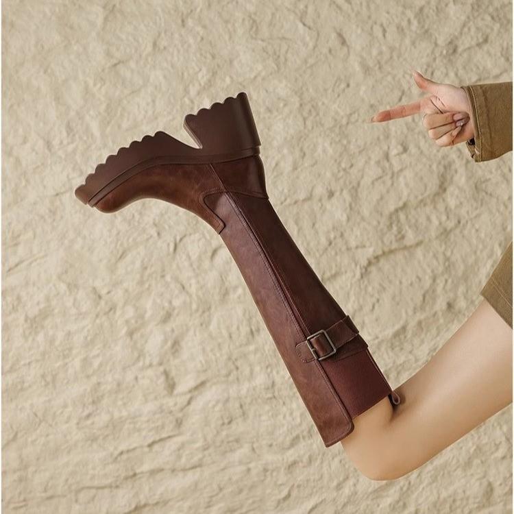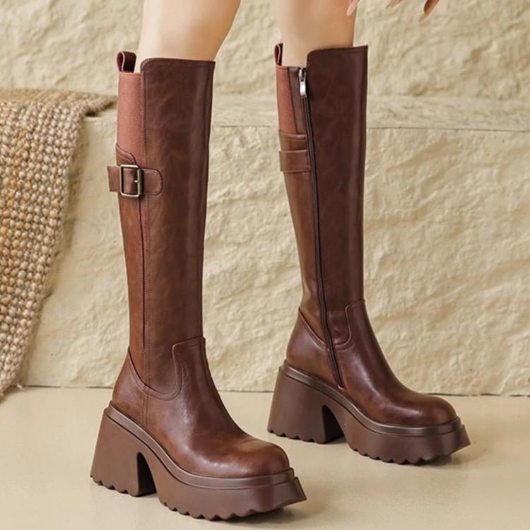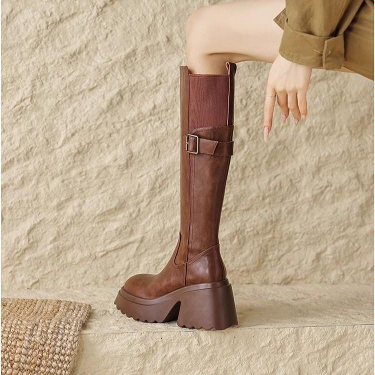 Botas Altas de Tacón Alto de Cuero Suave con Suela Gruesa para Mujer Nuevo Otoño Invierno 2024 Botas de Caballero para Mujer Botas Largas hasta la Rodilla