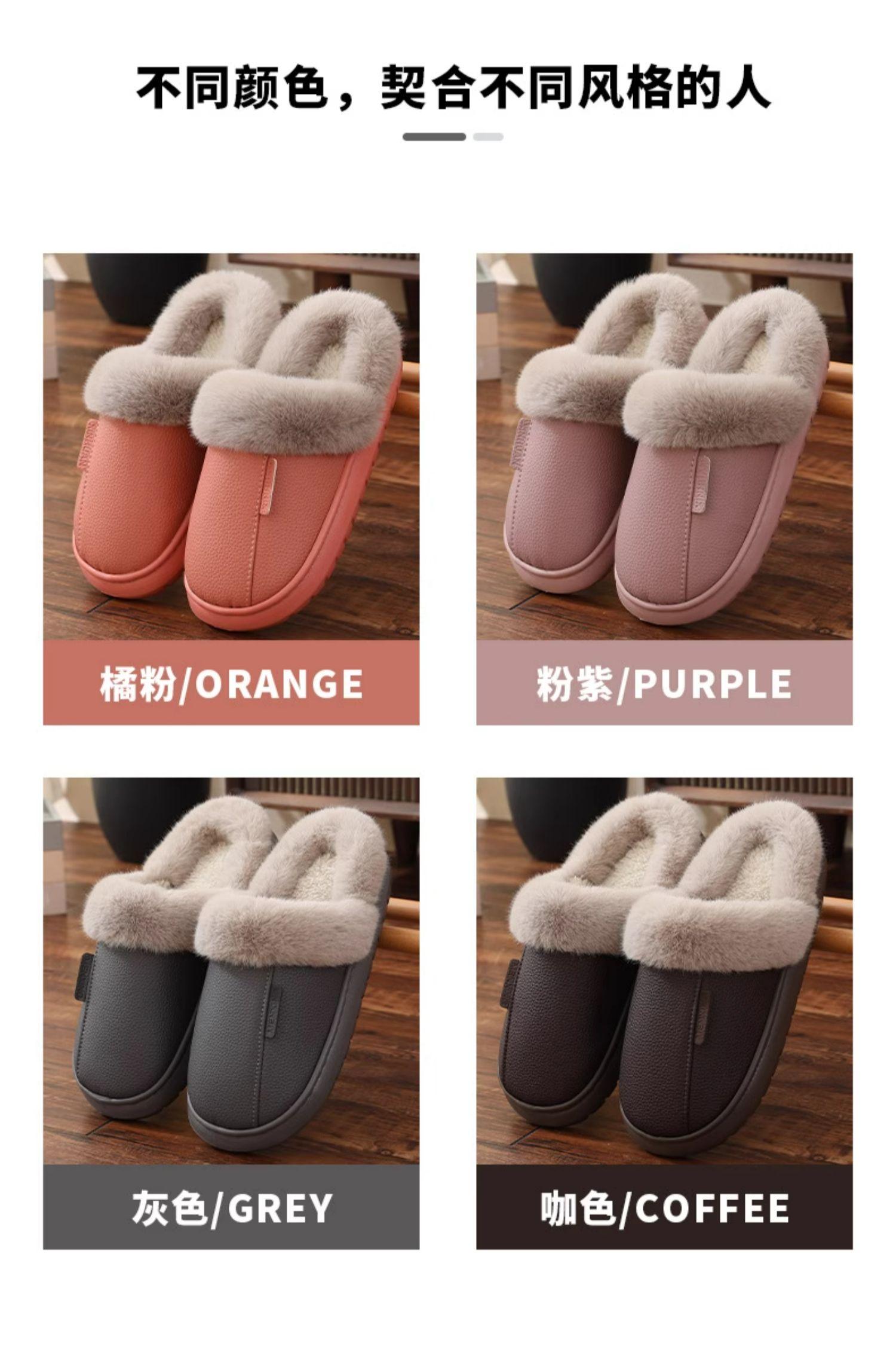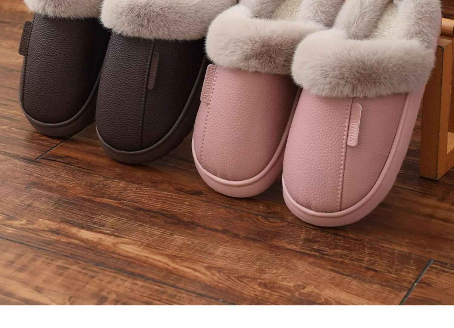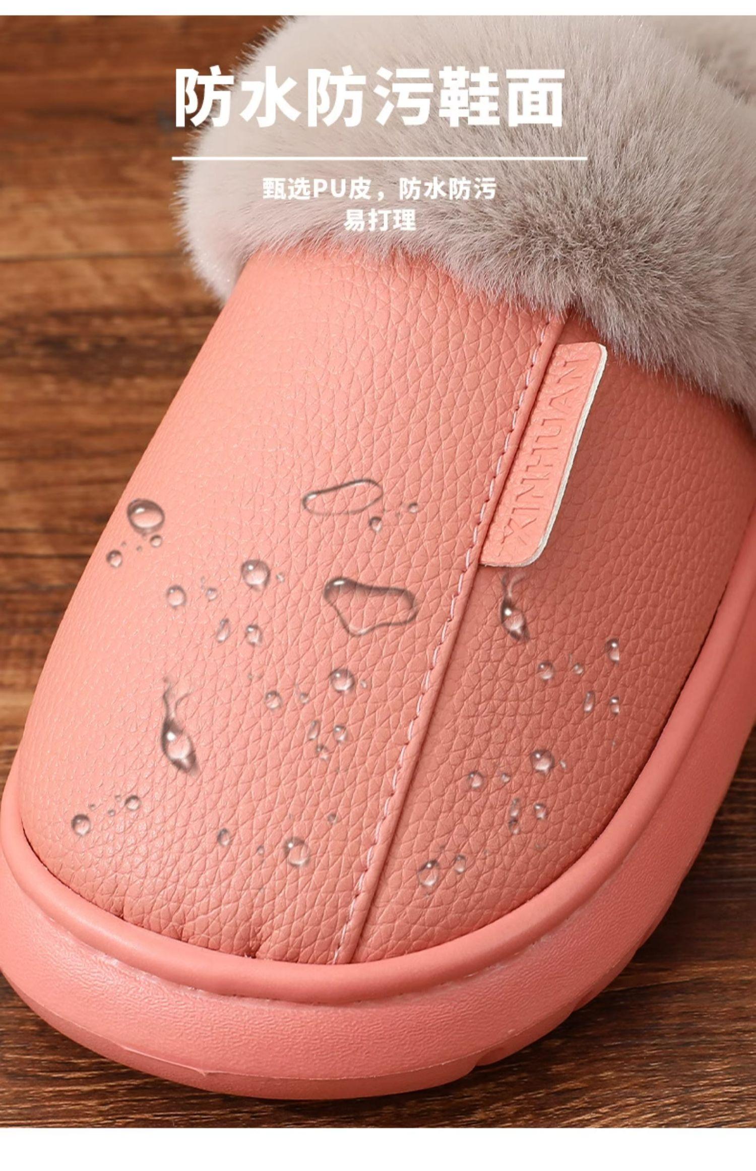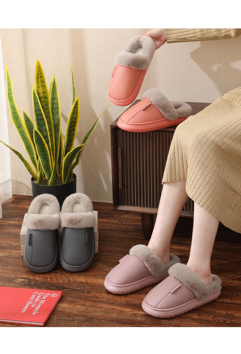2025 Otoño e Invierno Nuevas Pantuflas de Algodón Impermeables de Cuero Felpa Cálidas para Interior Hogar con Forro Polar Pantuflas para Pareja para Hombre y Mujer
