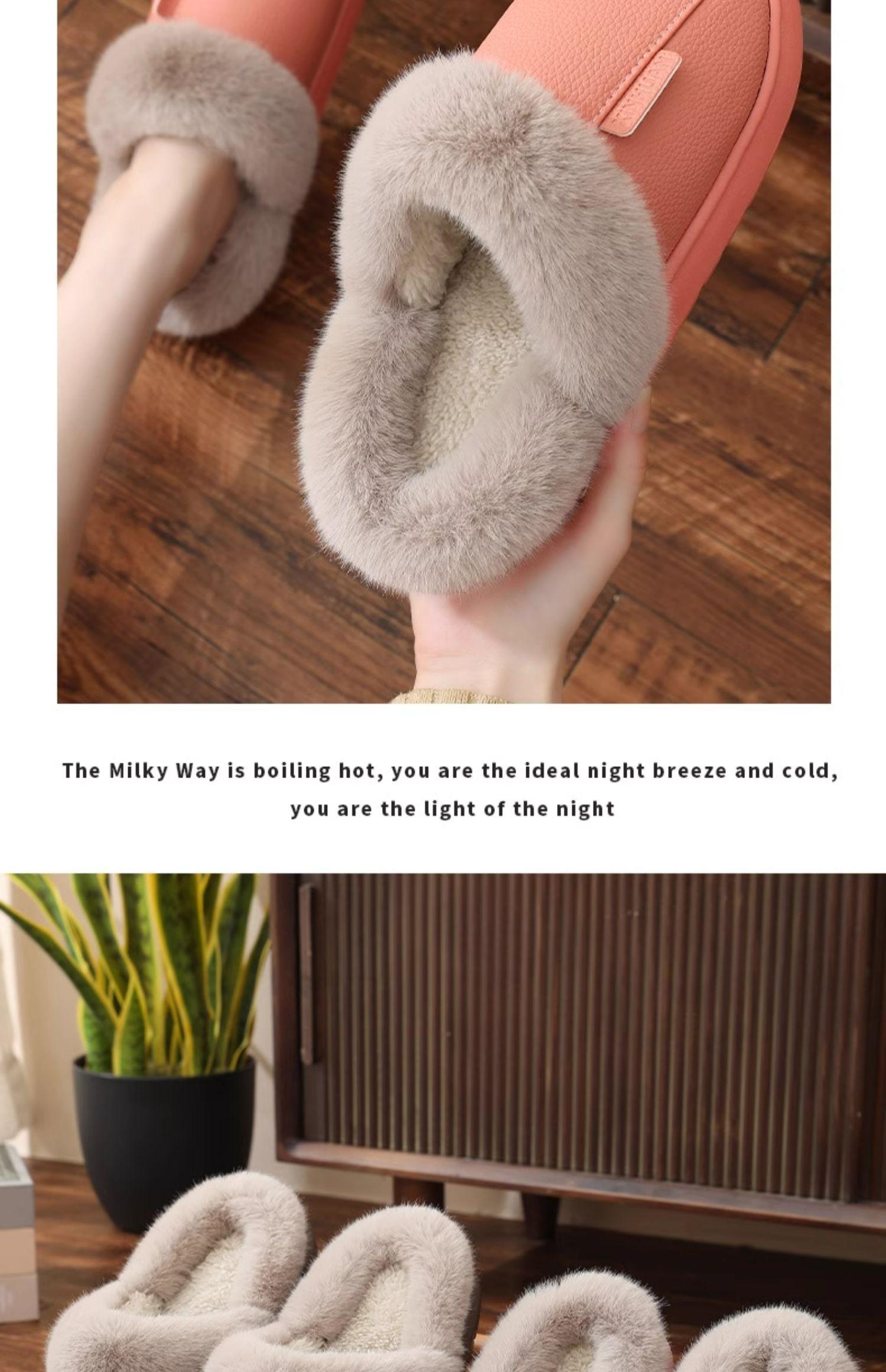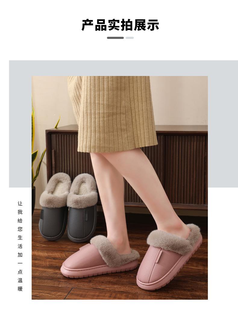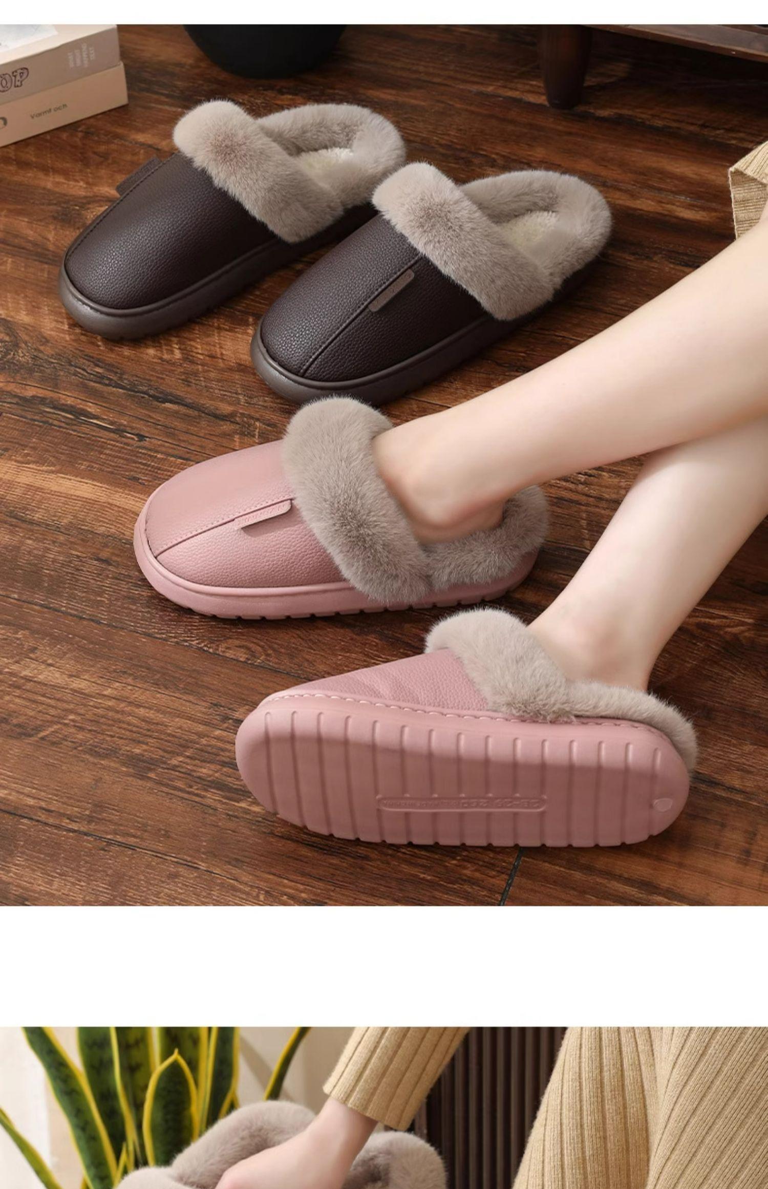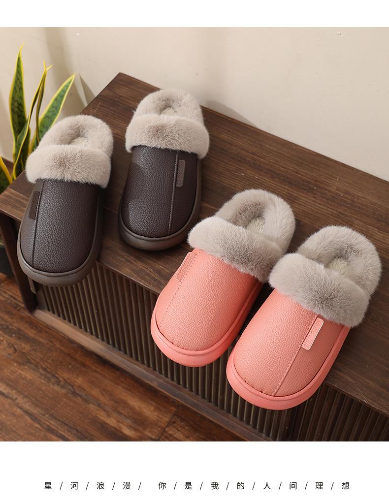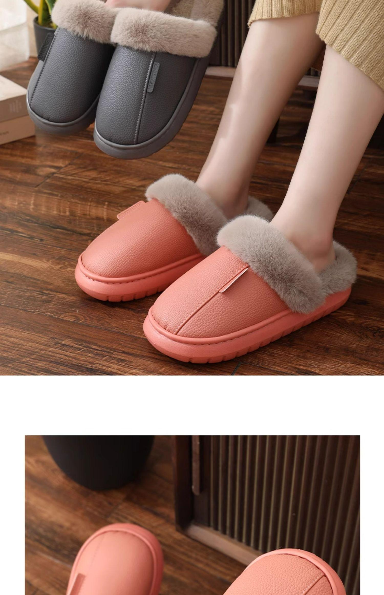 2025 Otoño e Invierno Nuevas Pantuflas de Algodón Impermeables de Cuero Felpa Cálidas para Interior Hogar con Forro Polar Pantuflas para Pareja para Hombre y Mujer