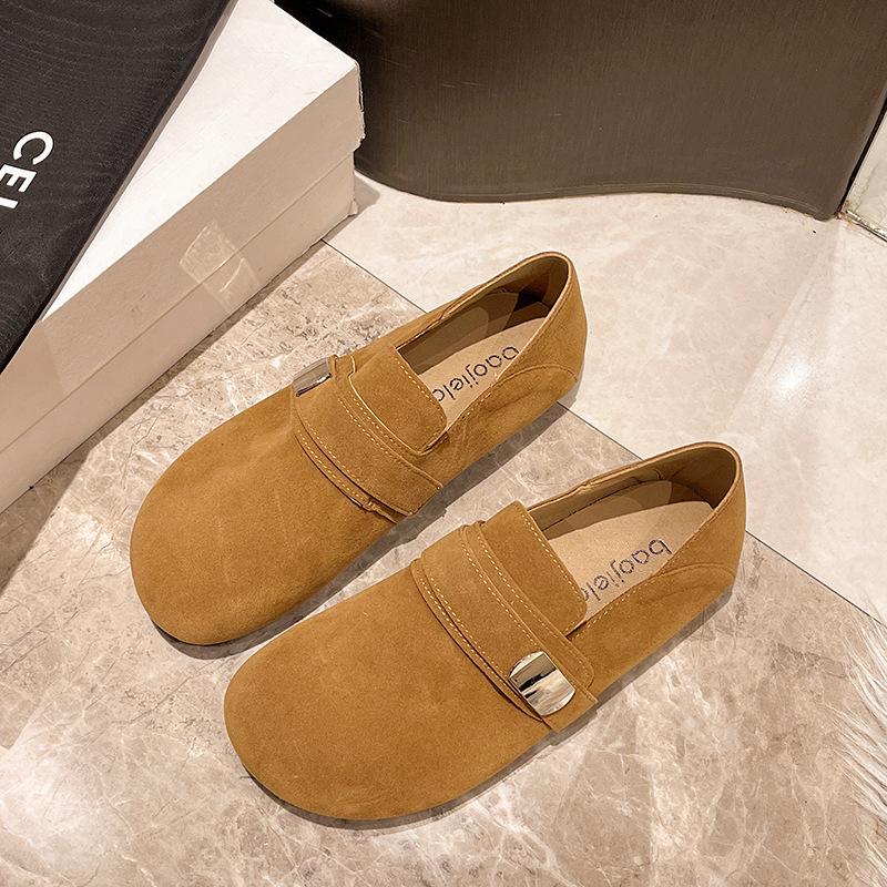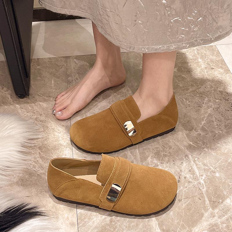 Zapatos de Mujer Retro de Piel Suave de Punta Redonda 2024 Nuevos Suela Blanda Pie Ancho Zapatos Planos Cómodos Piel Suave