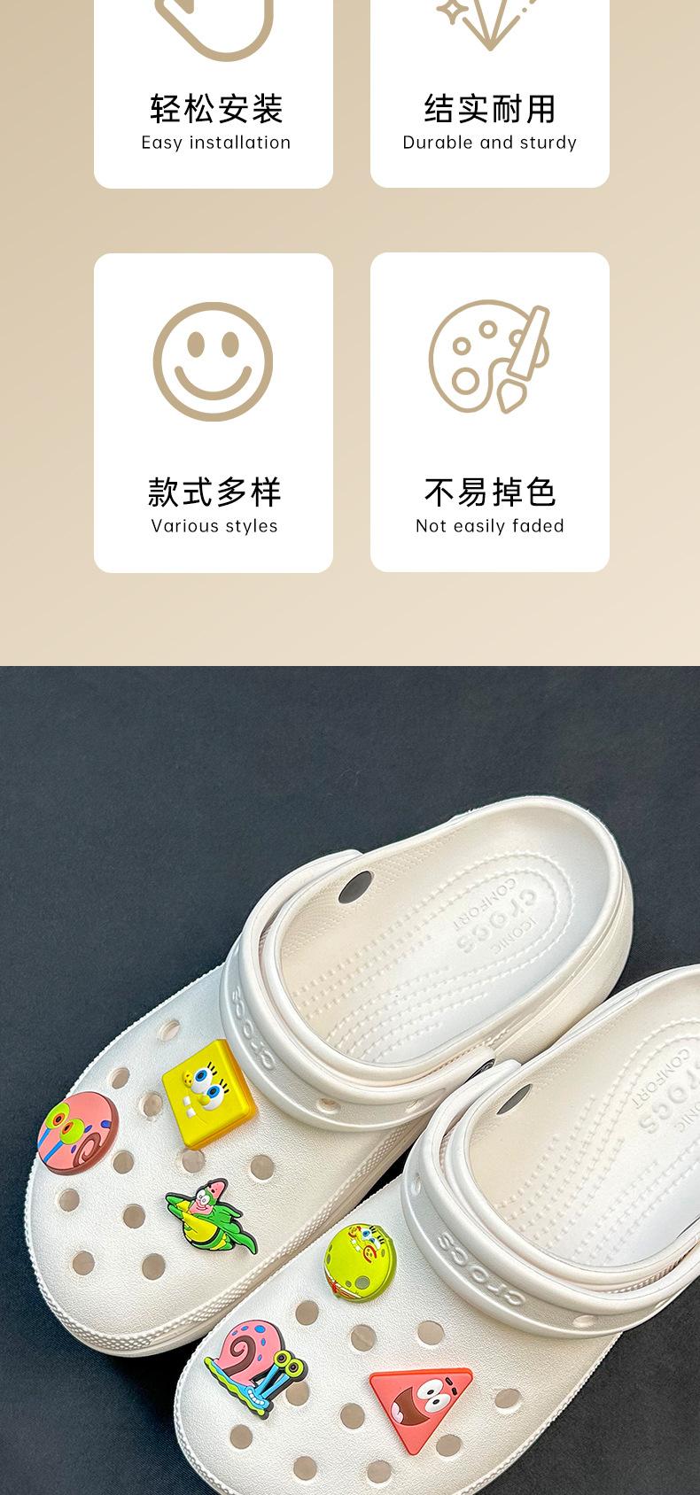 [serie de bob esponja] zapatos con agujeros hebilla de zapato desmontable zapatillas diy zapatos accesorios de flores verano dibujos animados en stock