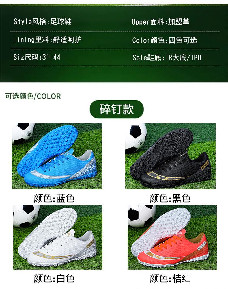 Zapatillas de fútbol ligeras de talla grande transfronterizas, zapatillas de entrenamiento de competición para jóvenes y estudiantes de caña baja, zapatillas grandes para niños con clavos rotos largos
