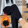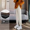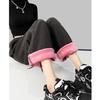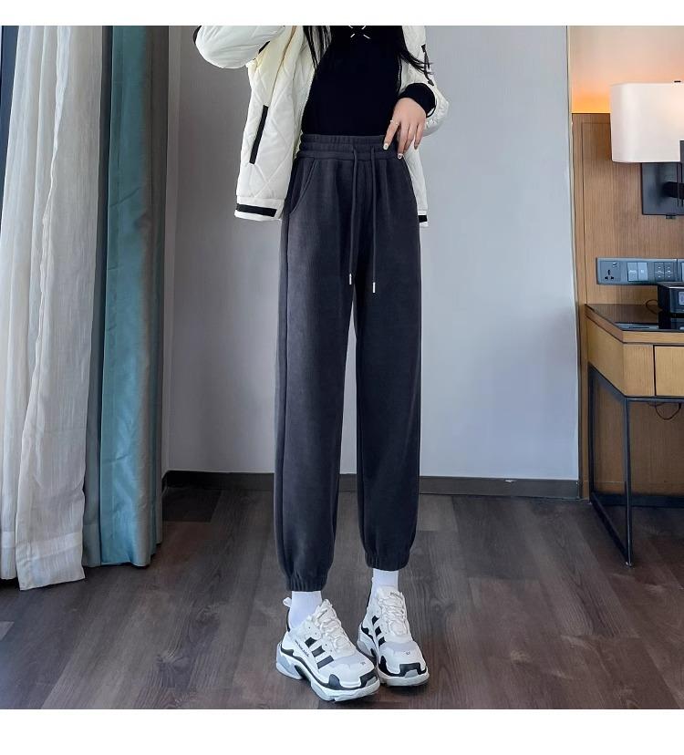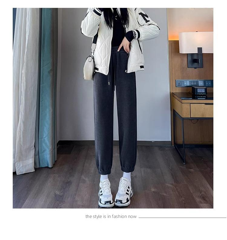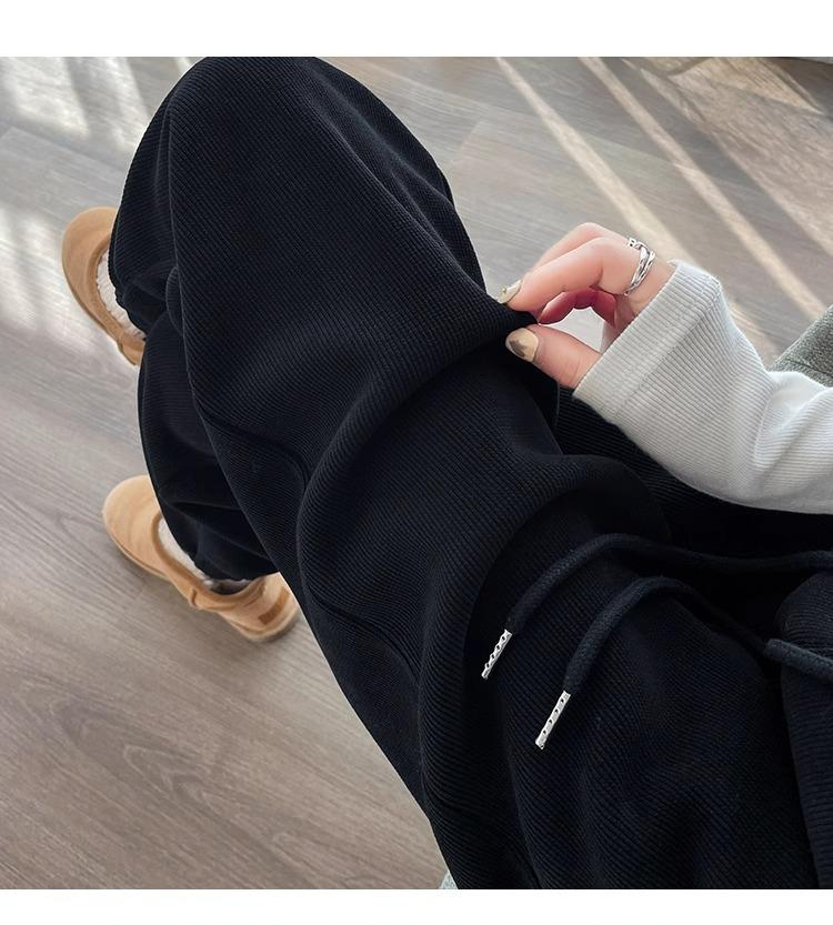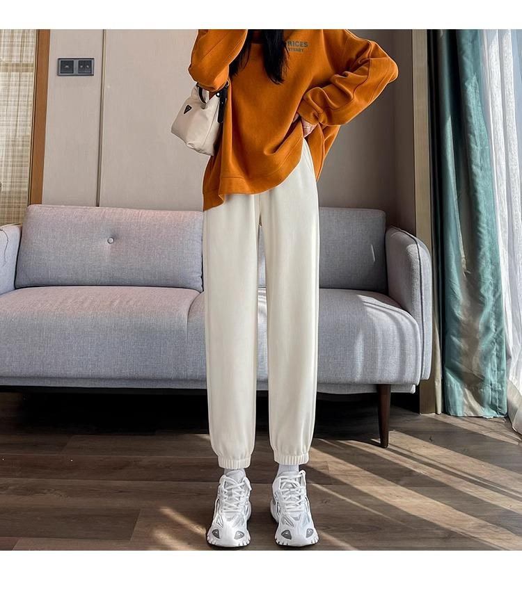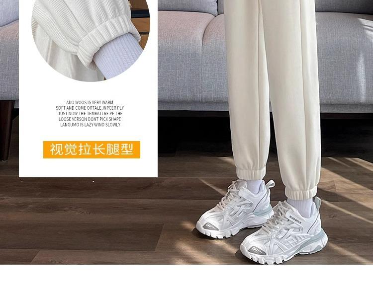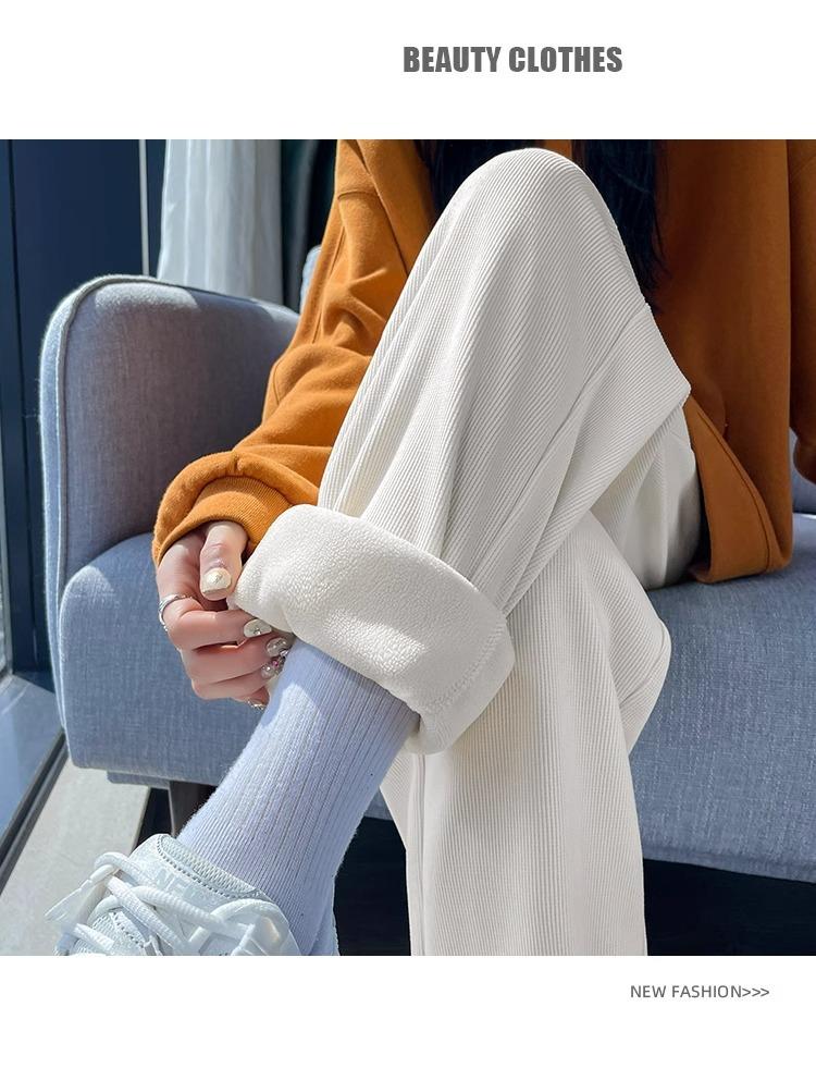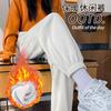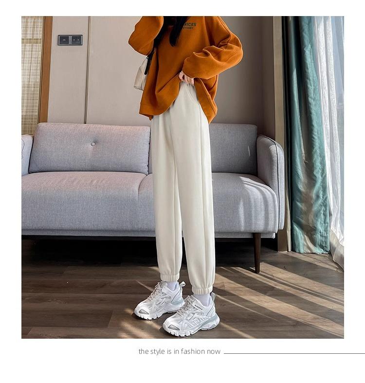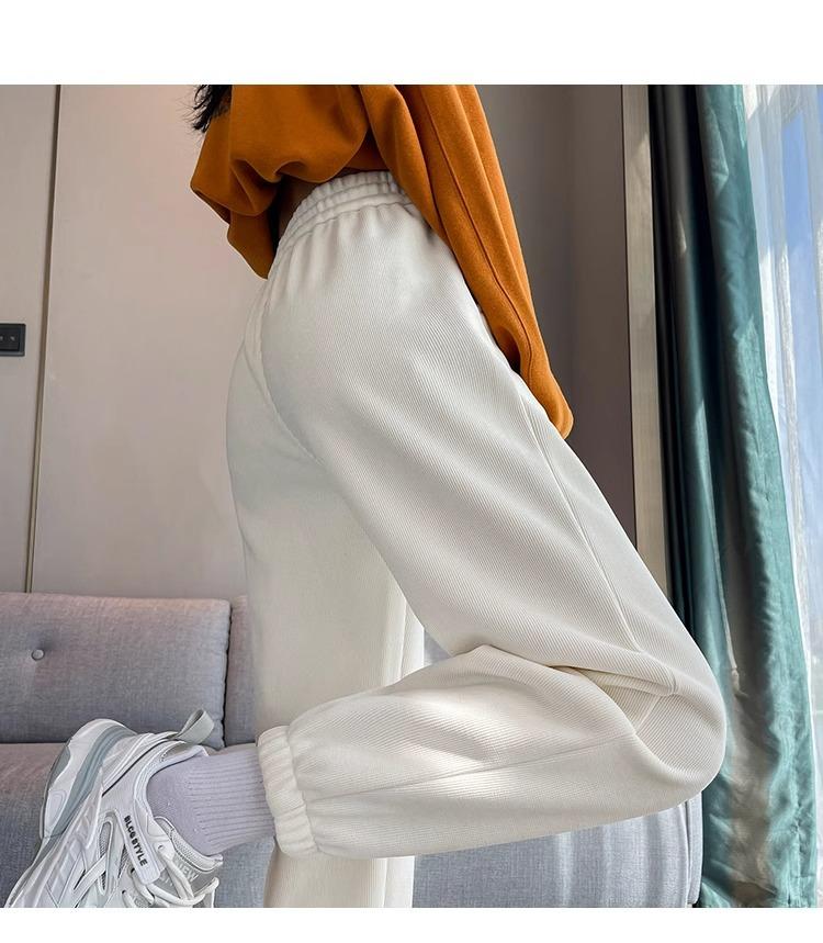 Pantalón Deportivo 2025 para Mujer Otoño/Invierno Pequeño Holgado Blanco Grueso Casual Recto Corto Pantalón de Chándal con Forro Polar en la Pierna