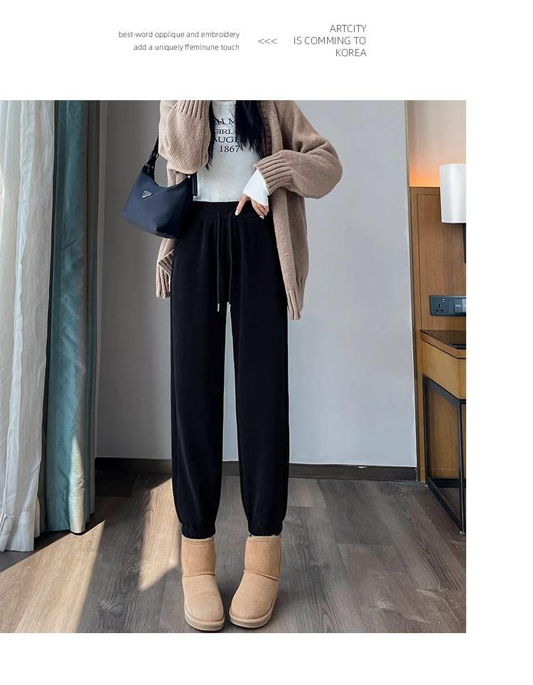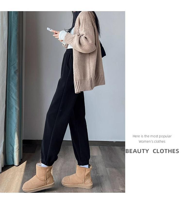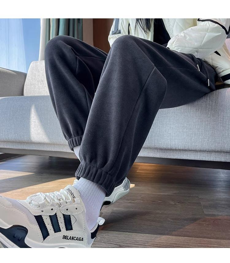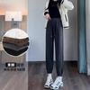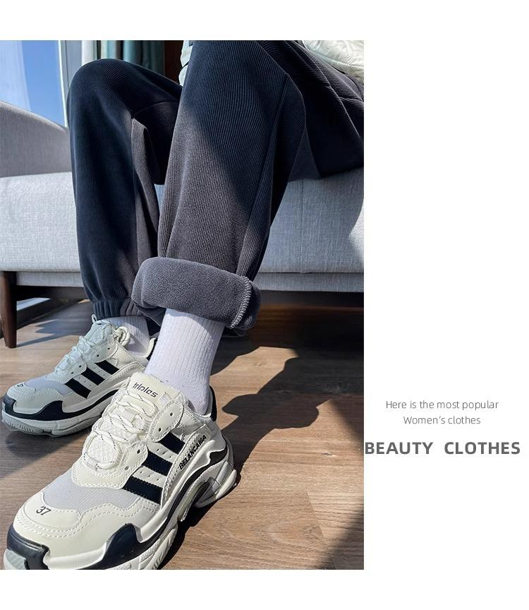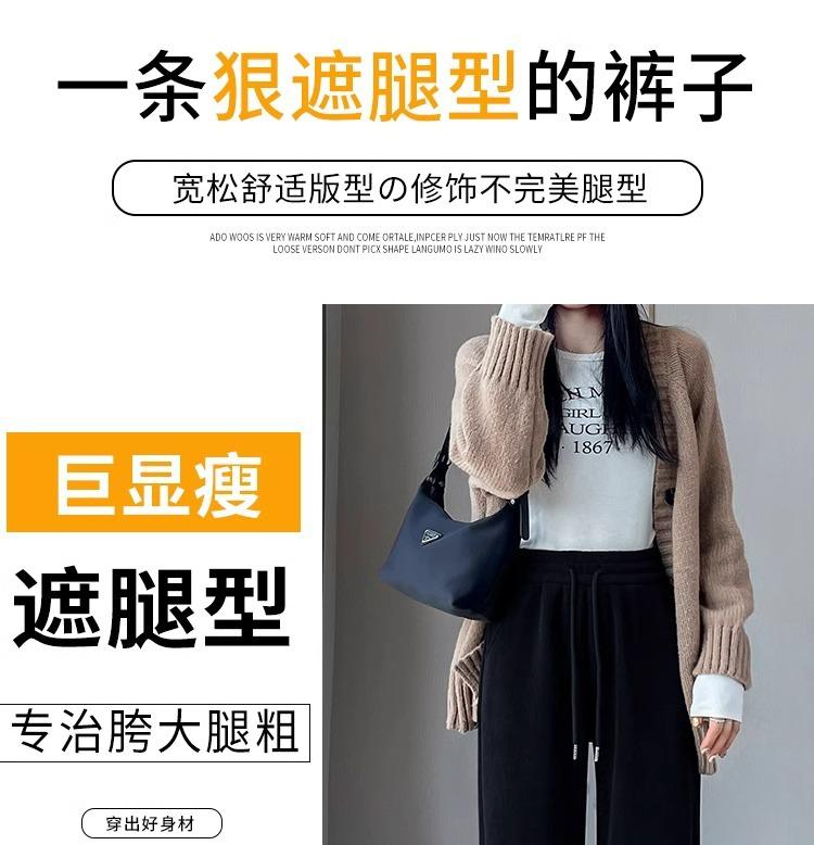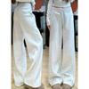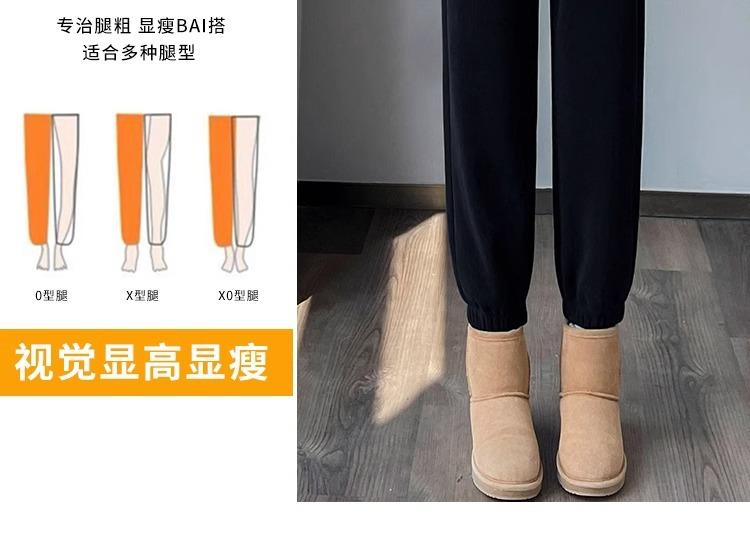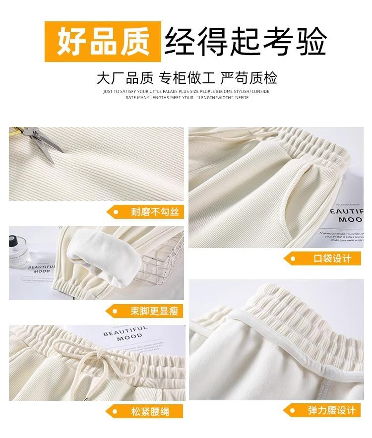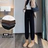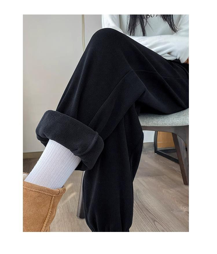 Pantalón Deportivo 2025 para Mujer Otoño/Invierno Pequeño Holgado Blanco Grueso Casual Recto Corto Pantalón de Chándal con Forro Polar en la Pierna