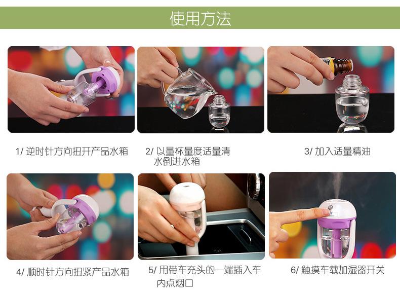 Solo necesita equipar su automóvil con un humidificador de aromaterapia para automóvil, y la suave humidificación por niebla de agua combinada con diferentes fragancias de aceites esenciales puede brindar a su automóvil un aliento refrescante y agradable similar al original, permitiendo que la comodidad, la relajación, la seguridad y la belleza acompañen su viaje en todo momento.