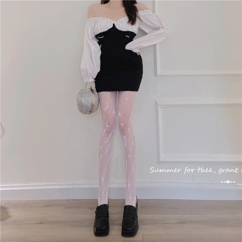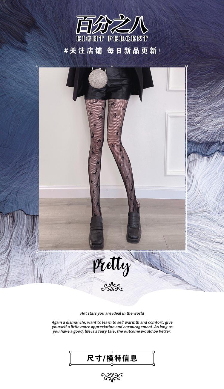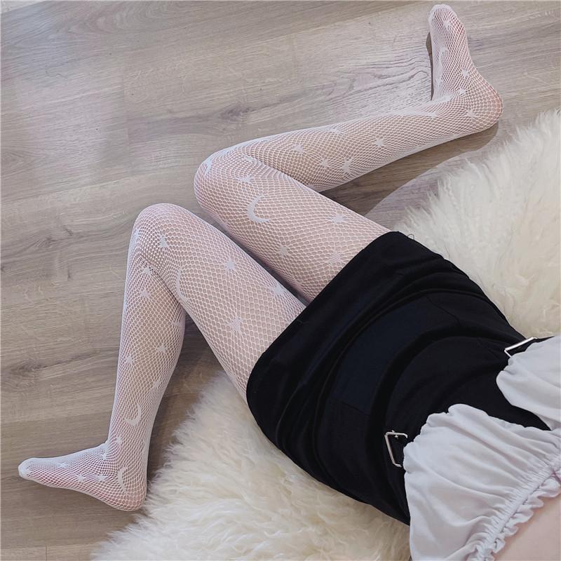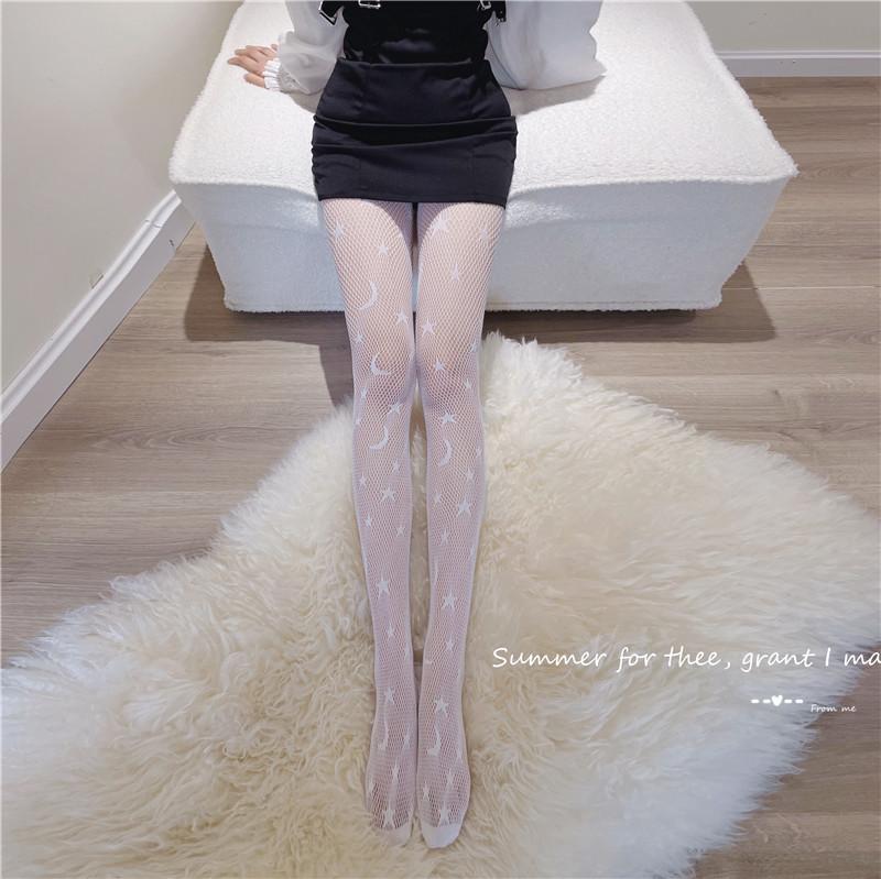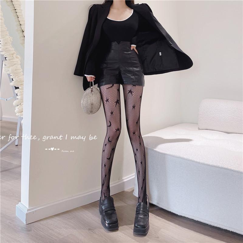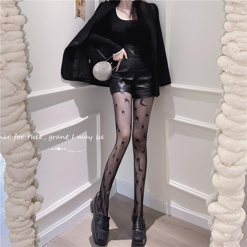 Calcetines de red sexys con diseño de estrella y luna hueca para mujer, 2022, nuevos, ajustados, adelgazantes, de pierna larga, de seda negra, a la moda.