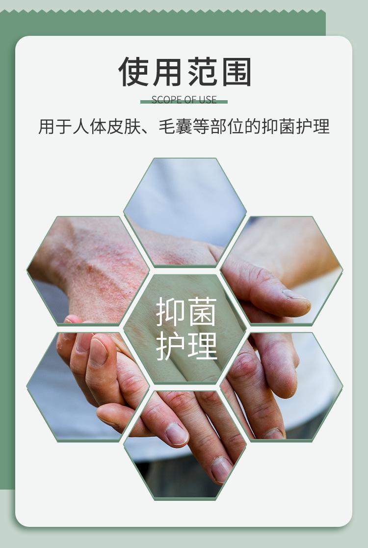 Used for antibacterial care on human skin, hair follicles and other parts, it can inhibit the growth and repro...
