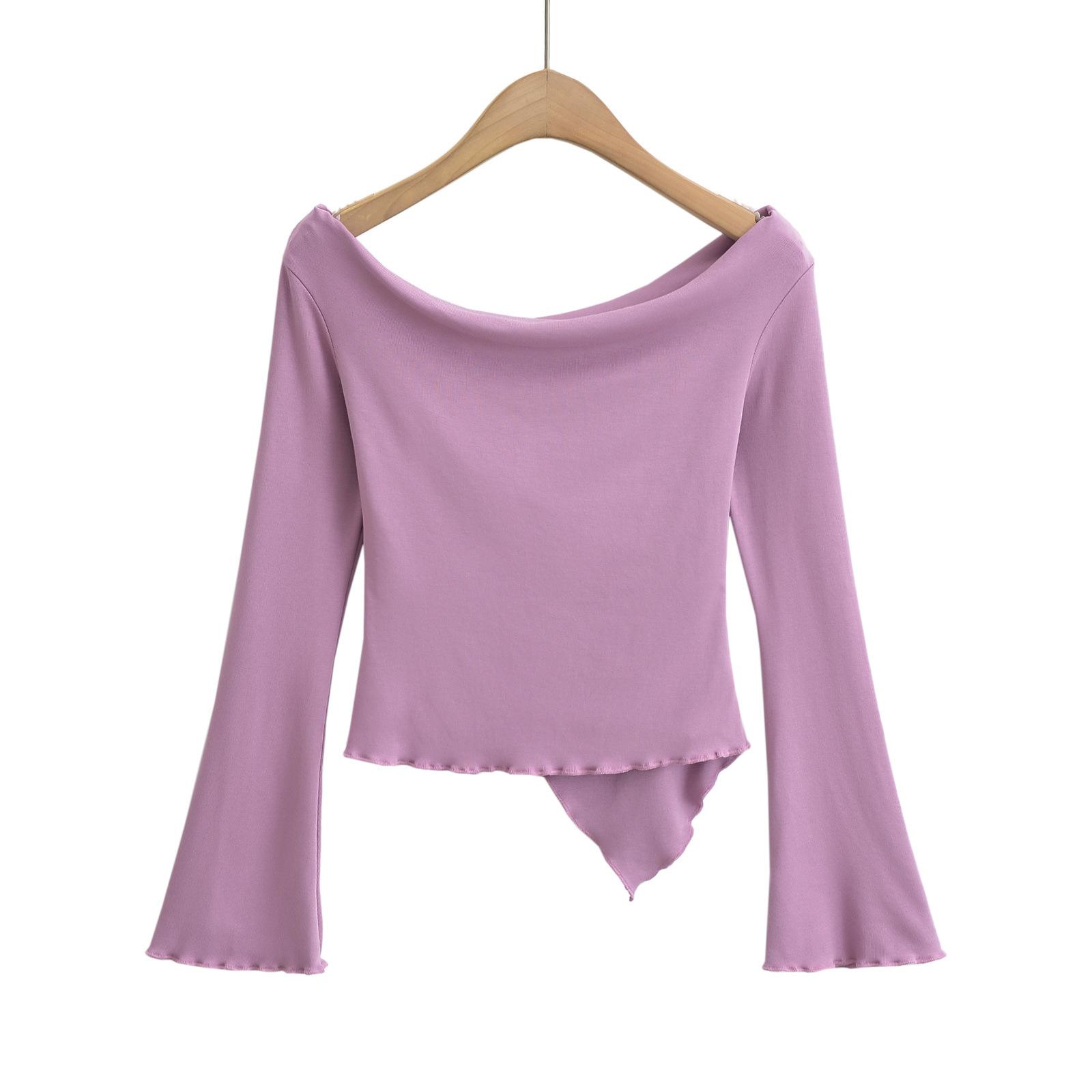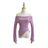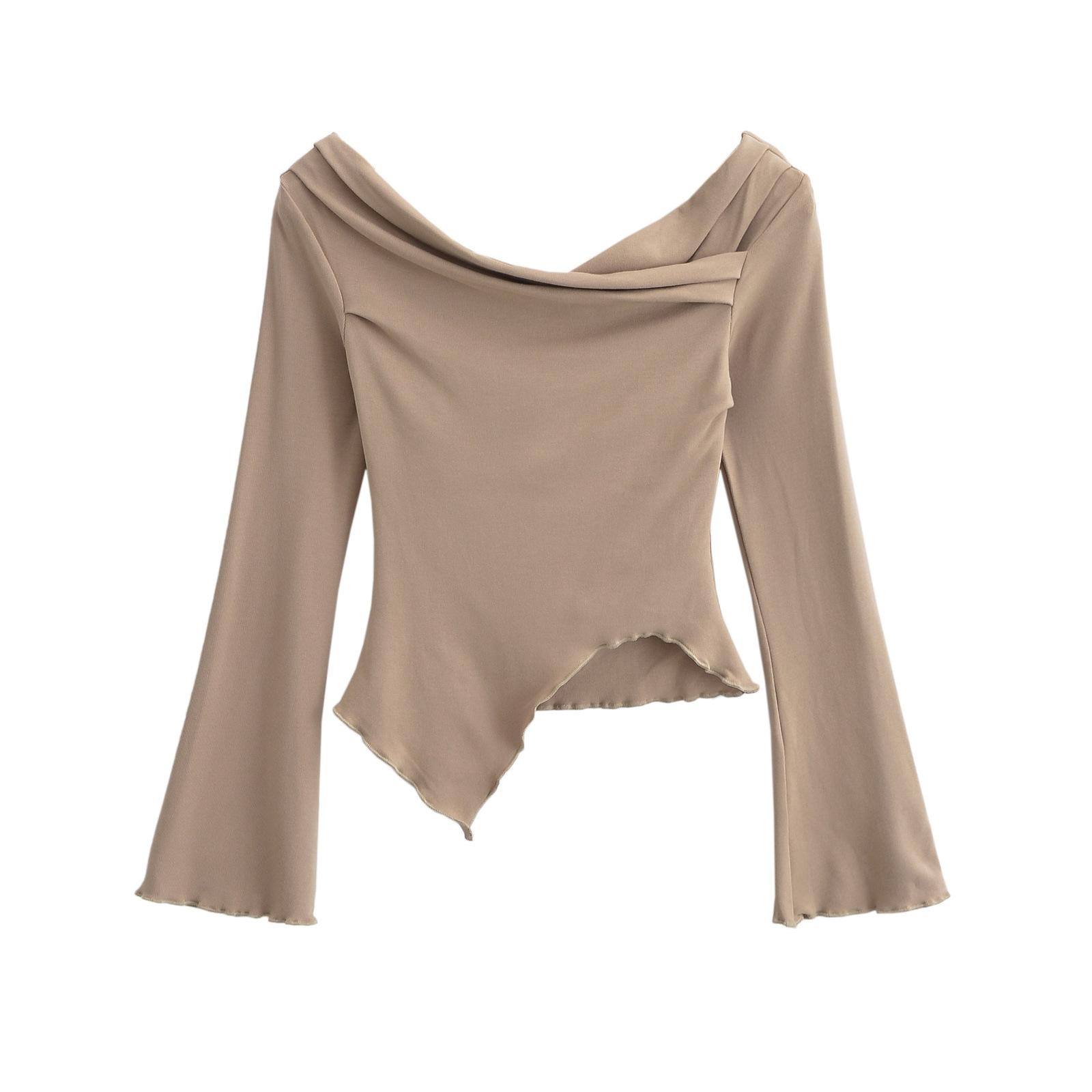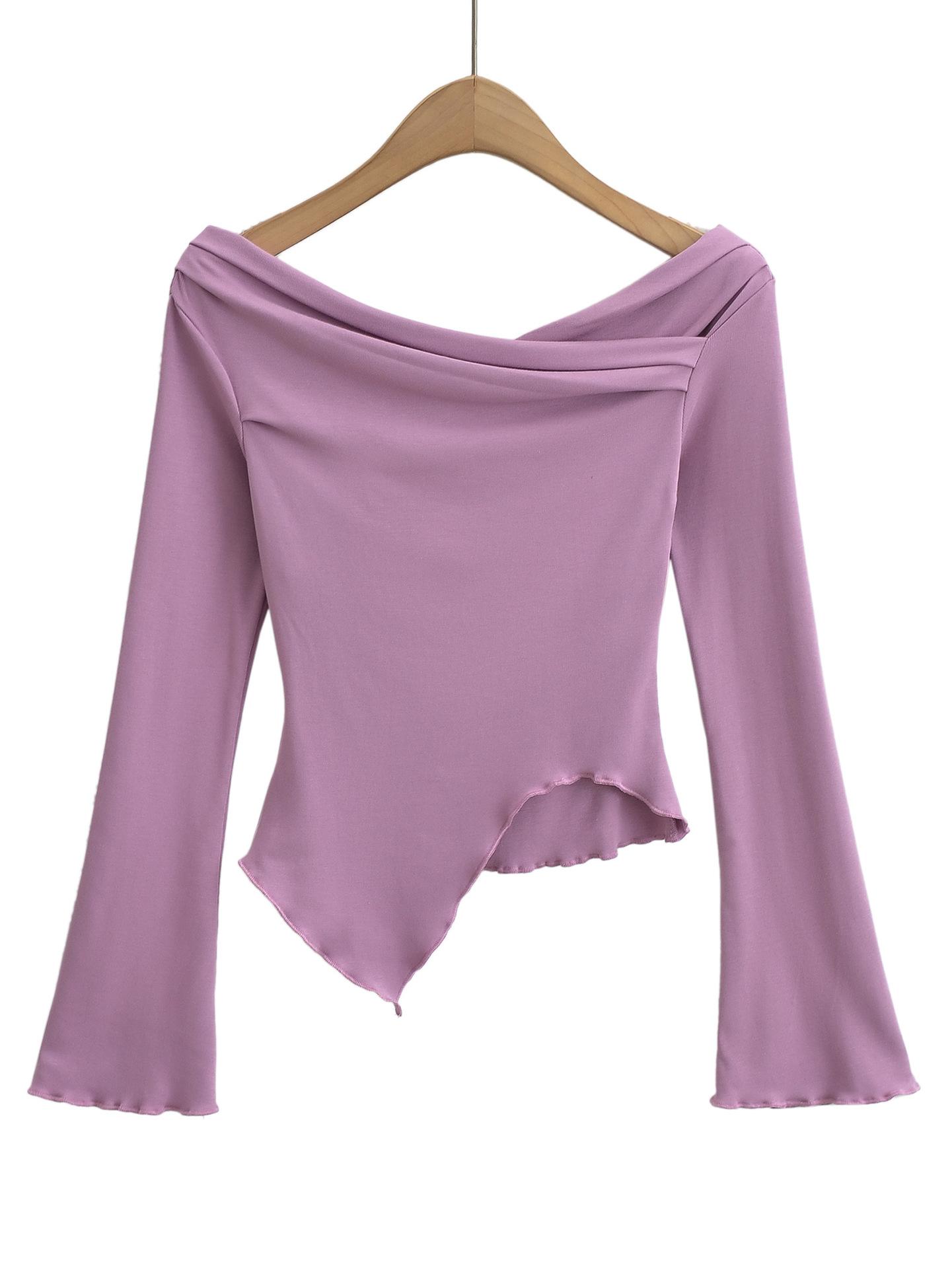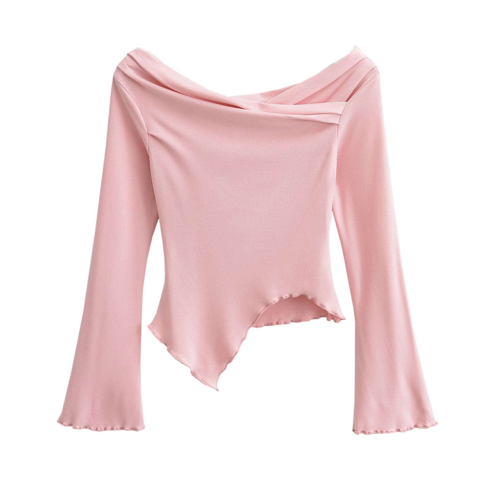 Camiseta de manga larga plisada con hombros descubiertos para mujer, top irregular ajustado con hombros descubiertos, otoño e invierno de 2023