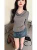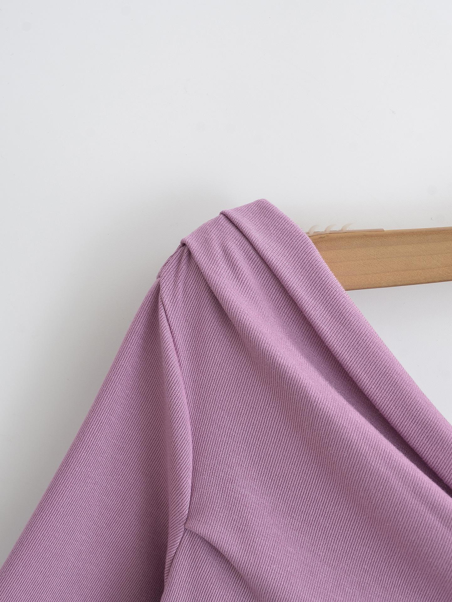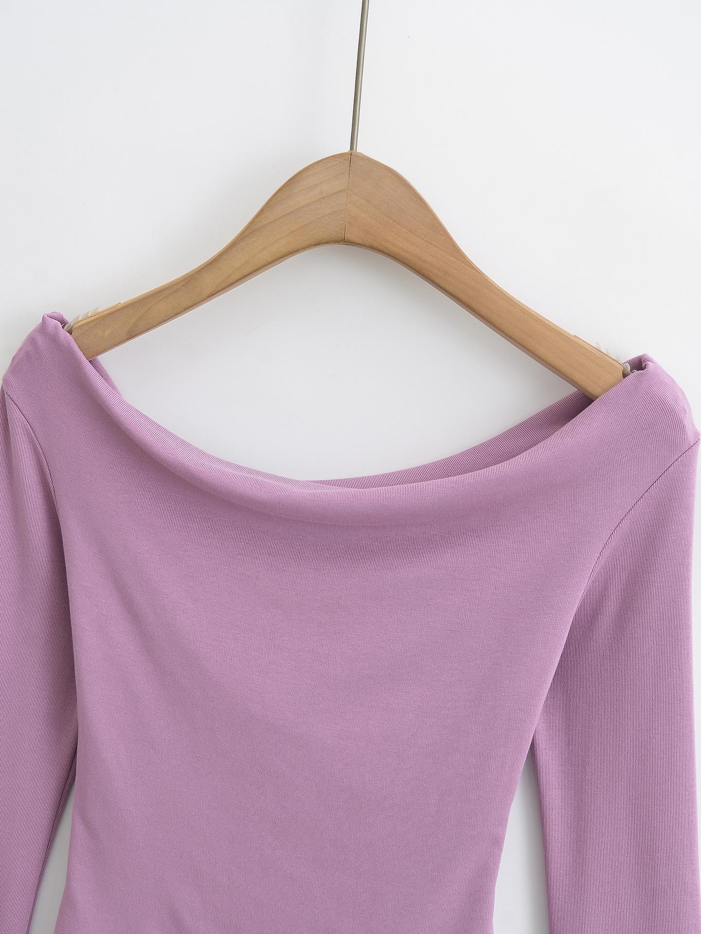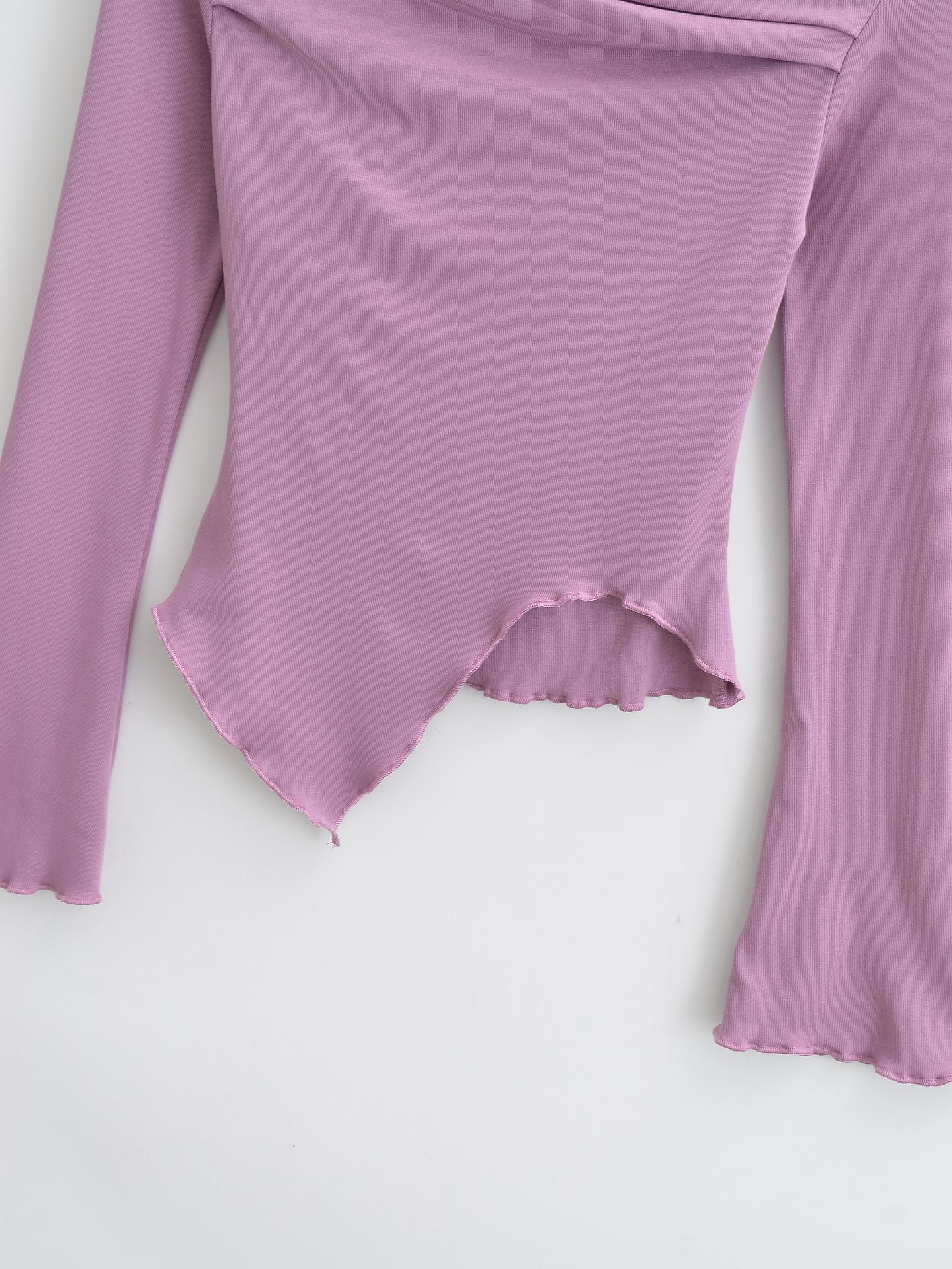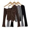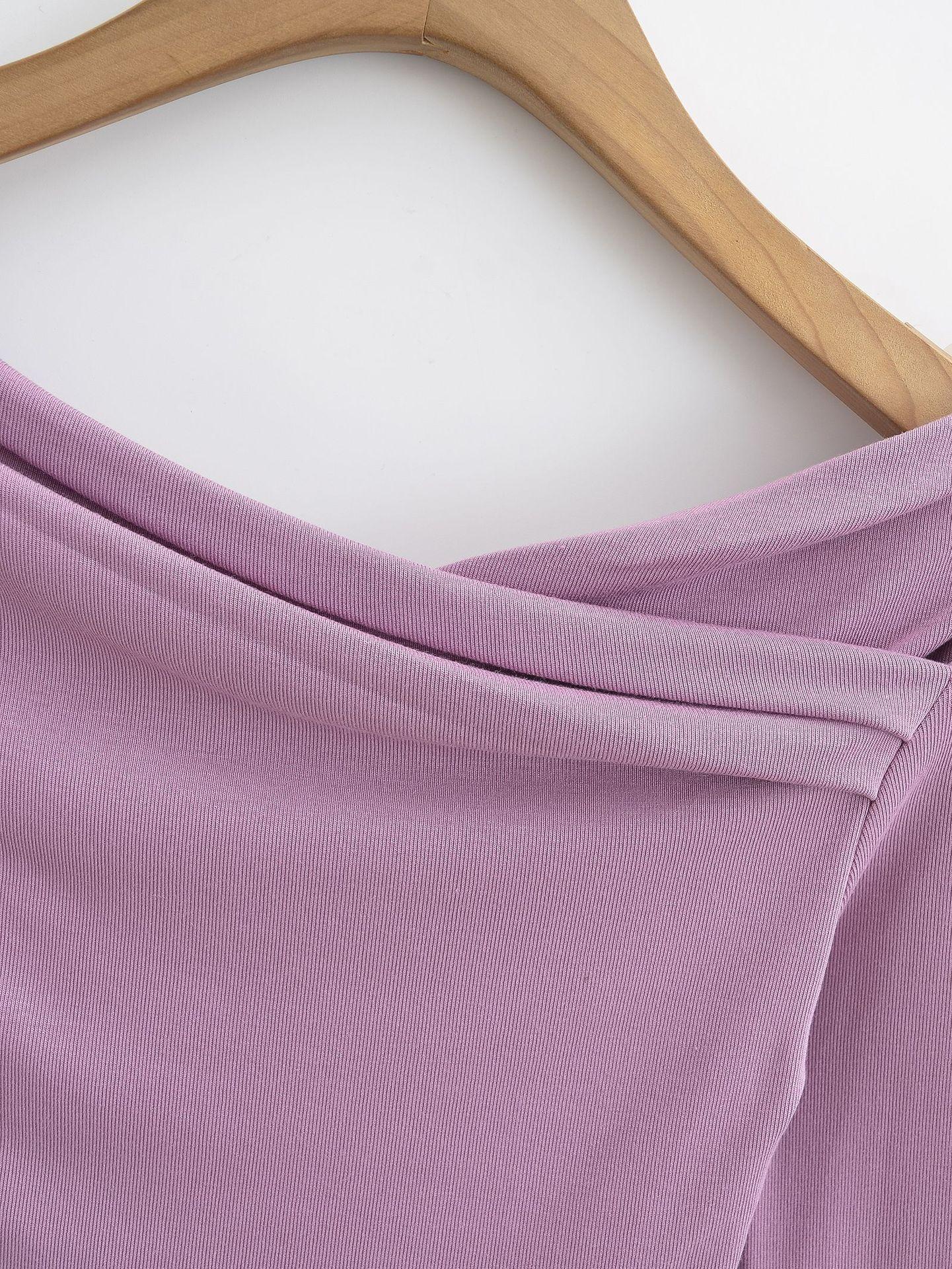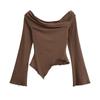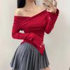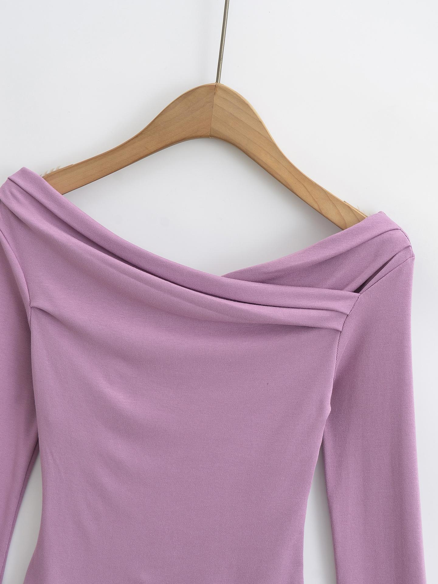 Camiseta de manga larga plisada con hombros descubiertos para mujer, top irregular ajustado con hombros descubiertos, otoño e invierno de 2023