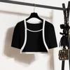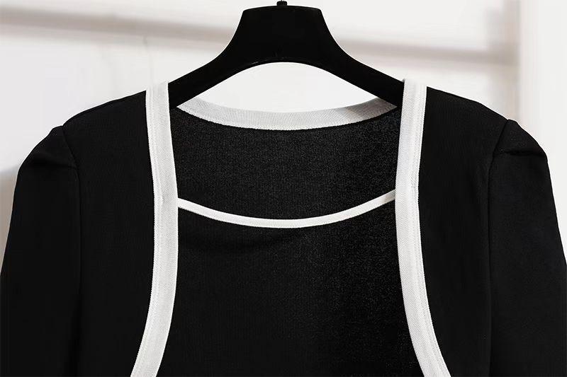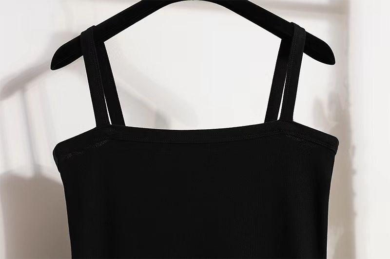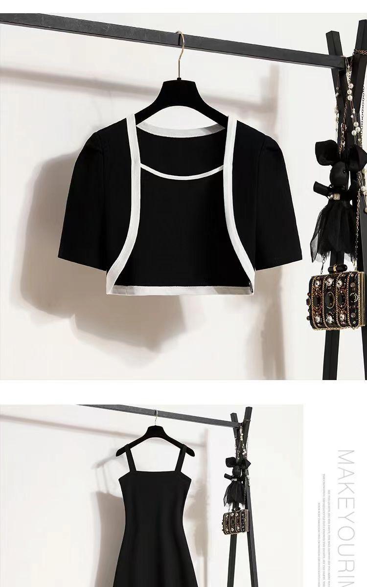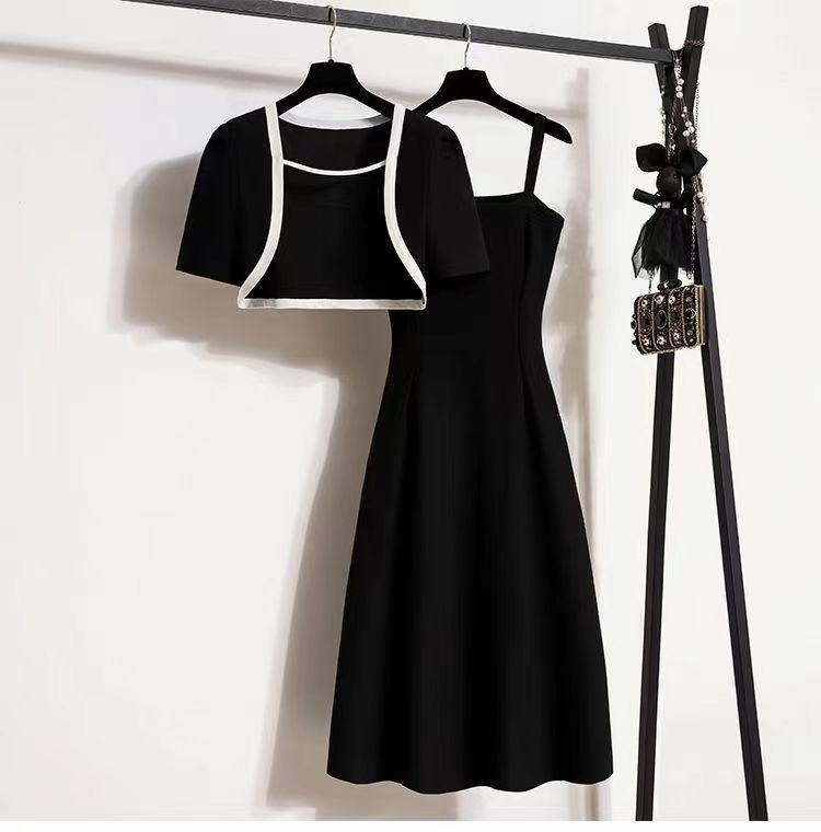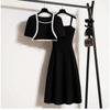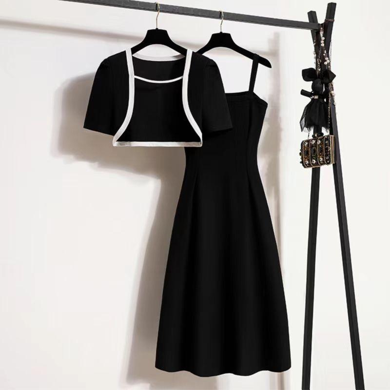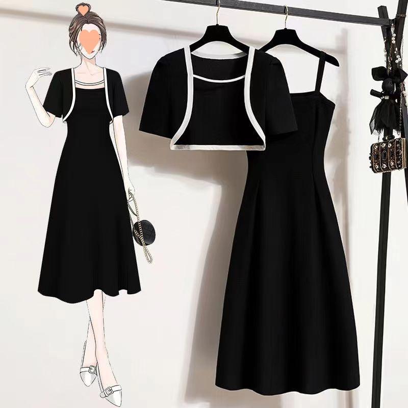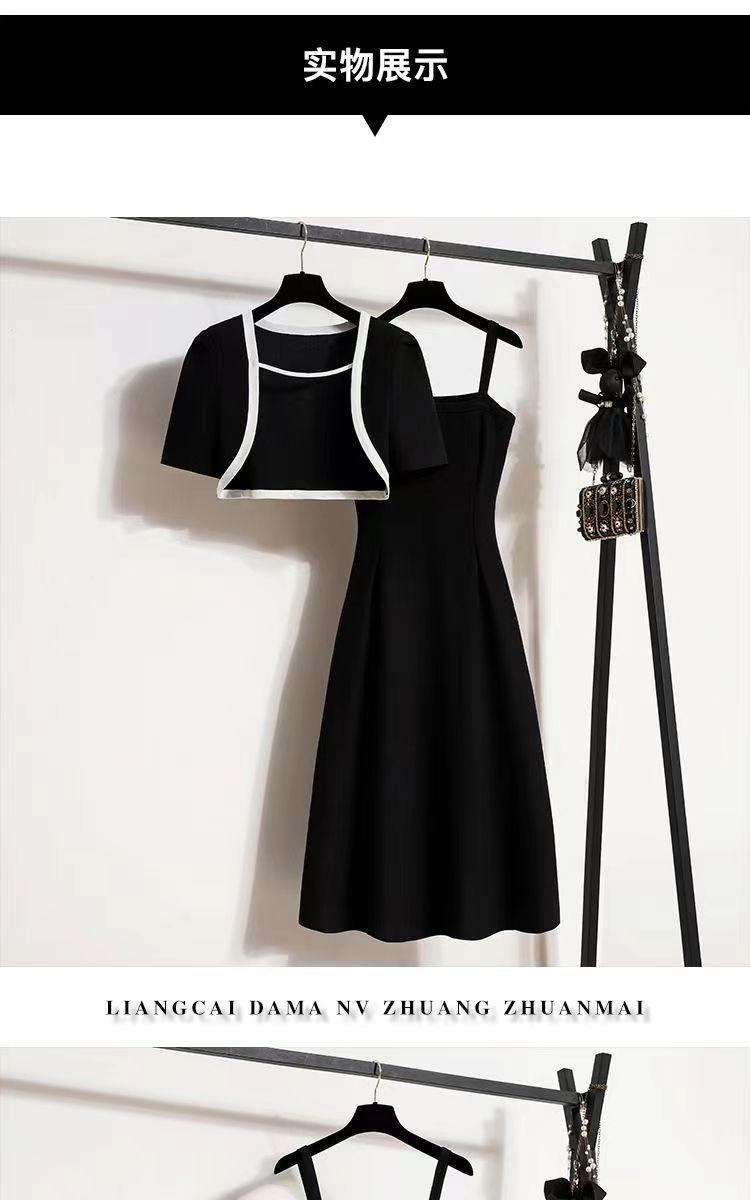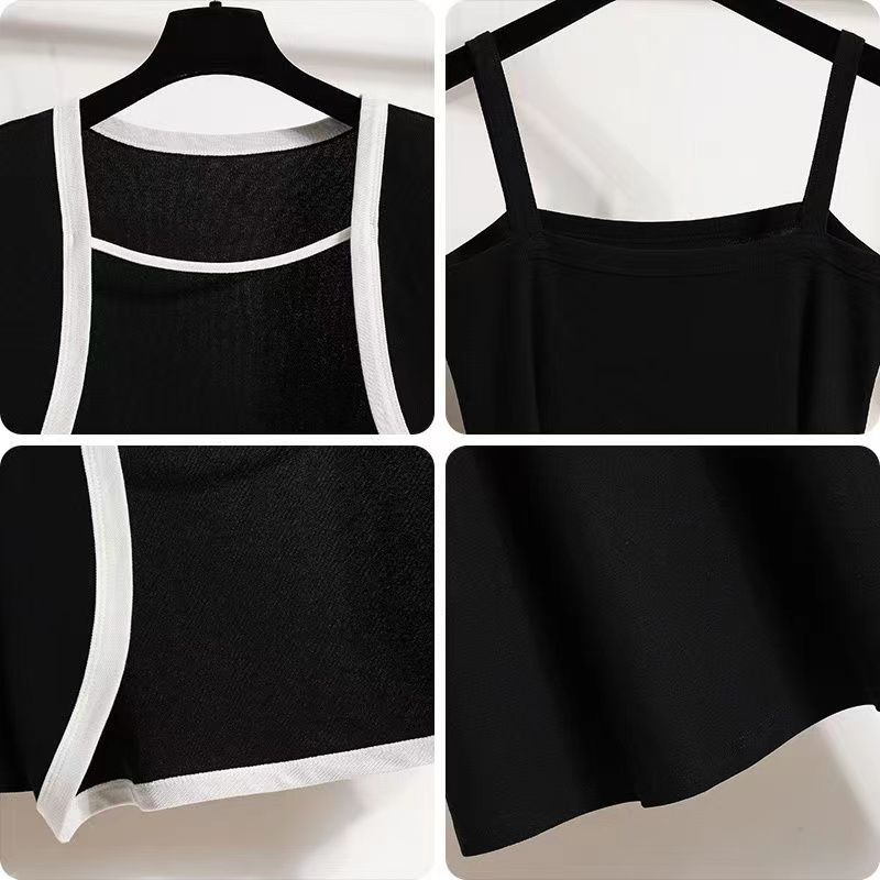 Ropa para Mujer de Talla Grande 2025 Chica Gorda Primavera Nuevo Vestido Ajustado y Versátil con Tirantes Top Cárdigan Conjunto de Dos Piezas