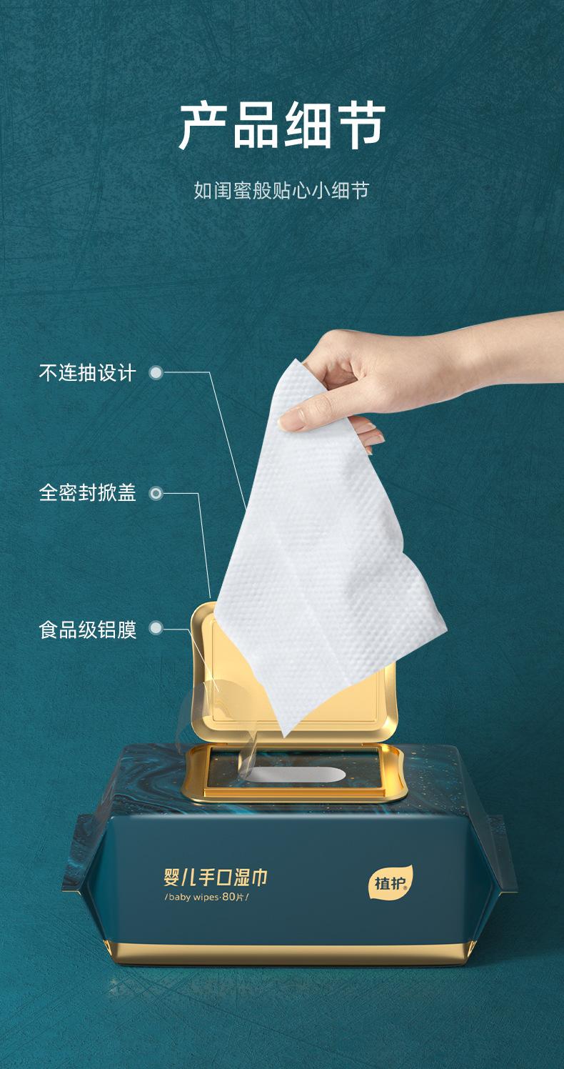 Protección vegetal dureza para disfrutar del bebé bebé toallitas húmedas portátiles 80 piezas de tejido húmedo para manos paquete individual fabricantes venta al por mayor una generación de cabello
