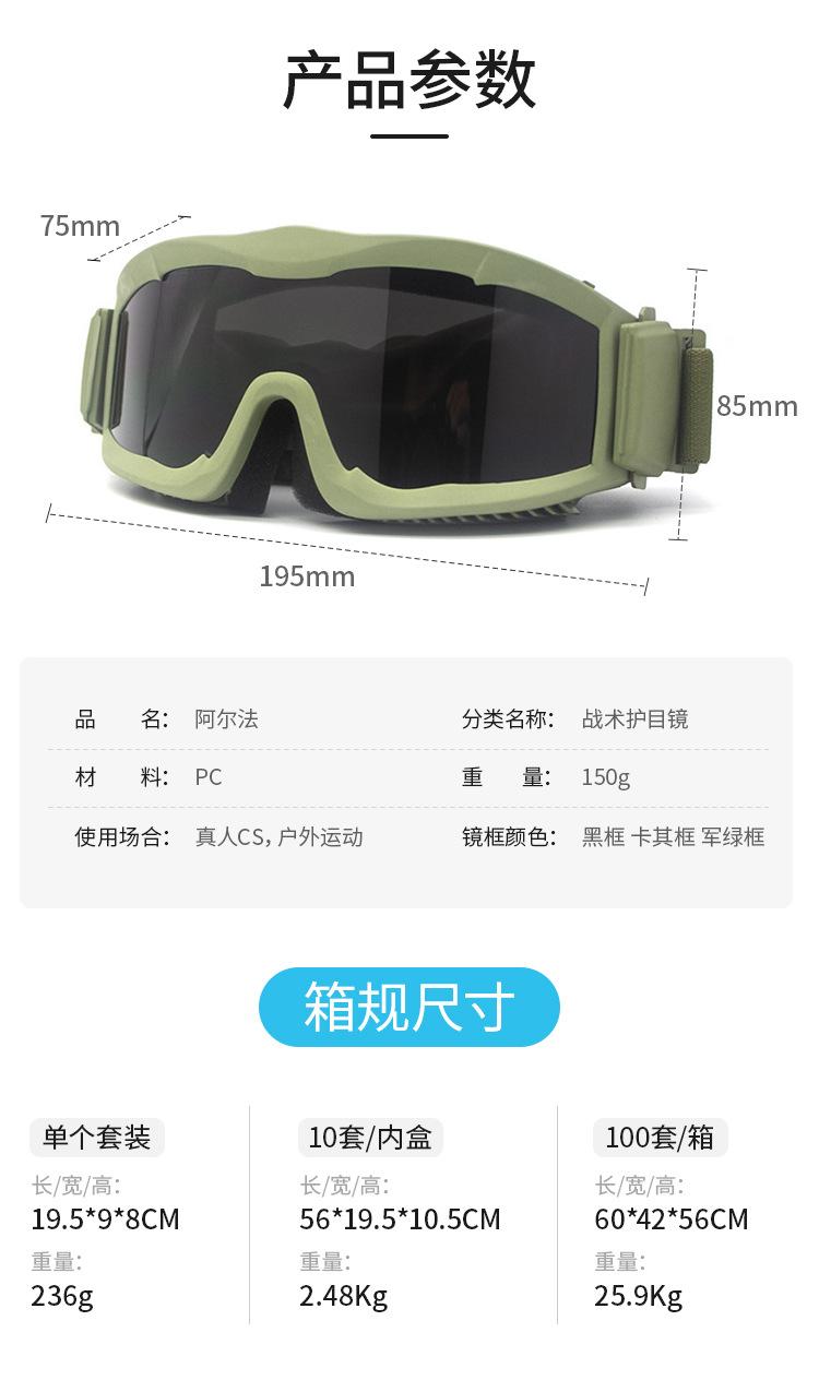 Gafas tácticas Alpha de tres lentes para tiro, venta al por mayor, para aficionados al desierto, equipo de CS, bolsa de tela a prueba de explosiones.