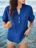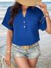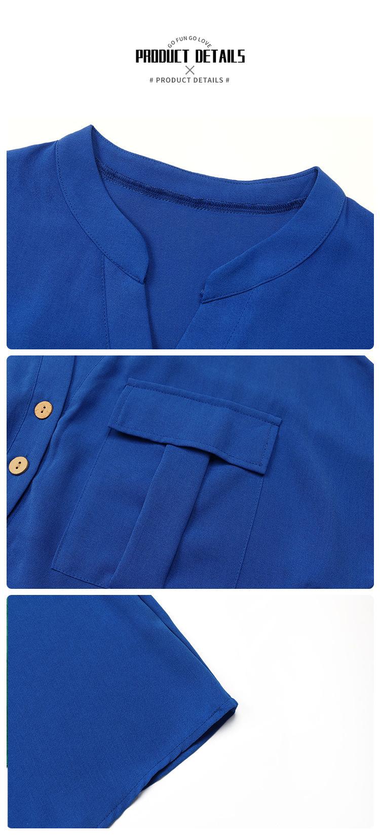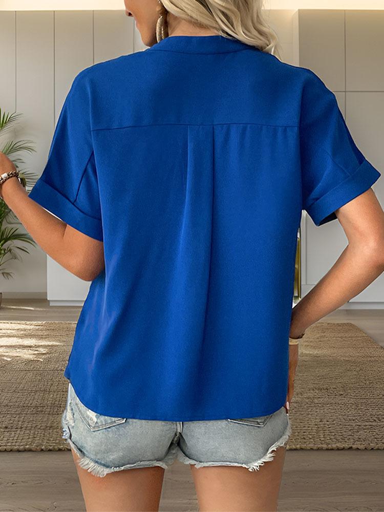 Camisa de manga corta con cuello en V, color liso, para mujer, de Amazon Independent Station, Comercio Exterior, 2024, estilo europeo y americano, para verano