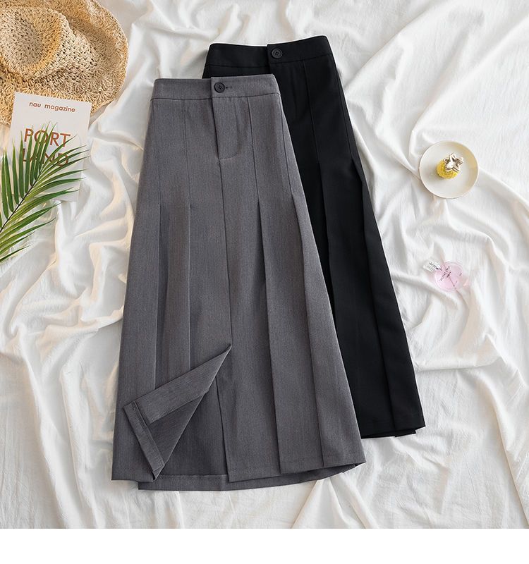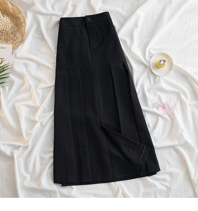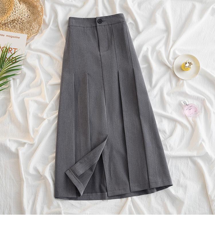 Falda de color liso para mujer, primavera y otoño 2024, nueva falda plisada de cintura alta y longitud media, estilo salina, estilo A.