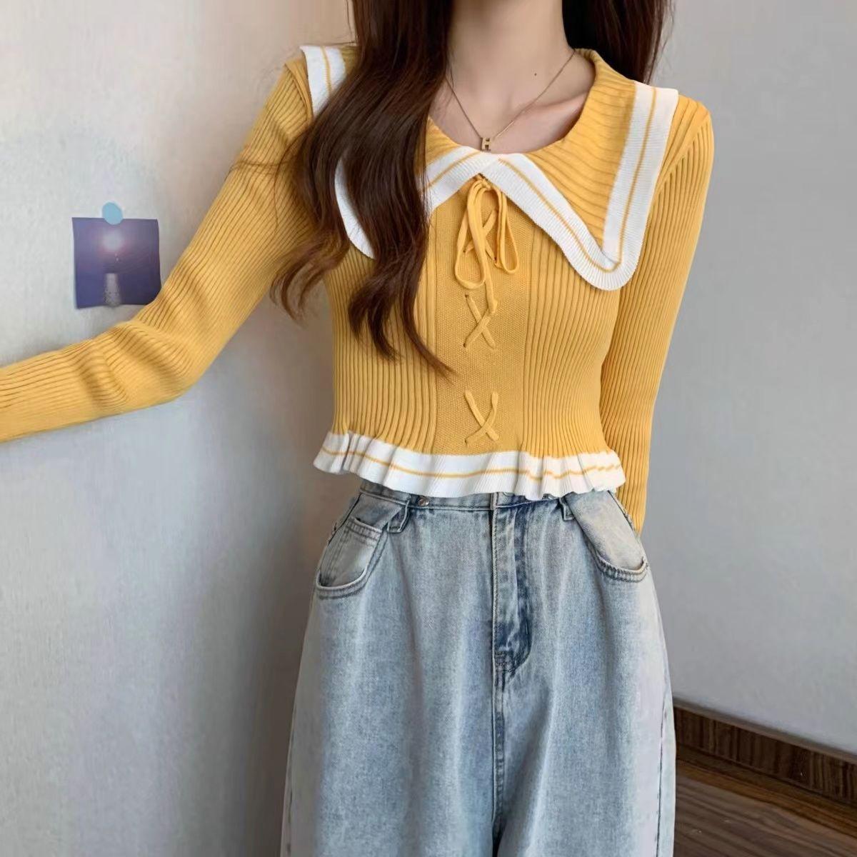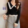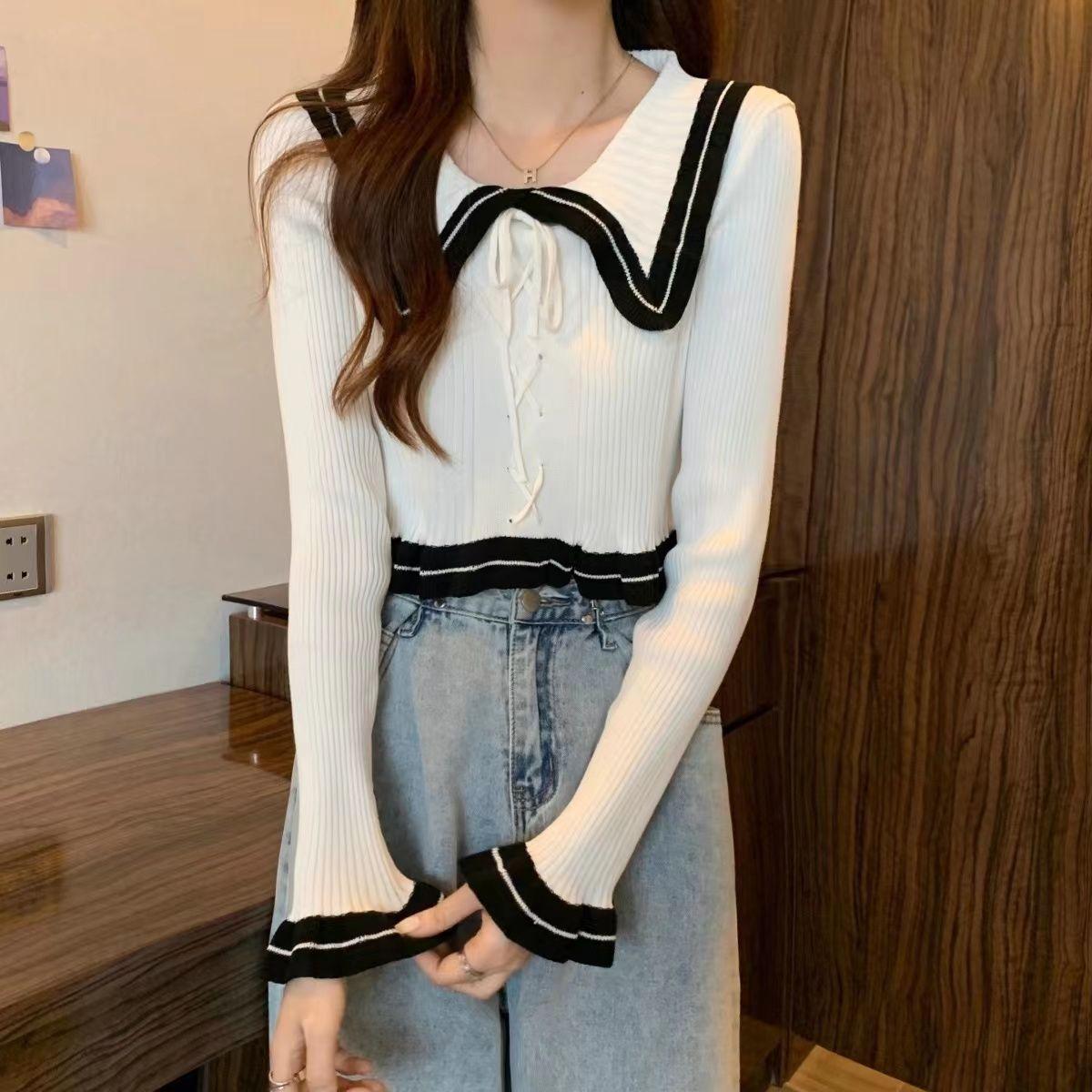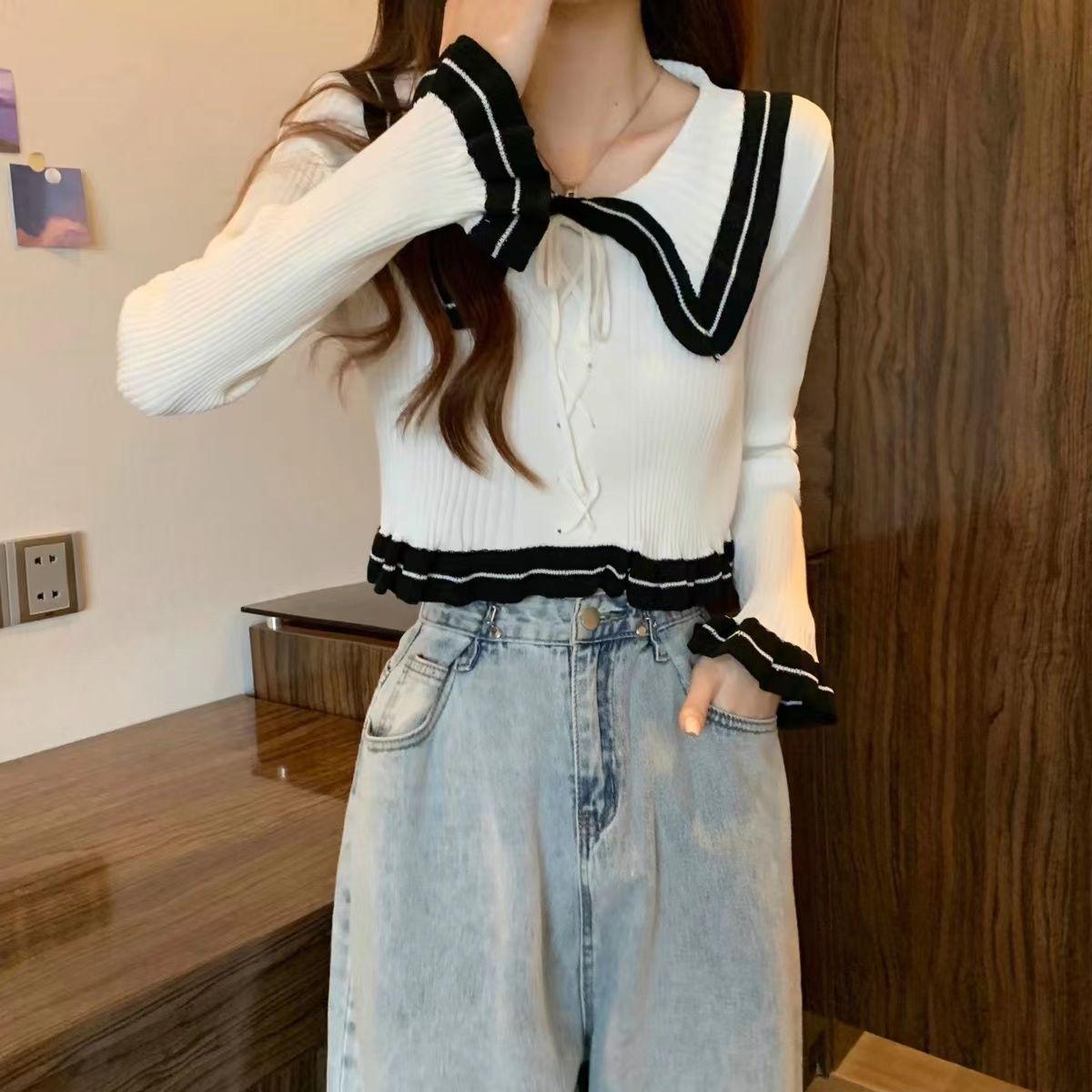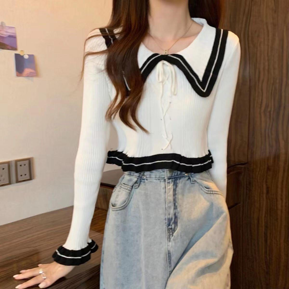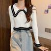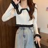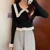 Suéter básico de manga larga con cuello de muñeca estilo francés para mujer Primavera y Otoño Nuevo suéter pequeño corto ajustado
